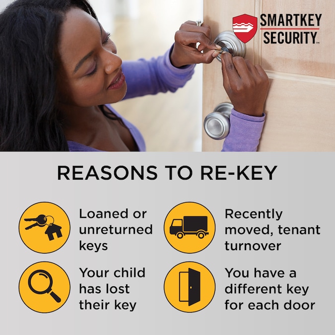 - Featuring SmartKey Security™, which protects against advanced break-in techniques and allows you to re-key your lock yourself in seconds