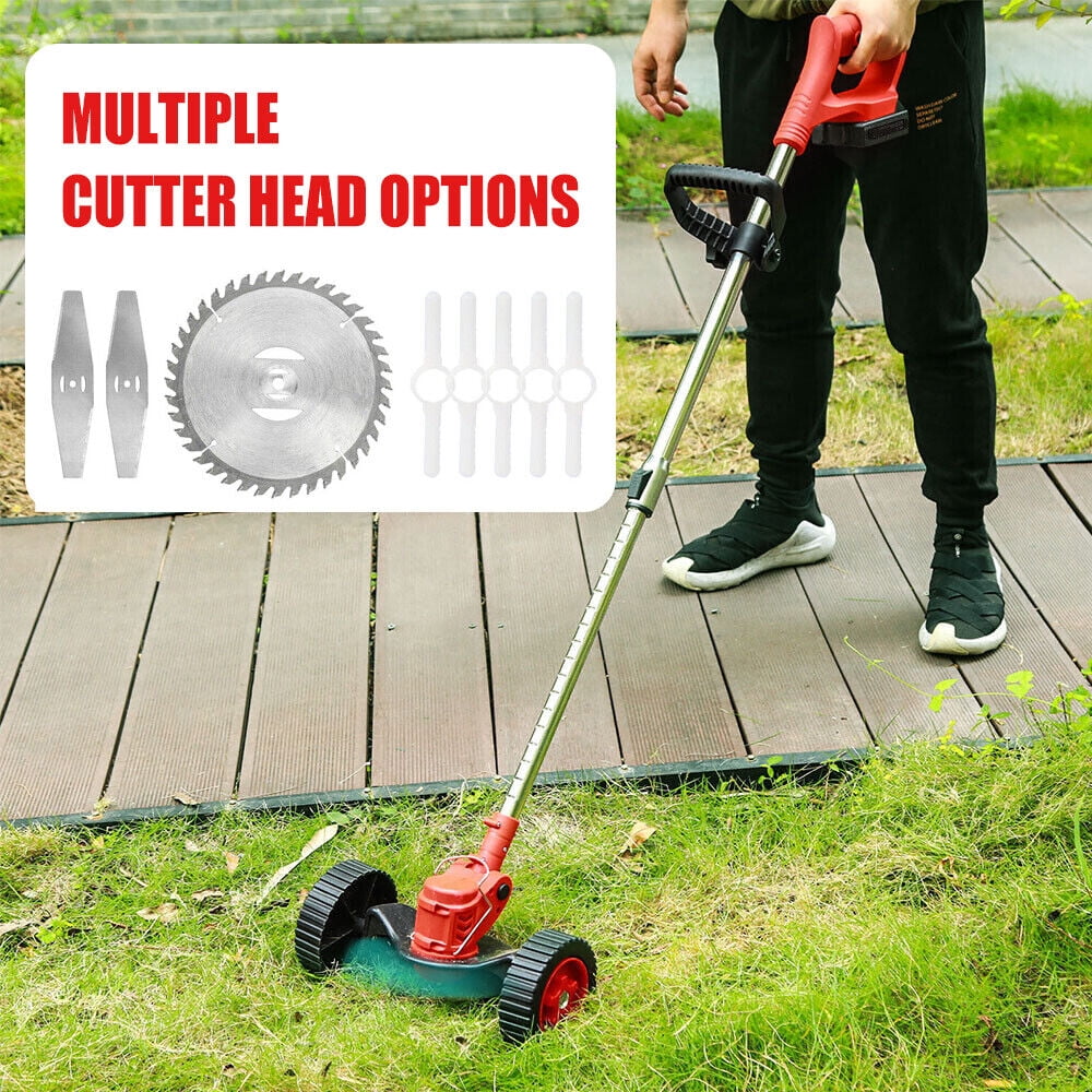 kydely revolutionary cordless weed eater, the perfect solution for hassle-free trimming and edging! Say goodbye to tangled cords and limited mobility with our battery powered string trimmer. Designed with convenience in mind, this electric weed eater allows you to effortlessly achieve a pristine yard. Product Function Detailed Explanation: Our electric weed eater cordless features a powerful 650W motor, delivering a speed of 18000 rpm. With its cutting-edge lithium battery, 21V and 2000mAh, included in the package, you can enjoy up to 45 minutes of uninterrupted use on a single charge. And for extended trimming sessions, simply utilize the 2 batteries for a total runtime of 90 minutes! Equipped with both a round blade and a straight blade, this cordless weed wacker provides versatility for various trimming needs. The diameter of the round blade measures at 150mm, while the straight blade boasts 146mm in diameter. Whether it’s getting into tight corners or maintaining large areas, our electric weed eater has got you covered. Specification Information and Usage Instructions: – Material: Crafted with durable ABS and metal, ensuring longevity and reliability. – Color: Sleek and stylish design in red and black. – Time per run: Experience continuous operation without interruptions during your yard work. Each full charge extends up to 45 minutes, or double the runtime with the additional battery for a total of 90 minutes. – Charging time: Recharge your cordless string trimmer quickly within approximately 120 minutes, so you can always have it ready for action. – Easy to assemble: Follow the user manual provided in the package to effortlessly set up your cordless weed eater for immediate use. Additional Information: Notes: 1. Please allow a slight difference of 0.1-0.2 inches due to manual measurement. 2. Due to variations in light and screen settings, the actual item may appear slightly different from the pictures. Warning Information: – Keep the string trimmer away from children and pets to prevent accidents. – Do not use the cordless weed eater on wet or slippery surfaces to ensure safety while operating. – Use protective eyewear and clothing when using the electric weed eater to protect against debris. Upgrade your lawn care routine with our high-performance battery powered weed eater. Embrace the freedom of cordless trimming and achieve a beautifully manicured yard effortlessly. Place your order now and experience the convenience and efficiency that our electric weed eater provides! Packing list: 1 * Lawn mower 1 * Saw blade 5 * White plastic blade 2 * metal blade 1 * Handle 2 * Battery 1 * US Charging Device 1 * User Manual