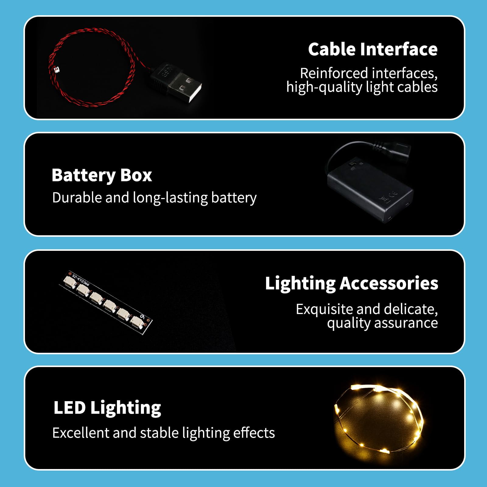 ????SPECIAL DESIGN: Design rich lights for lego 21330 home alone house building kit, the entire model shining, each layer of the building wireless contact energized design,Simply stack the floors to power up and make the lights come on, installation or disassembly of the floor more convenient. ????INSTALLATION GUIDE: Comes with detailed instruction, detailed description in the form of pictures, step by step lead you how to install and use, it is easy to find the way. ????MULTIPLE OPTIONS: can be powered by power bank/battery box/wall charger /other device with usb port (the output voltage should be less than 6V), easy to operate.(Battery not included) ????MATERIALS AND TECHNOLOGY: Our LED lights are compact and delicate, the combination of craftsmanship and handmade means better quality and details, the light wires will be hidden when mounted on the model, play the perfect lighting effect of LED lights. ????SERVICE: If you have any questions please feel free to contact us, we will answer your questions as soon as possible. Brand:Kyglaring Accessory Type:LED light kit Topic: 21330-CV Toy Replacement Part:USB cable and battery box (batteries not included) Age Group:Adult Package Dimensions:6.02 x 5.24 x 1.26 inches Item Weight:0.45Ib Manufacturer recommended age:14 +years and up