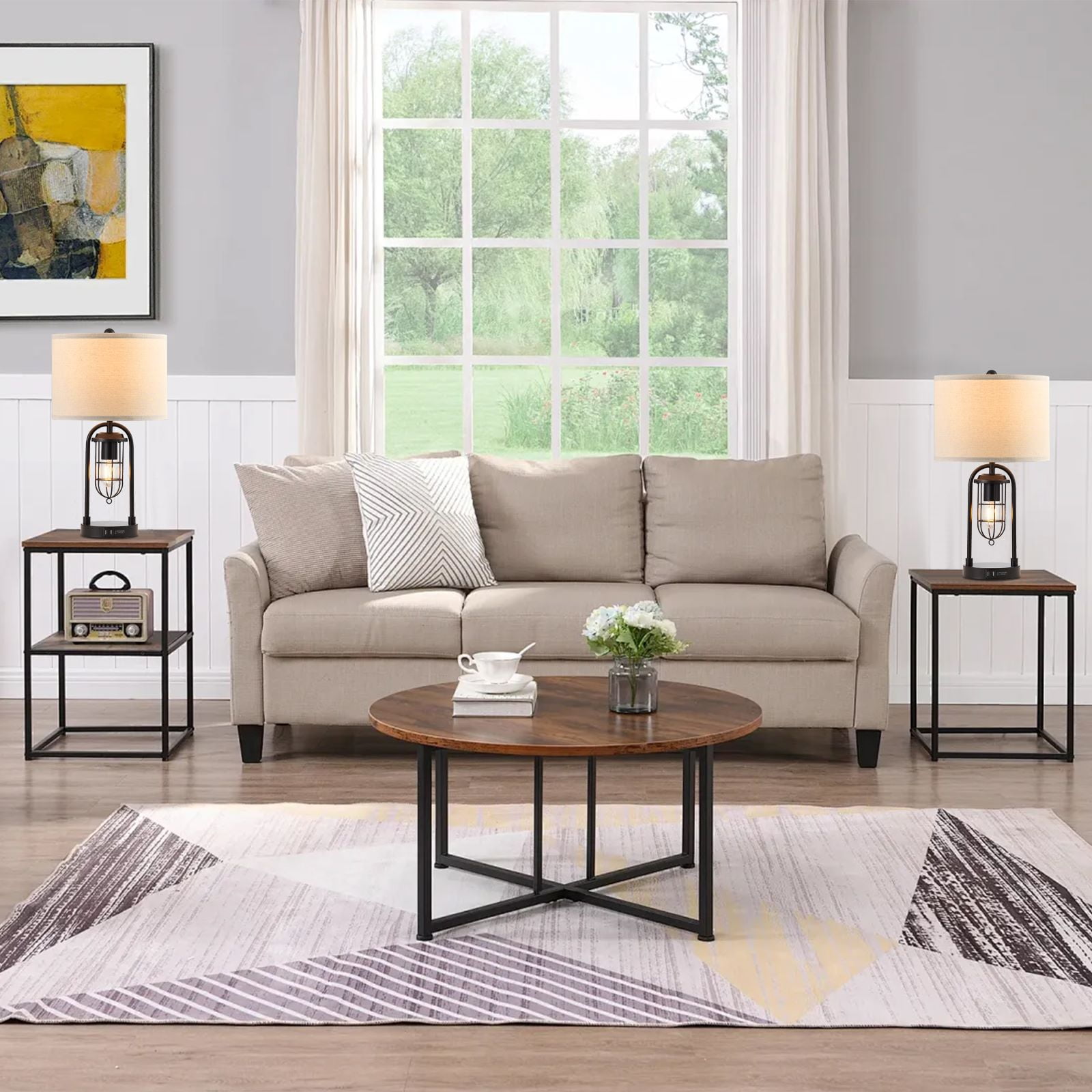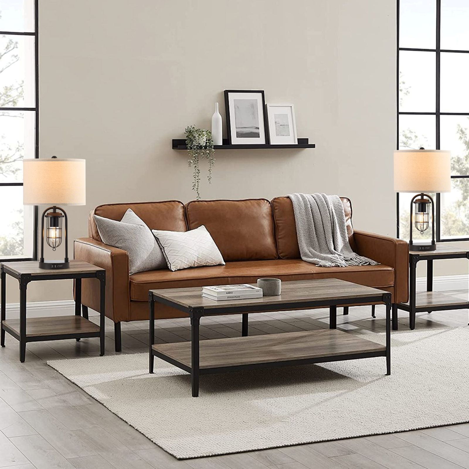 Combining industrial- era detailing and soft modern style this lamp set is a superb choice for your living space. Painted bronze finish metal strikes an arch silhouette with a lantern night light, adding style to your room. LED bulbs included for both light, provides different lighting solution. Built-in 5V 2.1A USB ports are included in the front for daily charging.