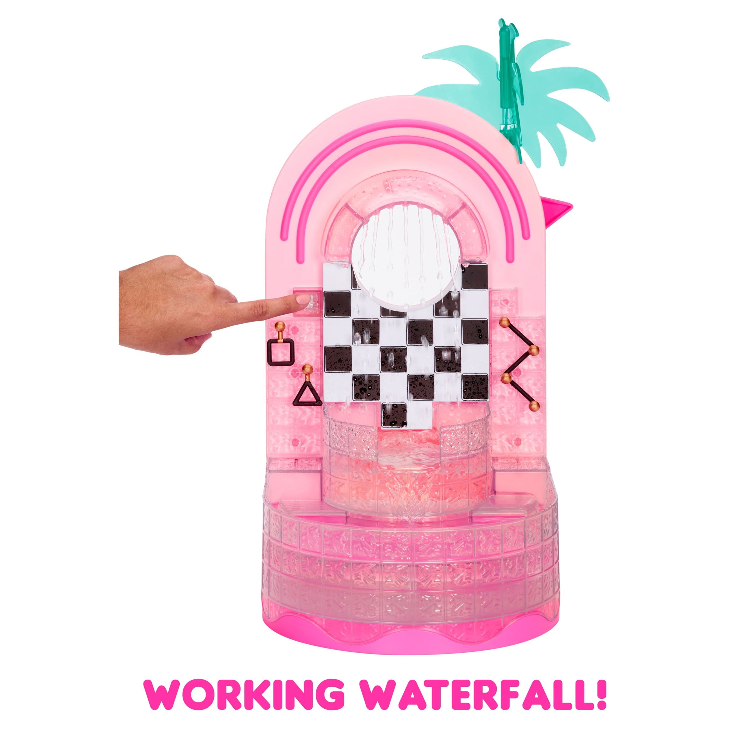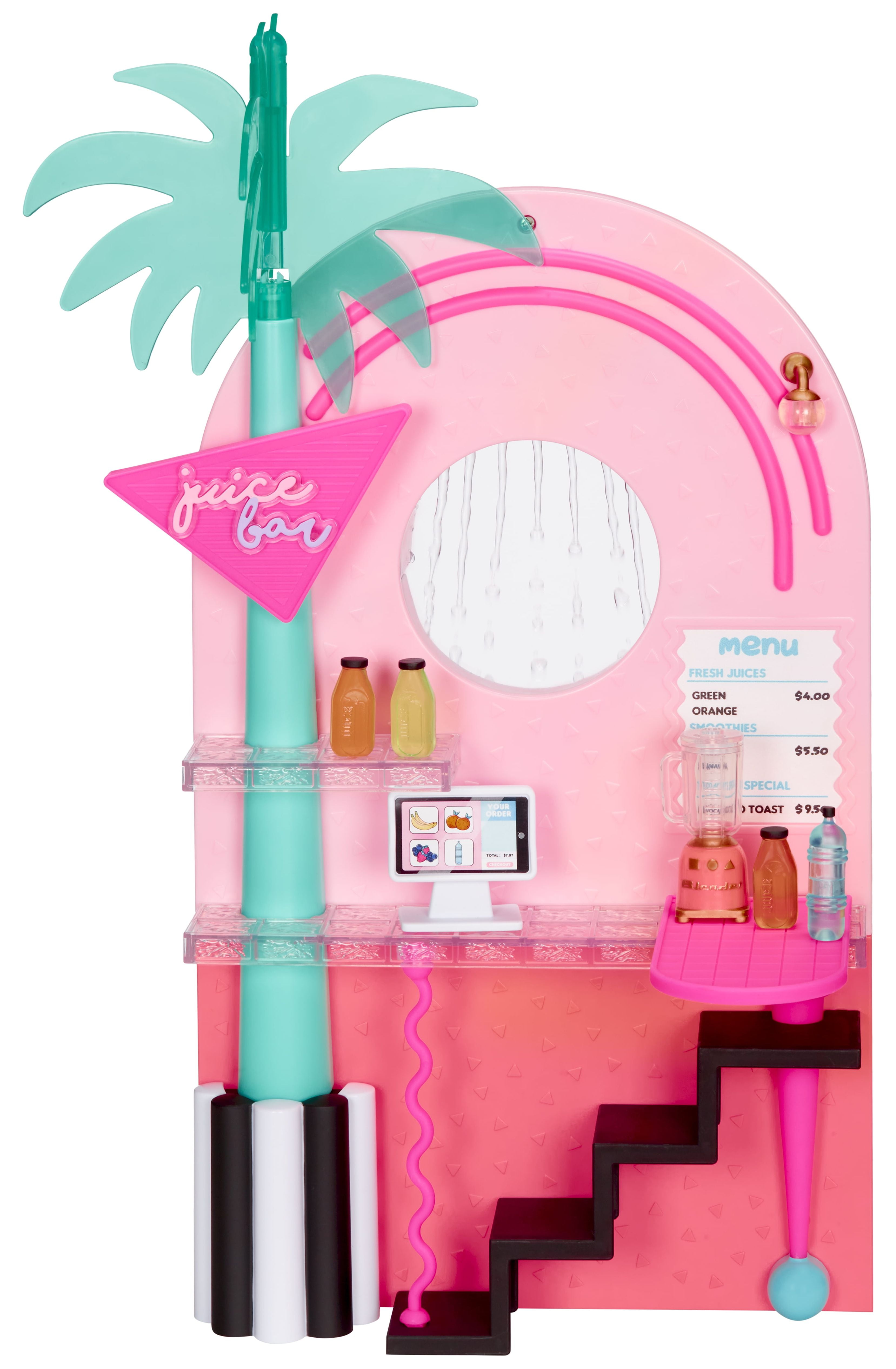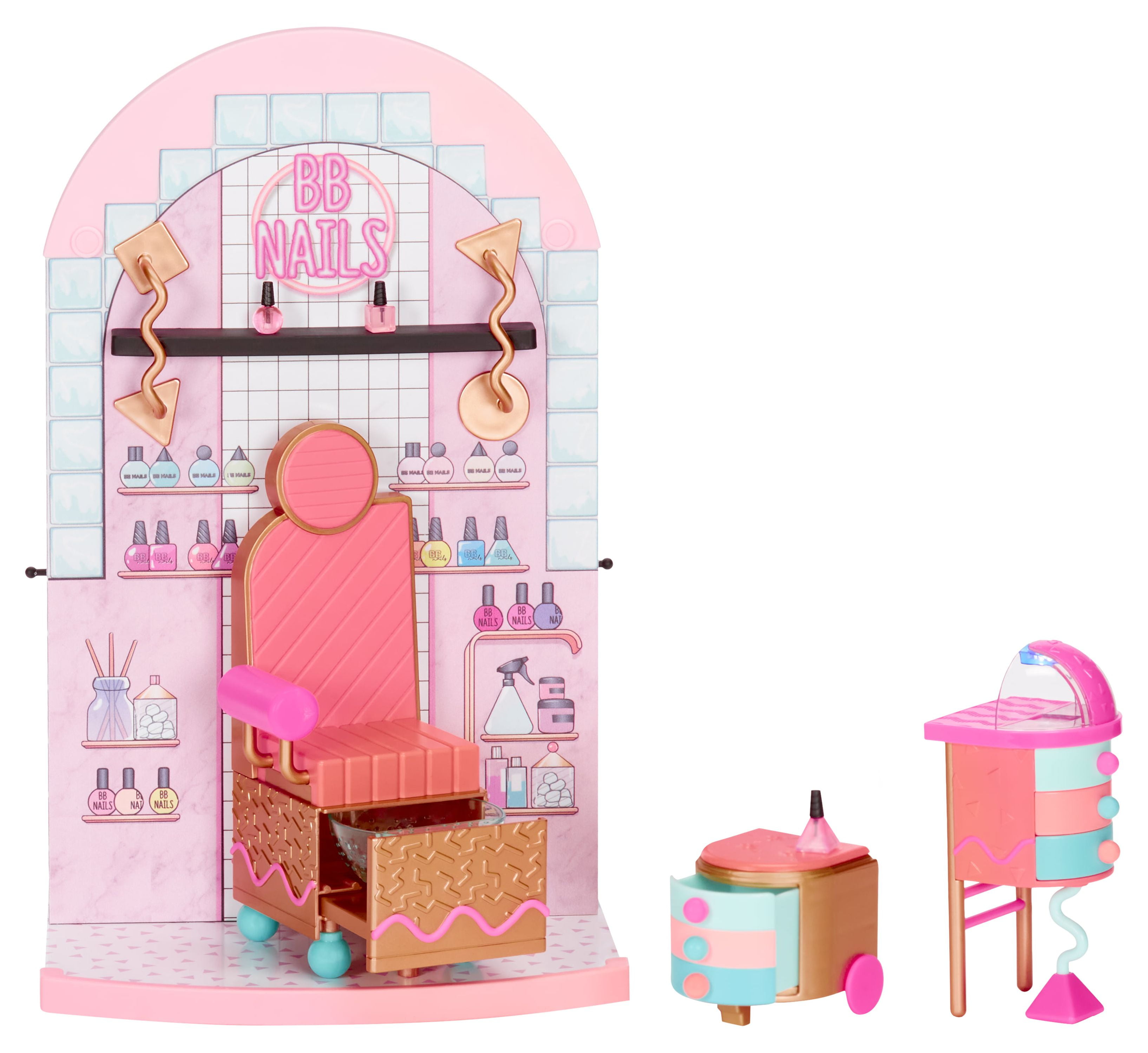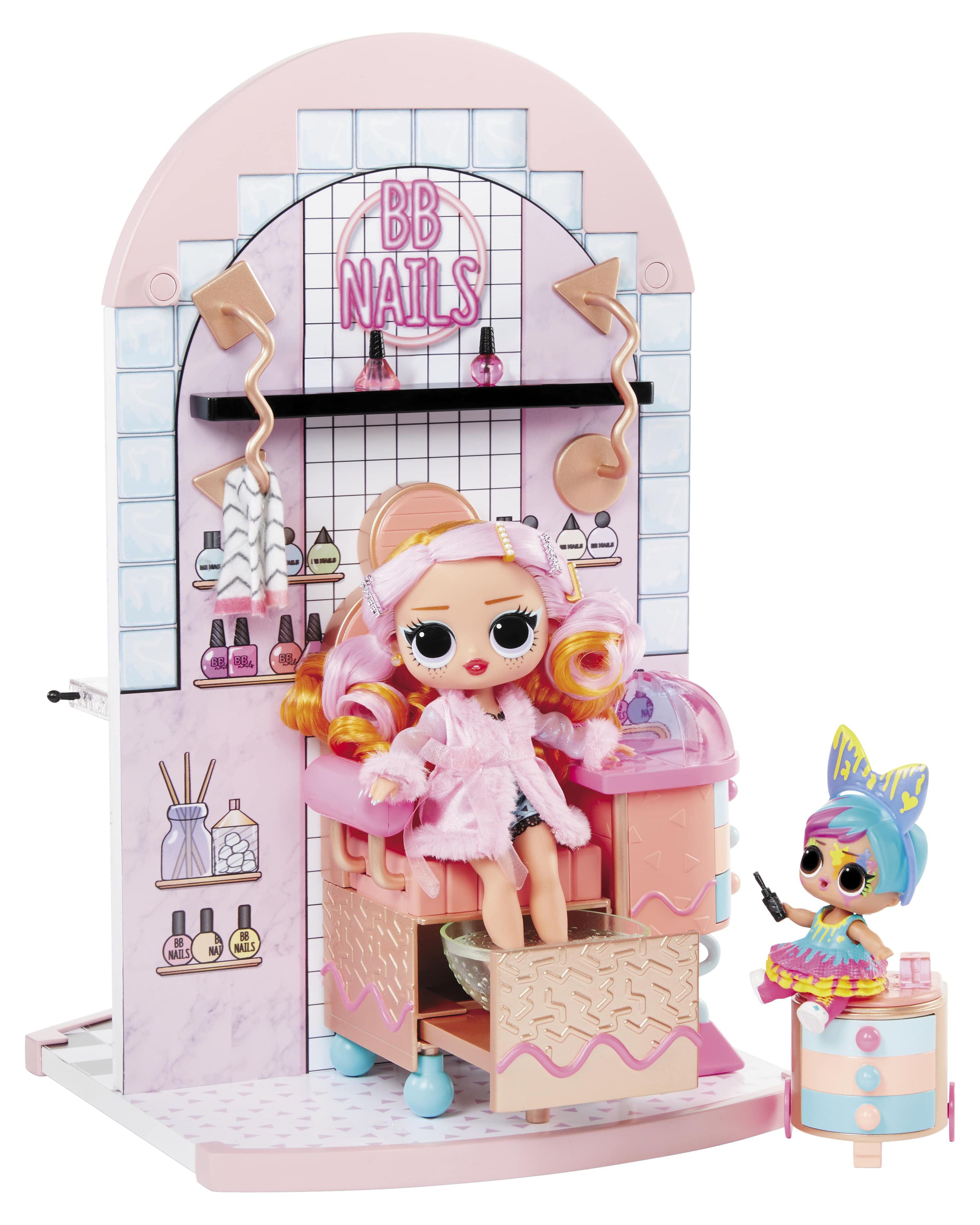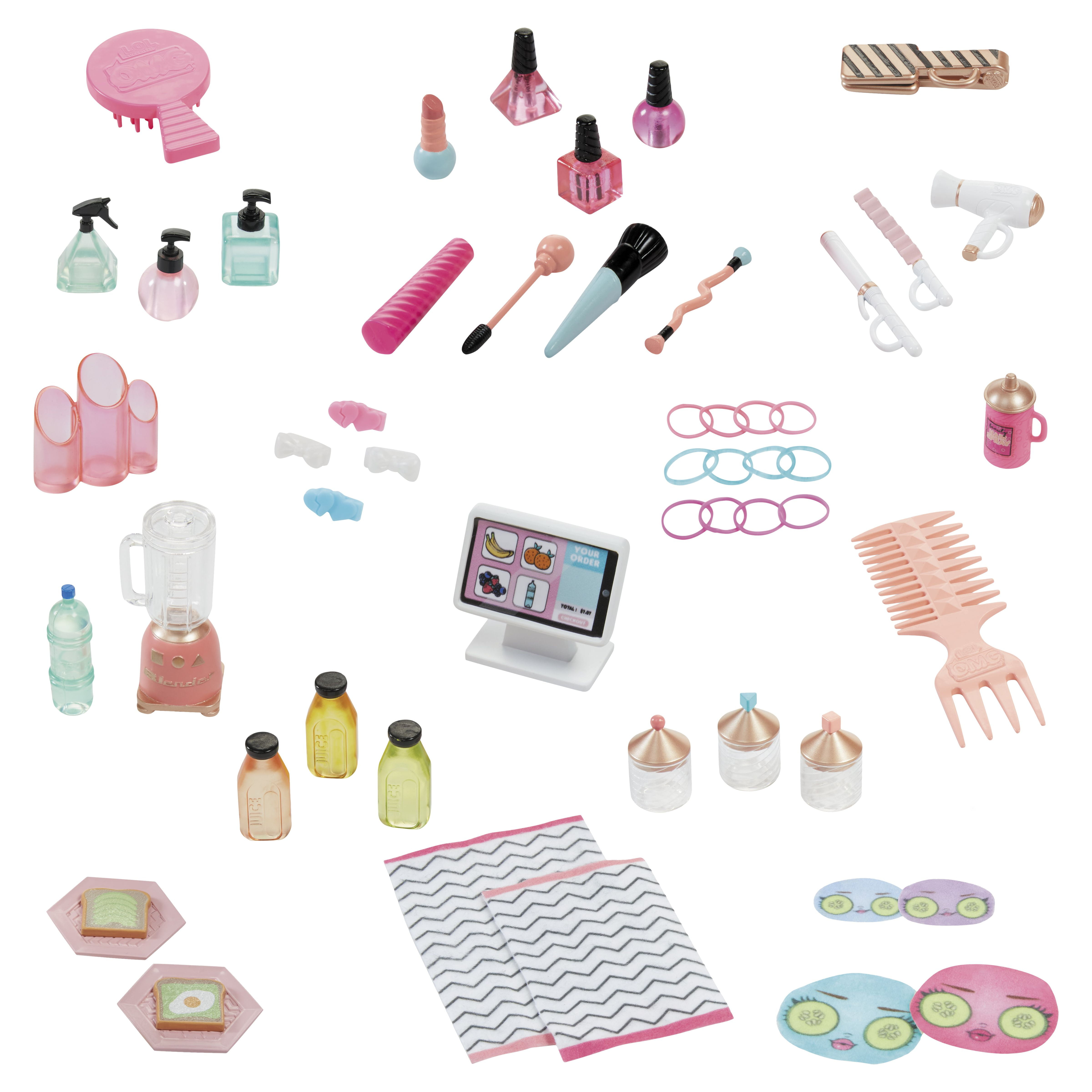 Ready for the ultimate spa day B.B.s? Check out the all-new L.O.L. Surprise Shine On Salon & Spa ™. This 5-n-1 playset includes: a spa with a working waterfall, a hair salon with a light-up mirror, a working hair washing station, a nail salon, and a juice bar. Unbox 65+ surprises including hair styling accessories, working face masks for your dolls, and more for the best experience in interactive glam play! Start out at the spa that fits both OMG fashion dolls and collectible dolls and check out the working waterfall. PRO TIP: Bring along your favorite color change doll to check out their transformation in real-time. Bad hair day? Head over to the hair salon, that includes multiple hair styling accessories and an adjustable salon chair. Slide the salon chair next to the working hair washing station to wash your doll’s hair. The mirror also lights up so you can check out your new ‘do too! No spa day is complete without a trip to the nail salon and juice bar. Grab a mani/pedi and then head over to the juice bar for some avocado toast and celery juice to re-fuel from a glam packed day. Pair this playset with the L.O.L. Surprise Mall of Surprises and the O.M.G. House of Surprises Dollhouse to create an entire world-of-play for all your fashion and collectible dolls!