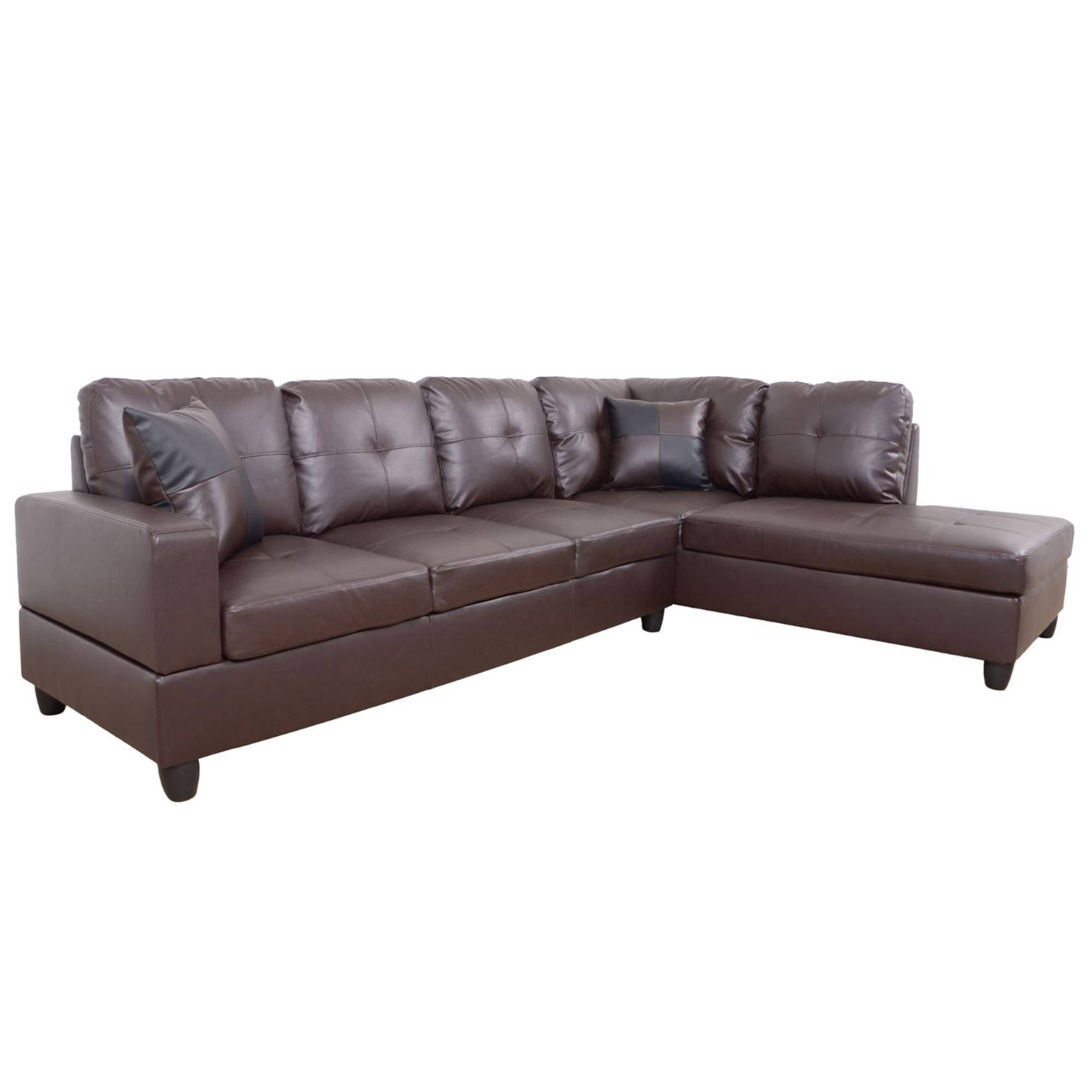 L Shape Leather sofa Couch Modern Sectional Couch with Chaise for Living Room Furniture Sets, Brown