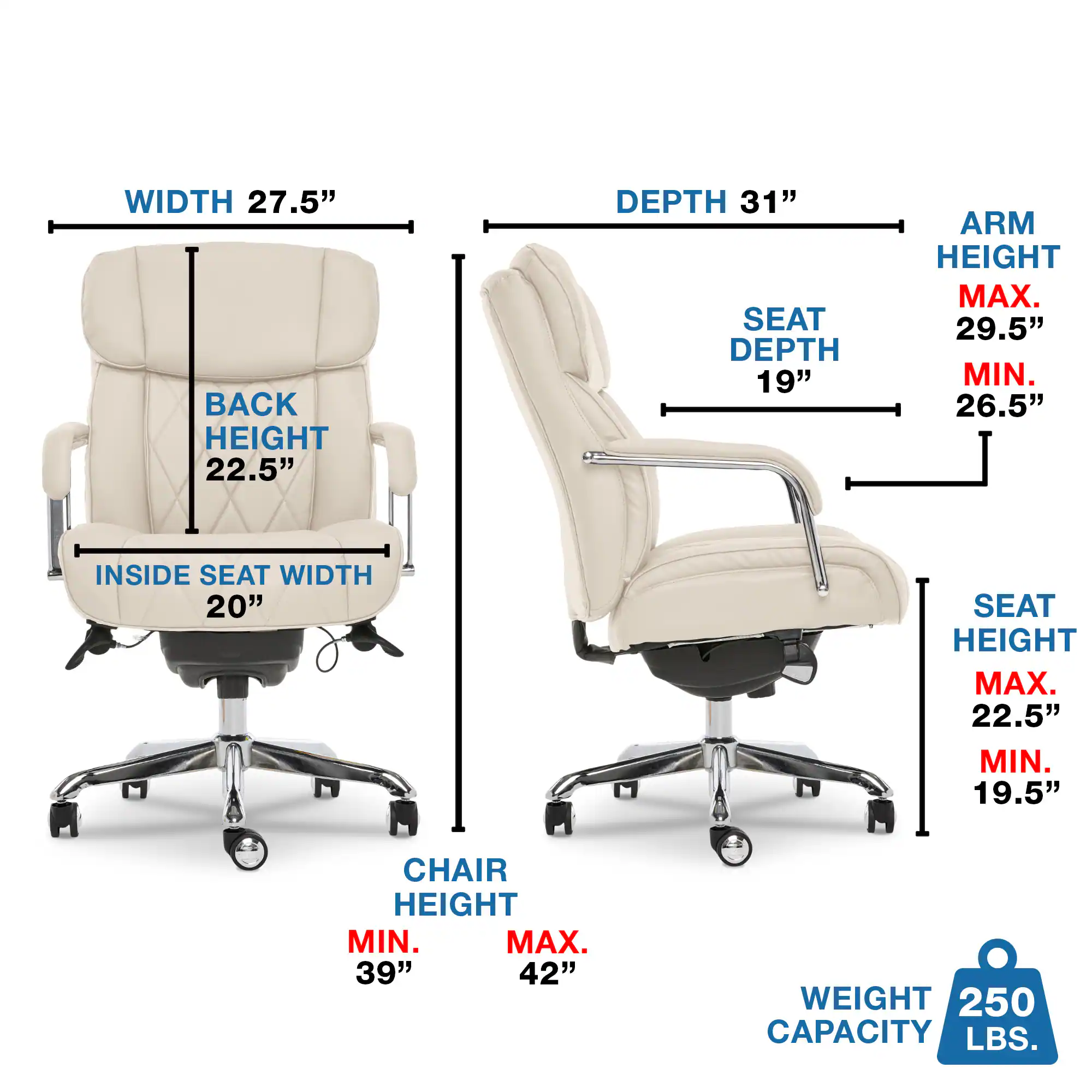• Seat Height (From Floor): 22.5 inches
