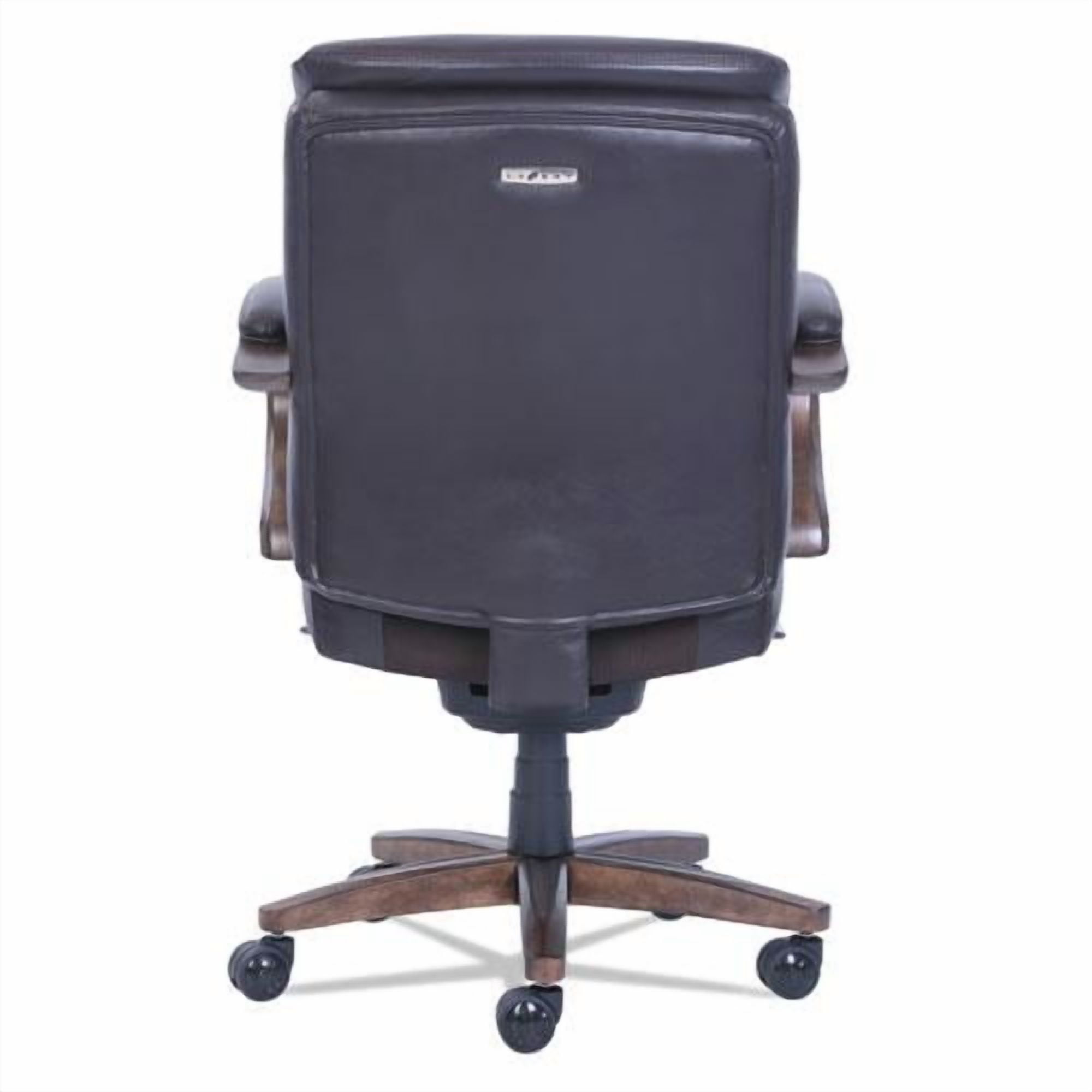 Woodbury Mid-Back Executive Chair, Supports Up to 300 lb, 18.75″ to 21.75″ Seat Height, Brown Seat/Back, Weathered Sand Base Premium La-Z-Boy® patented ComfortCore® Plus memory foam seat construction. Upholstered in commercial grade bonded leather. Wood arms and base finished with PU coating for added durability. Cable actuated seat plate for seat height adjustment and tilt function. Supports up to 300 lbs. Premium La-Z-Boy® patented ComfortCore® Plus memory foam seat construction. Upholstered in commercial grade bonded leather. Wood arms and base finished with PU coating for added durability. Cable actuated seat plate for seat height adjustment and tilt function. Supports up to 300 lbs. – Arm Height From Seat: 9.25″ – Arms Included: Yes – Back Height Maximum: 20.25″ – Back Width Maximum: 21“ – Base/Frame Color: Weathered Sand – Base/Frame Material: Wood – Disclaimer Statement: Casters supplied with this chair are not suitable for all floor types. – Distance Between Arms: 20.25″ – Global Product Type: Office Chairs – Overall Height Maximum: 41“ – Overall Height Minimum: 38″ – Seat Depth Maximum: 18.25″ – Seat Height Maximum: 21.75″ – Seat Height Minimum: 18.75″ – Seat Width Maximum: 20.25″ – Weight Capacity: Supports Up to 300 lb – Armrest Color: Brown – Armrest Material: Bonded Leather – Seat Color: Brown – Compliance Standards: Meets or Exceeds ANSI/BIFMA Standards – Asynchronous Control: No – Back Height Adjustment: No – Dual-Action Tilt: No – Dual-Clutch Posture Control: No – Integral Lumbar Support: No – Knee Tilt: No – Multi-Task Control: No – Pneumatic Seat Height Adjustment: Yes – Posture Lock: No – Seat Glide Mechanism: No – Synchronized Knee Tilt: No – Tilt Tension/Tilt Lock: Yes – Variable Synchro-Tilt: No – Back Color: Brown – Arm Type: Padded Loop – Color Family: Brown – Item Depth: 28.75″ – Item Width: 26″ – Recommended Application Area: Executive & Management, General Office & Task – Seat Surface Material: Bonded Leather – Seat Surface Material Family: Bonded Leather – Caster/Glide Details: Five Hooded Casters – Back Surface Material: Bonded Leather – Back Surface Material Family: Bonded Leather – Product Biodegradability in Days: 0 – Product Biodegradability Indicator: N – Product Compostability Indicator: N