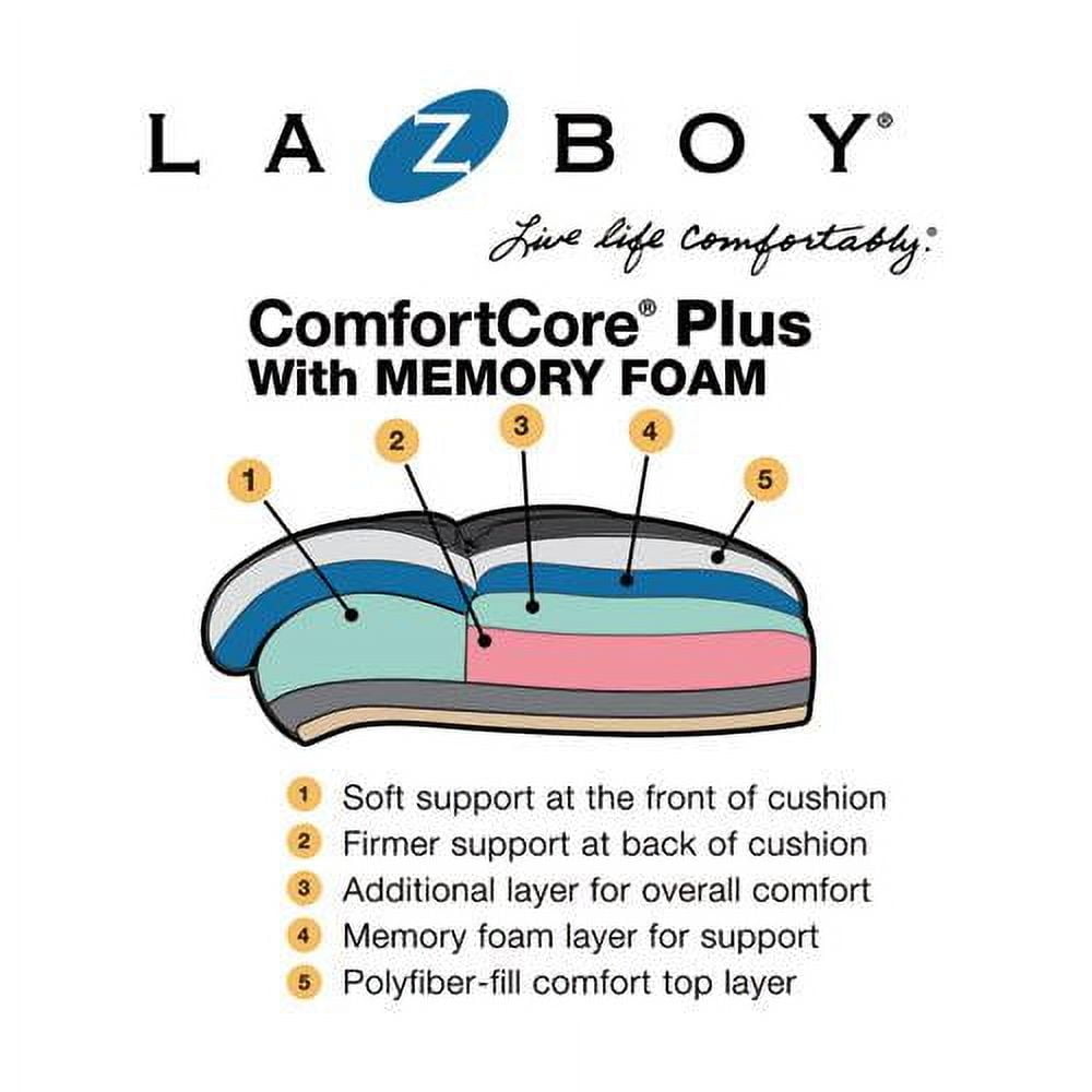 Premium La-Z-Boy® patented ComfortCore® Plus memory foam seat construction. Upholstered in commercial grade bonded leather. Wood arms and base finished with PU coating for added durability. Cable actuated seat plate for seat height adjustment and tilt function. Supports up to 300 lbs.