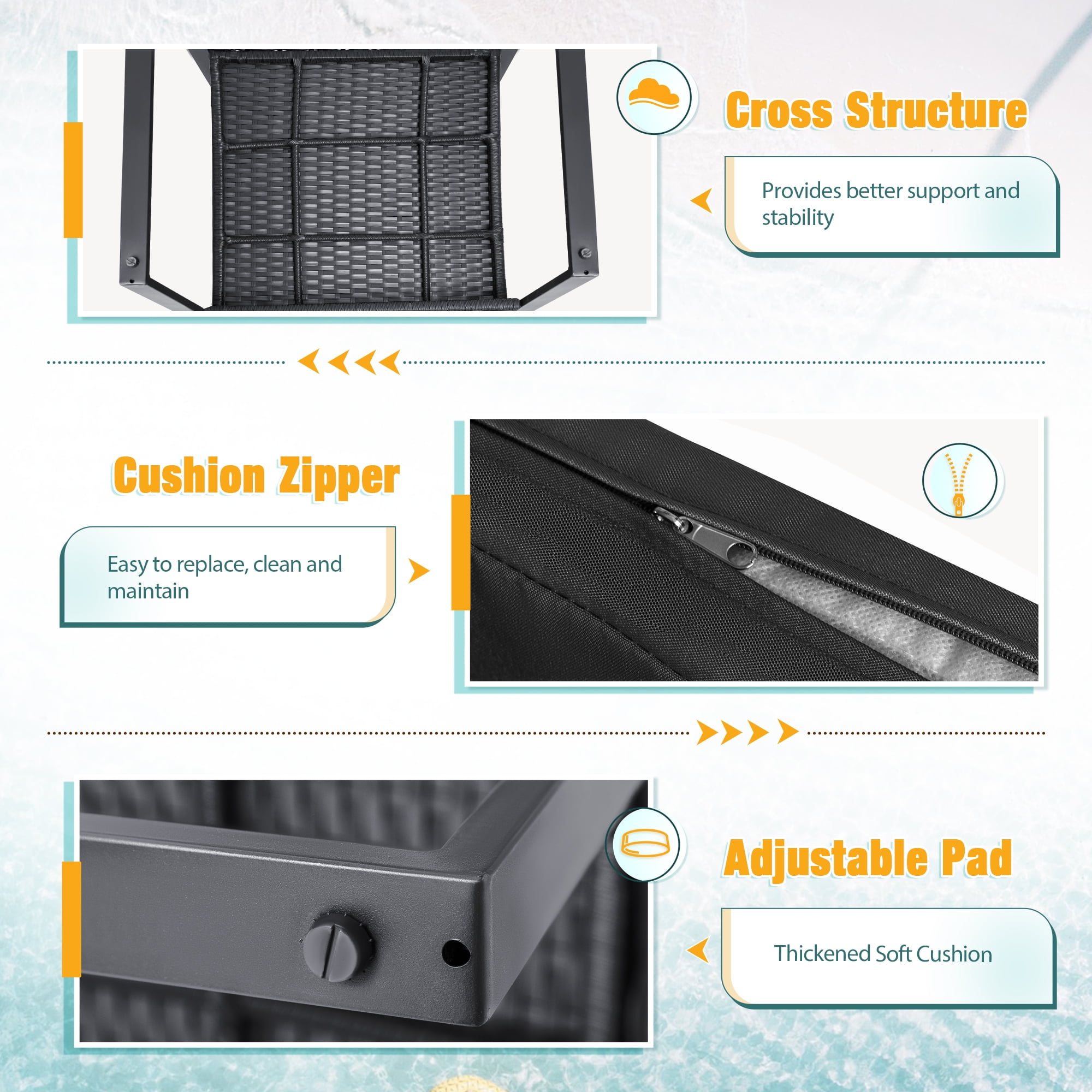 Lacoo 3 piece patio furniture cushioned PE rattan bistro sets, including 1 coffee table, 2 single chairs. Made with high quality PE rattan and solid metal frame. This balcony furniture set is durable and has a long life span, allowing you to enjoy it for years to come. Patio bistro set with elegant glass top side table which is perfect for a couple glasses of wine or the morning coffee and newspaper. Its weather resistance characteristic helps you make quick clean come to fruition. Removable sponge which can be taken out from the zippered cushions can be cleaned labor-efficiently. Coffee table with tempered glass can clear up the water stain in one minute. Ergonomically engineered for ultimate comfort, Lacoo stylish porch chairs come with thick sponged cushion and pillow for more indoor and outdoor use.