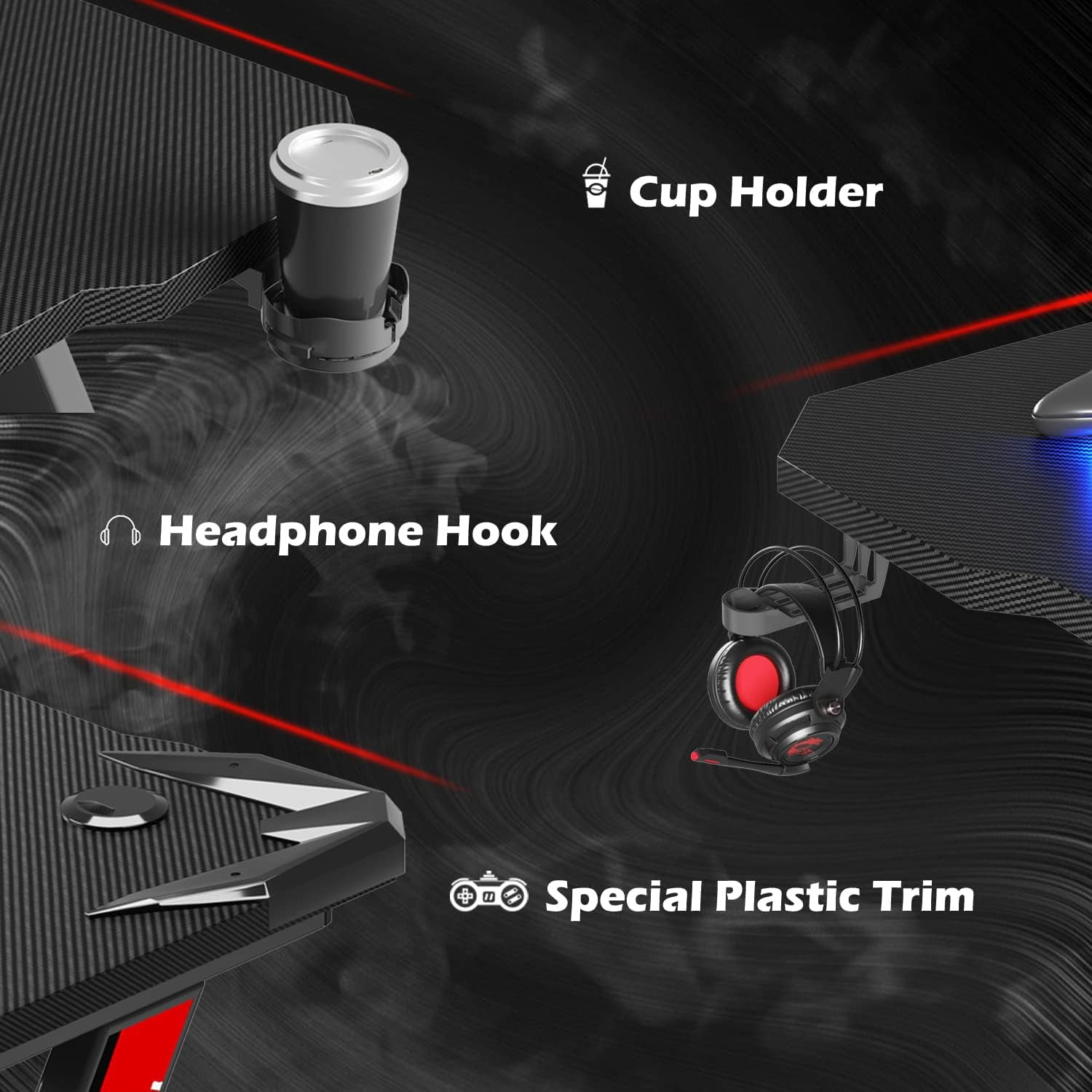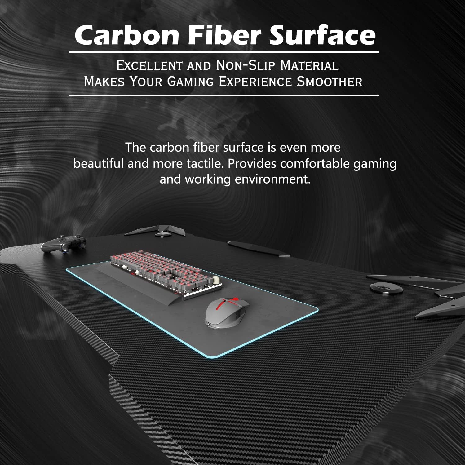 Modern Design: Modern design with Z shape metal leg gaming desk is suitable for all kinds of decors. It can be a good view from your room. Carbon Fiber Surface: The carbon fiber surface is more tactile and easy to clean. It is very comfortable to your touch. Gamer Friendly: Come with a headphone hook, a rota-table cup holder which helps you keep your equipment at hand with no worry. Easy Assembly: This desk is very easy to assemble, you can finish it within 30 minutes. Measurement: Package Dimension: 45.9″ W x 28.4″ D x 3.9″ H Height: 29.3″ H Desktop Dimension: 43.6″ W x 23.6″ D Max Capacity: 220 lbs Item Weight: 41.55 lbs Color: Black