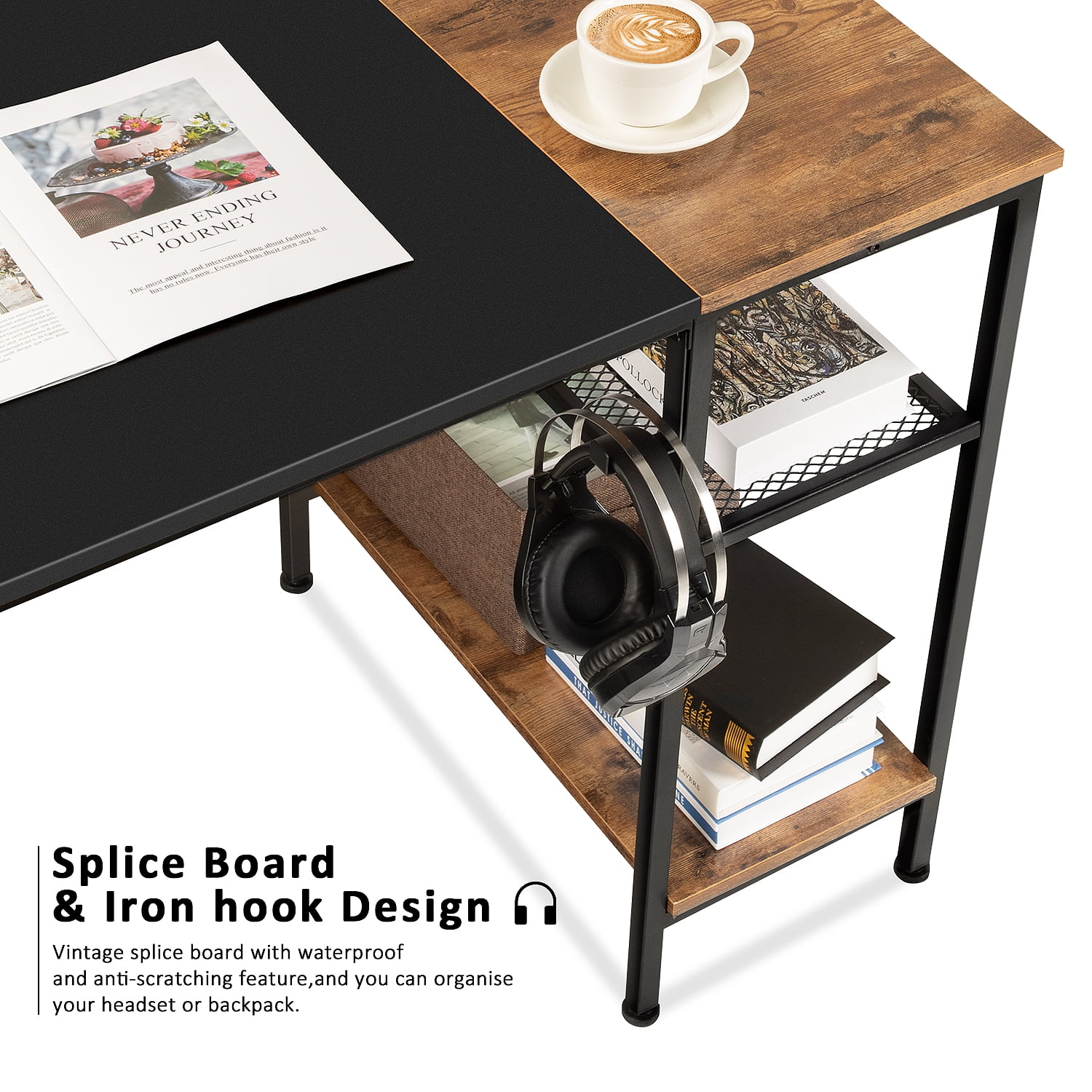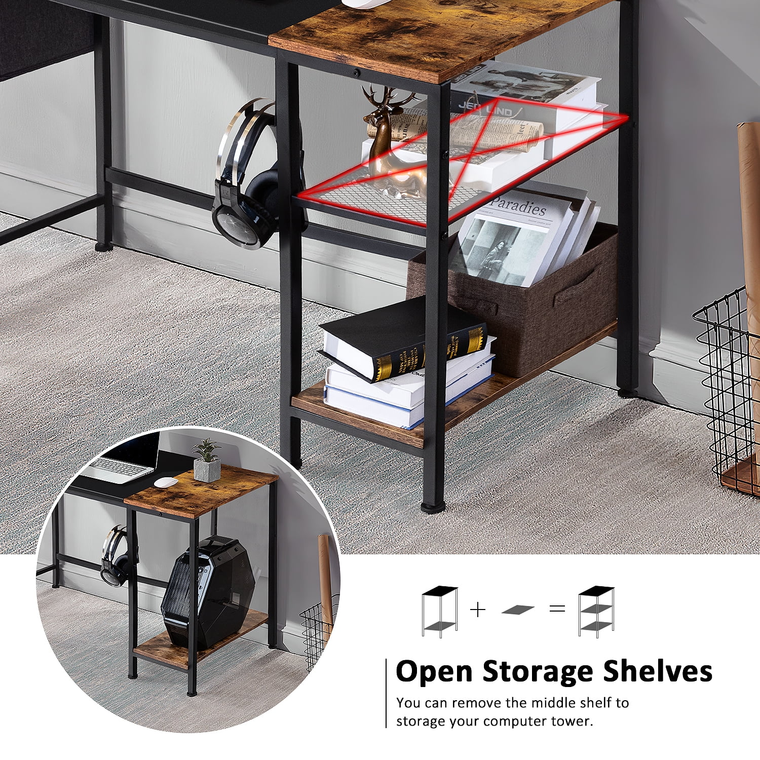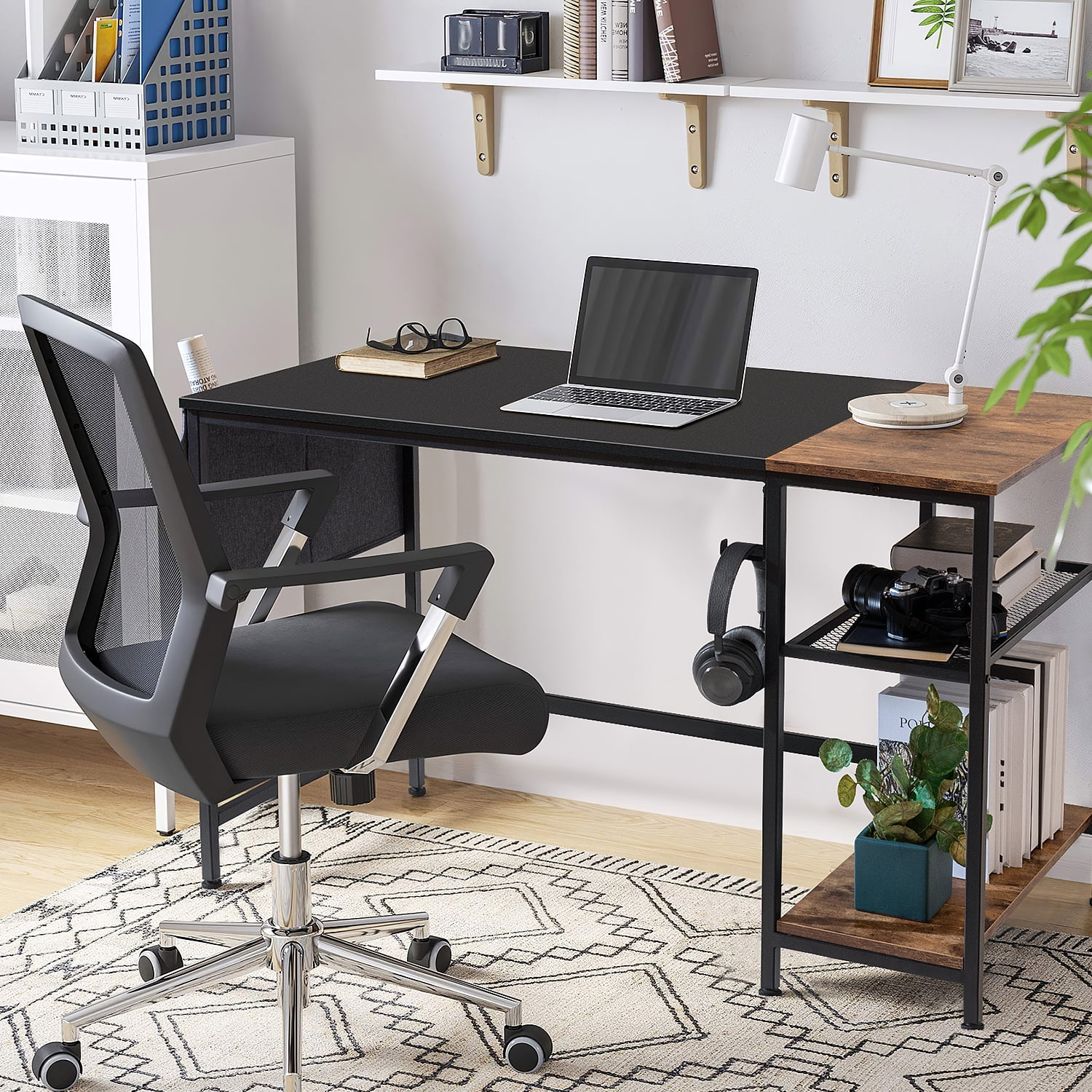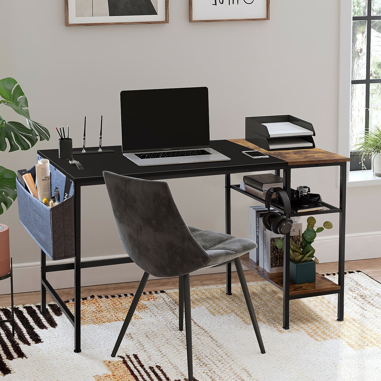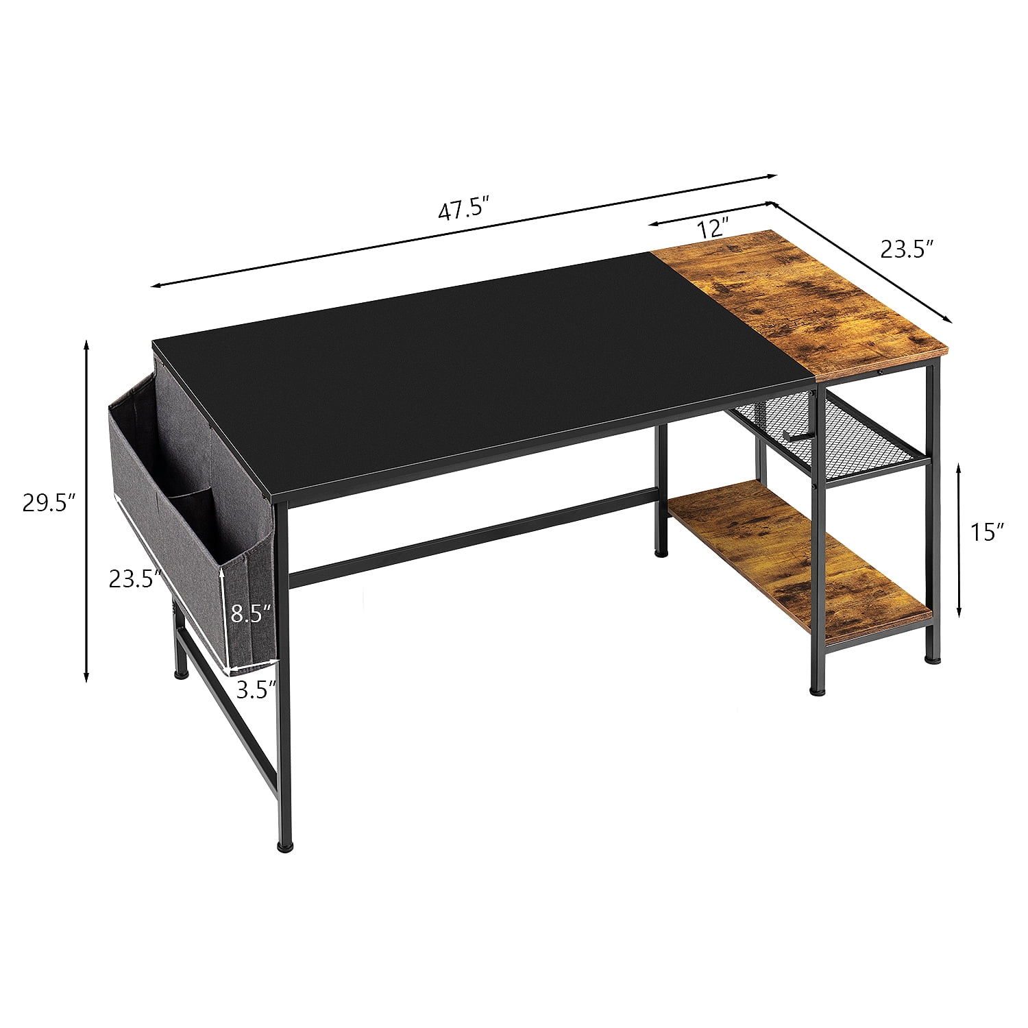 Lacoo 48 inches Home Office Wrinting Desk with Storage Shelves and Storage Bag, Black/Rustic