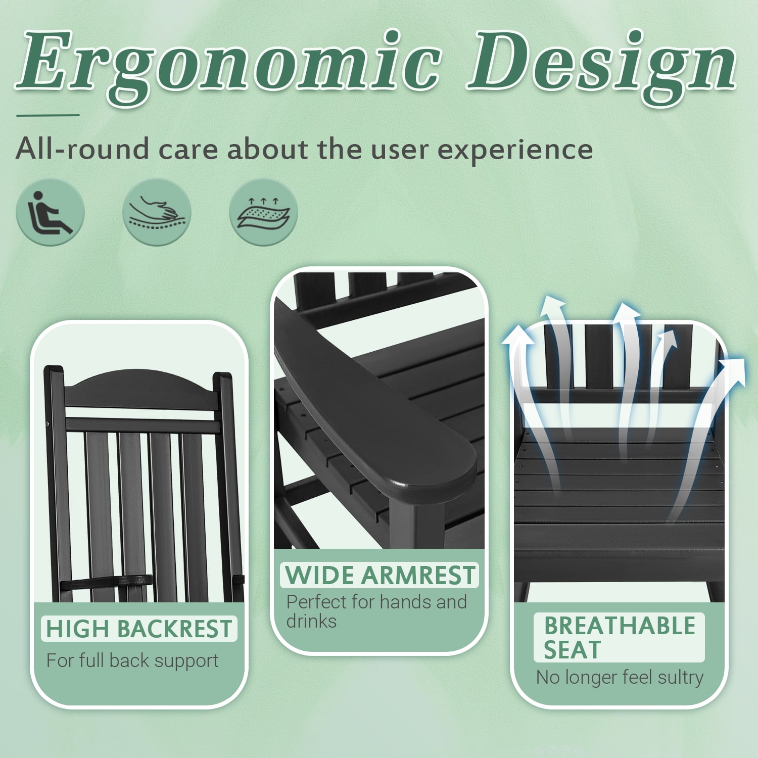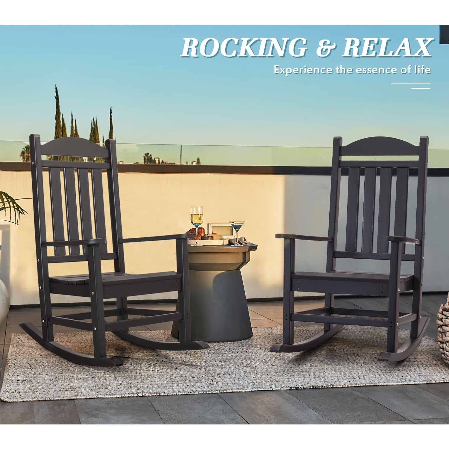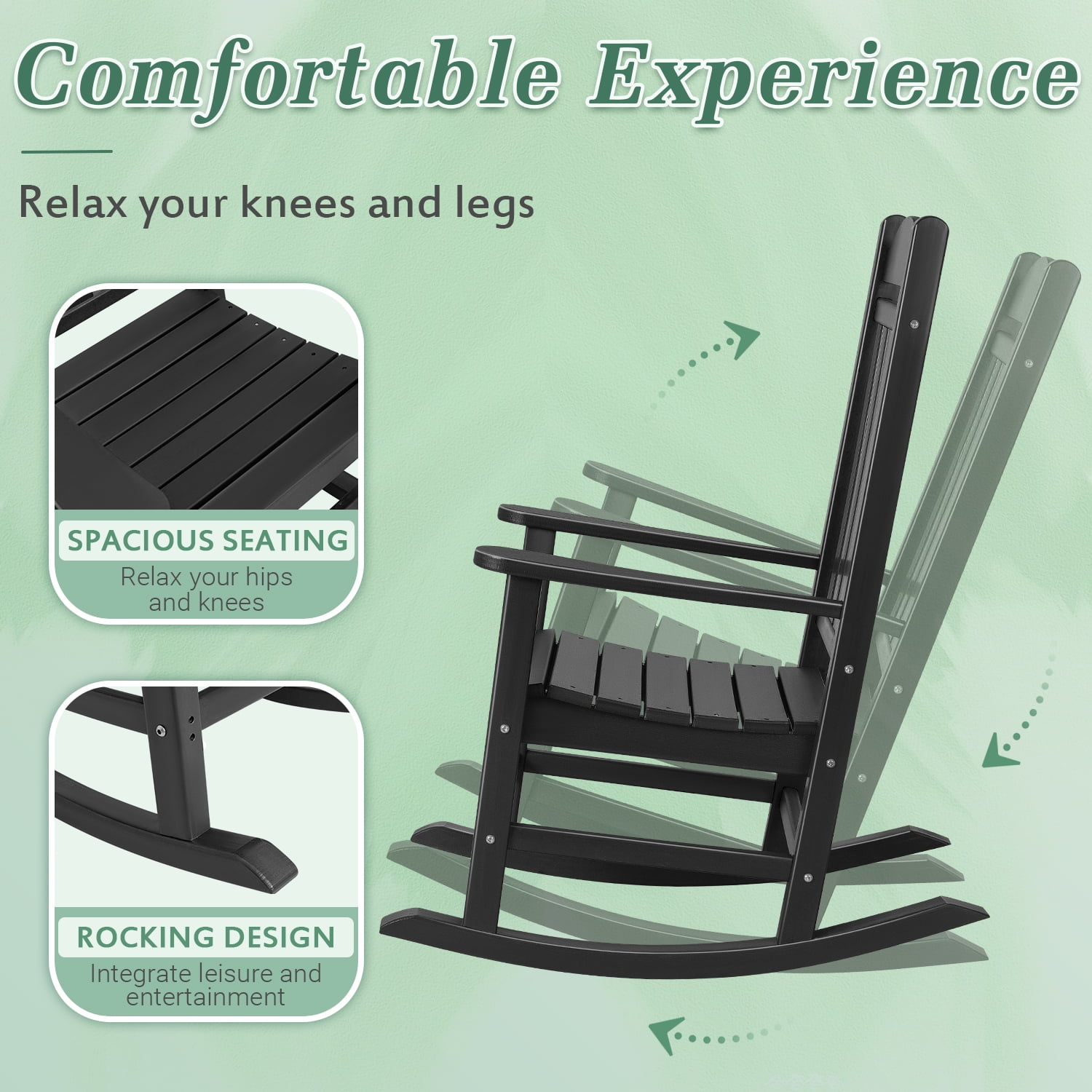 Lacoo Adirondack Rocking Chair All Weather Resistant Resin Outdoor Patio Rocking Chair, Black (1 PC )