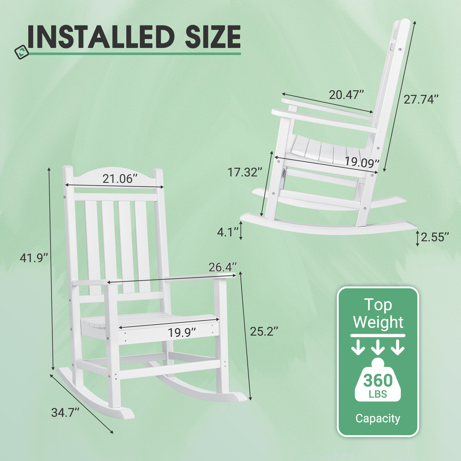 Ergonomically Comfortable Construction: The Lacoo outdoor rocking chair has spacious armrests and a high slatted backrest. The rocking design relaxes your body and mind and gives users the most comfortable experience. The thick, arc-shaped seat plate provides even and powerful support for the legs and can hold up to 360 pounds. Your back, knees and legs will relax as you sink into it, and you can rock and read while enjoying the beautiful sunshine. Durable Eco-friendly Material: The chair uses a wood-like HDPE board, which is stronger and more durable than ordinary boards while having a wooden texture. Anti-ultraviolet and waterproof, it can be used in all kinds of weather and various environments. The slat design is good for drainage, and it is not easy to fade, crack and rot in the natural environment. It does not require additional maintenance. It only needs a soft brush with water and soap to clean it. Applicable to Various Scenarios: Can be paired with any scene, whether it’s a log cabin by the lake or a balcony or a garden, by the brazier, by the pool, they always look simple and beautiful. Adding a lounge rocking chair to your bedroom or study is also a great option. You can buy a chair to enjoy your leisure time alone or buy multiple chairs to gather with family and friends for a holiday. Simple Structure, Easy to Install: Equipped with detailed graphic instructions and all the tools and hardware required for installation, it only takes 15-20 minutes for a single person to assemble the entire chair. We have a professional after-sales team, if you encounter missing accessories or other quality problems, please contact us Email: [email protected]