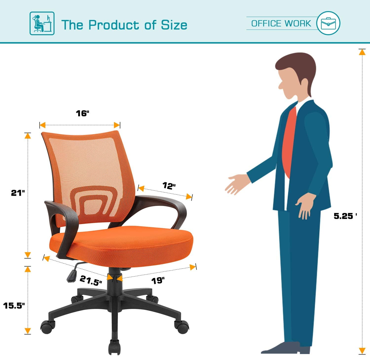 Lacoo Adjustable Mid Back Office Chair Mesh Swivel Desk Chair with Armrests, Orange