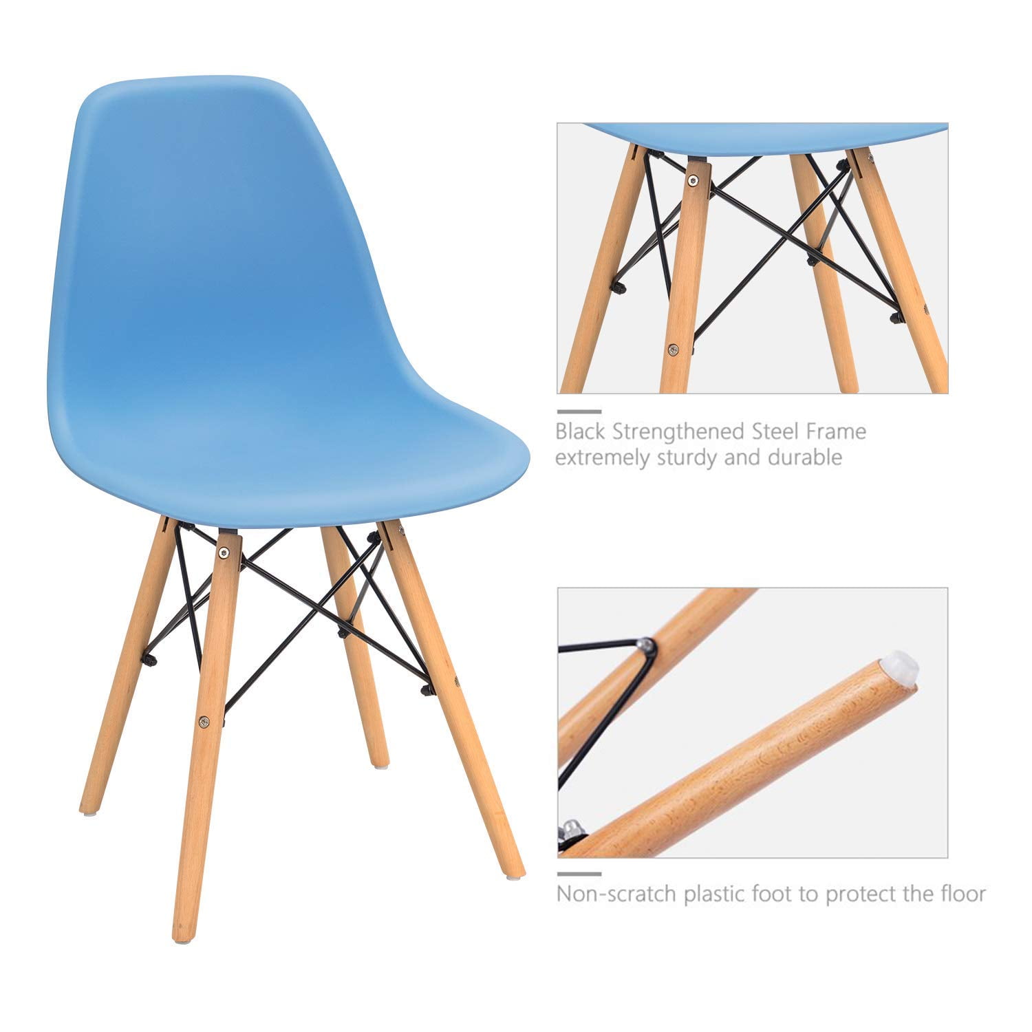 Lacoo Dining Chairs Pre Assembled Modern Style DSW Chair Classic Shell Armless Indoor Kitchen Dining Living Room Side Chairs Set of 4 (Blue)