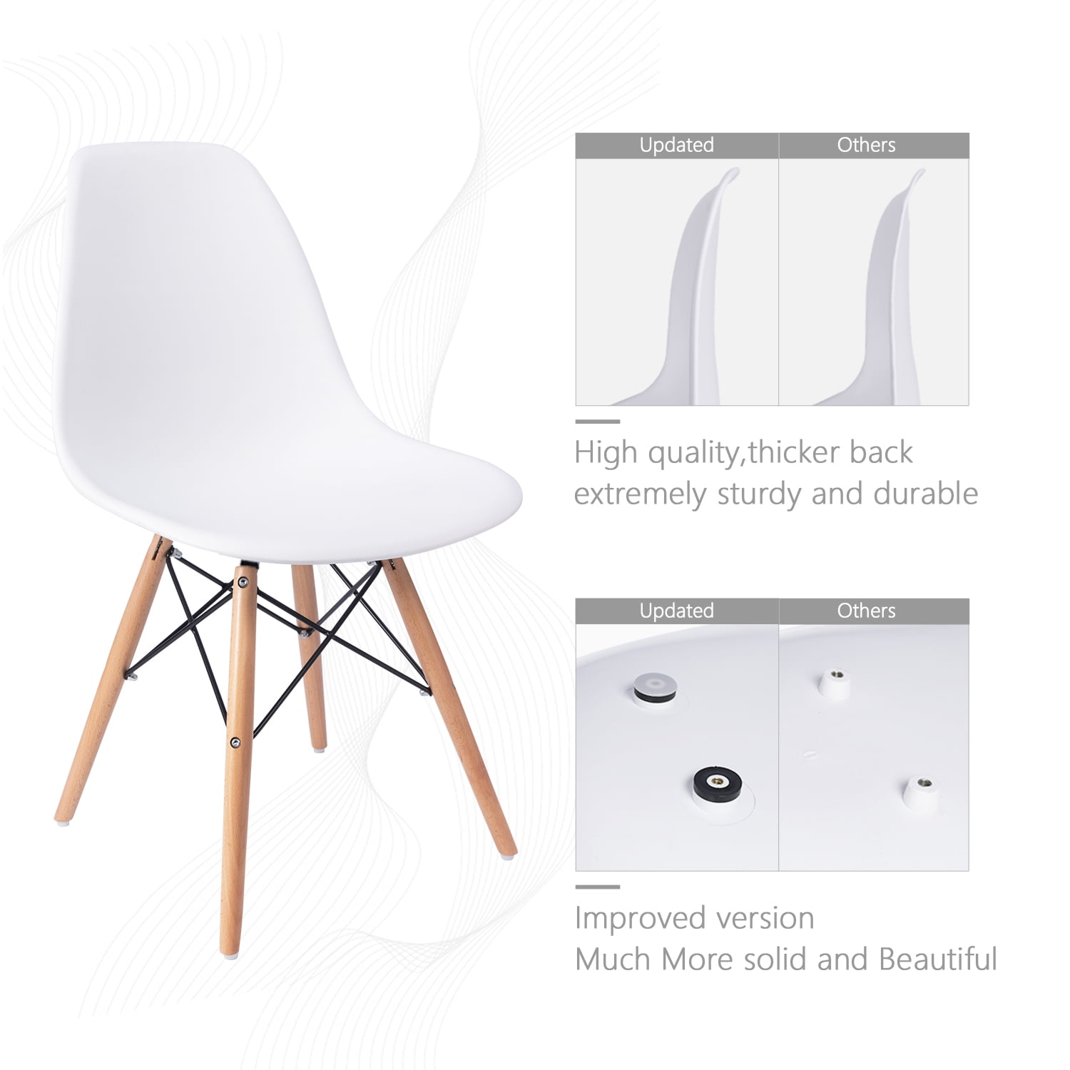 Lacoo Pre Assembled Modern Dining Chairs,Multiple Colors: Ergonomic design, matte Finished plastic seat Black Strengthened Steel Frame, extremely sturdy and durable Mid Century Modern Style, prefect for home and office use Light weight; Home easily pre-assembly required Bend-resistant high quality back Non-toxic HQ polypropylene for easy cleaning Non-scratch plastic foot to protect the floor Chair Weight: 7.5LB Weight Limit: 275LBS Seat Height: 16.5″ Seat Dimension:18.1″ x 16.7″ (WxD) Overall Dimension: 18.1″ x 16.7″ x 31.9 ” (WxDxH) Arrives in one box