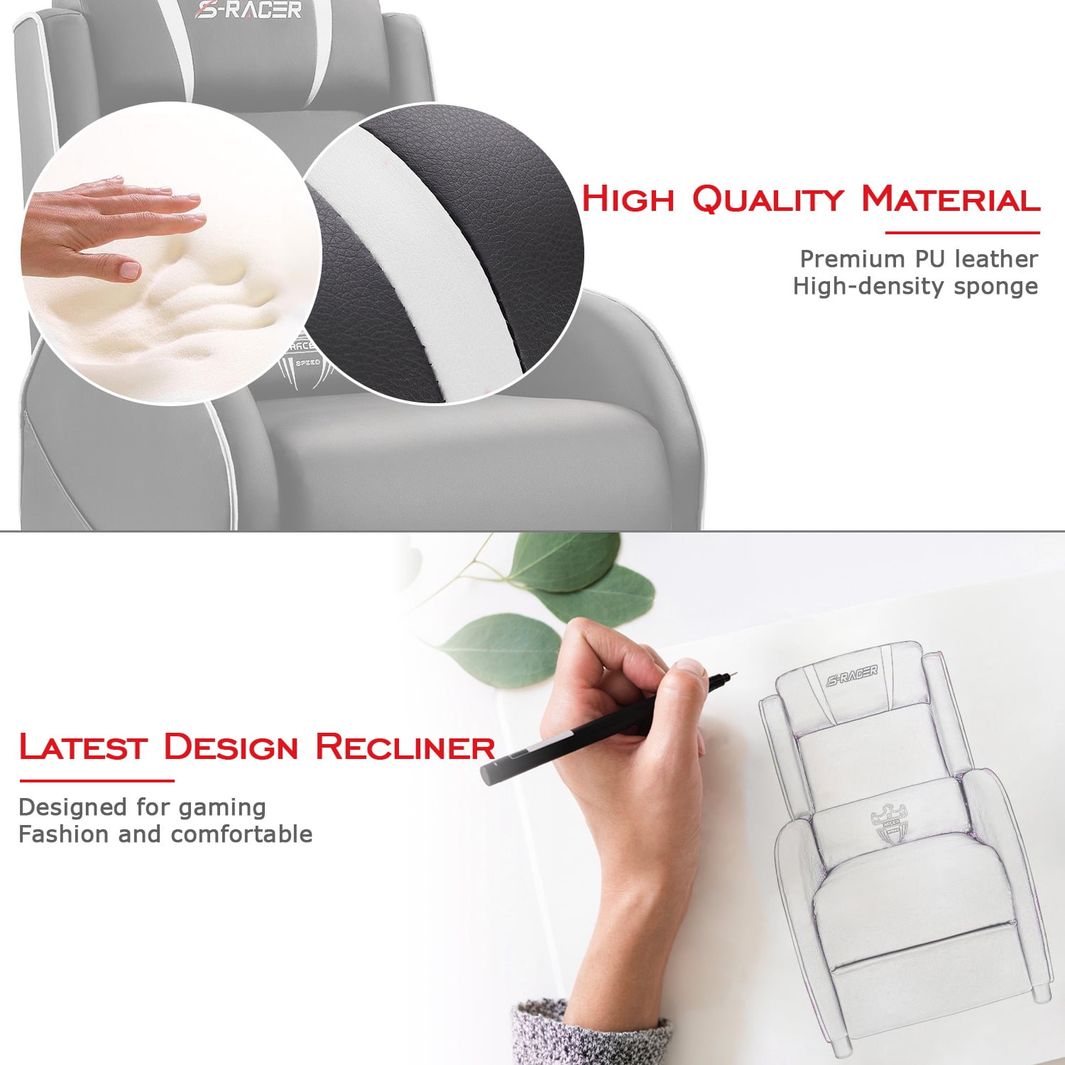 Lacoo Gaming Recliner Chair PU Leather Massage Home Theater Seating Single Modern Living Room Sofa Recliner, White Accent Lacoo ensures to have the best products at the lowest prices by dealing directly with the manufacturers to sell products straight to you. If you are looking for an attractive recliner to go in your living room, bedroom, gaming room or even your recreational area this is the one for you! This gaming recliner made with high-quality PU leather (comfortable skin friendly and easily cleaned) and high-density thicker sponge( high resilience and high permeability). It can be used as three kinds of shape form 90 to 180 degree, suit for gaming, working, watching movies and napping. This recliner keeps the same function with the base version and increase its aesthetic feeling and e-sports style. Latest recliner designed for gaming. Compare with the racing gaming chair, gaming recliner is bigger and softer, it’s more suitable for long time gaming. Built-in lumbar support which embroidered with a pattern of an eagle. Built-in headrest with the exclusive logo designed. The storage bags on both sides of the seat are more convenient. If you’re not satisfied with chair, please email us, we will help you solve it in time.