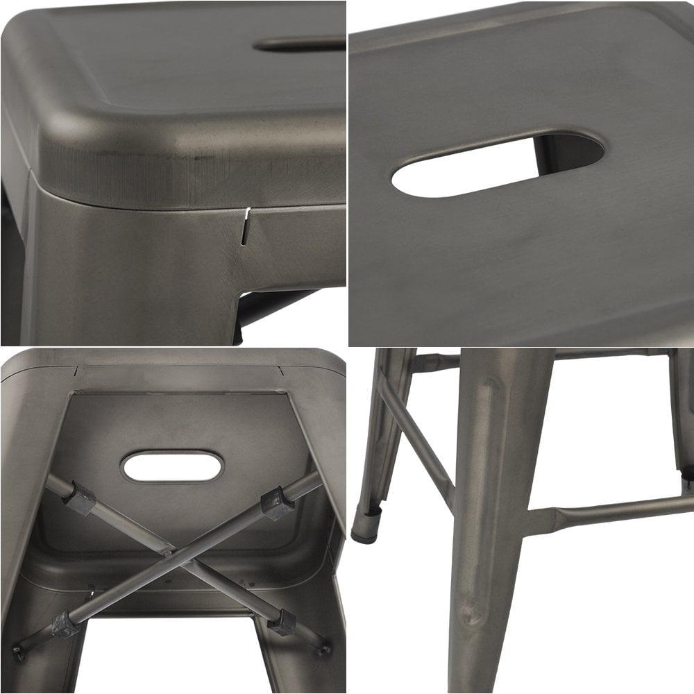 LACOO High Backless Stackable Indoor Outdoor Bar Stool Durable sheet metal frame designed to avoid bending Sturdy cross brace support under the seat for enhanced stability Plastic caps included to protect your floors from scratches Modern industrial style complements various decor Easy stackable design for convenient storage and space-saving Versatile for indoor and outdoor use, ideal for bars, cafes, restaurants, kitchens, and patios Load capacity of 320 lbs for reliable support Seat height of 24 inches for comfortable seating