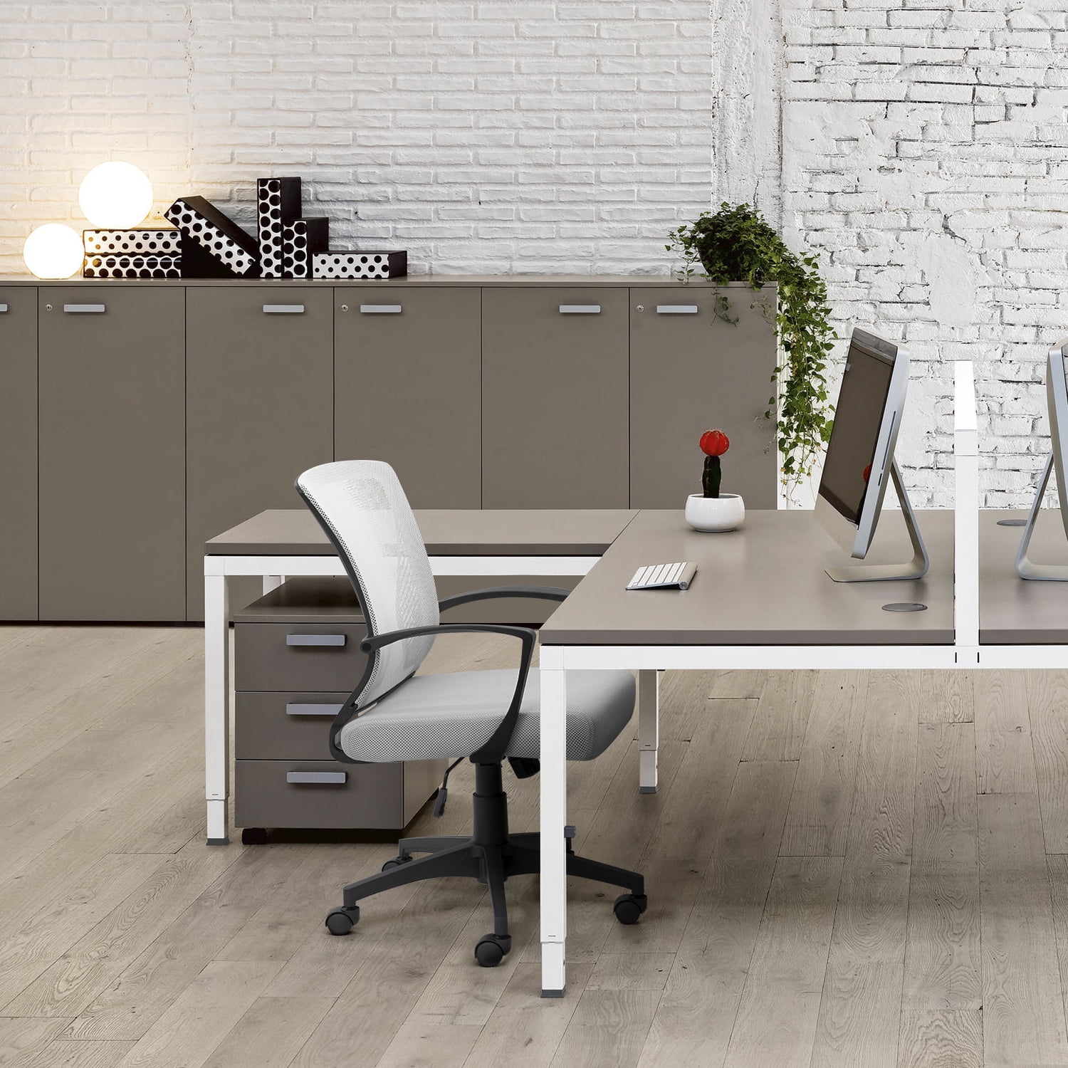 Description:Lacoo mid-back mesh chair with Two Wings support can gave you much support to help you avoid hurt from long time sitting. Adjustable lever underneath the seat can adjust height and also can control the rock function. Push in to lock and pull out to rock. Relax yourself with this Lacoo office chair.Key Features:-Ergonomic design mid-back mesh office chair can provide a better sitting experience.-Thick padding seat with high density foam is very comfortable to sit in.-Five star base and quiet rolling wheels is suitable for 360 swivel function.-Warranty: Free exchange for installation problems, damage and missing parts within 1 year. We are glad to exchange your replacement or refund your money if you don’t like the item you purchase within 1 month.Specifics:Item weight:24 lbs Package dimension: 23”(L)X 23”(W) X 11(H)Weight capacity: 265 lbs
