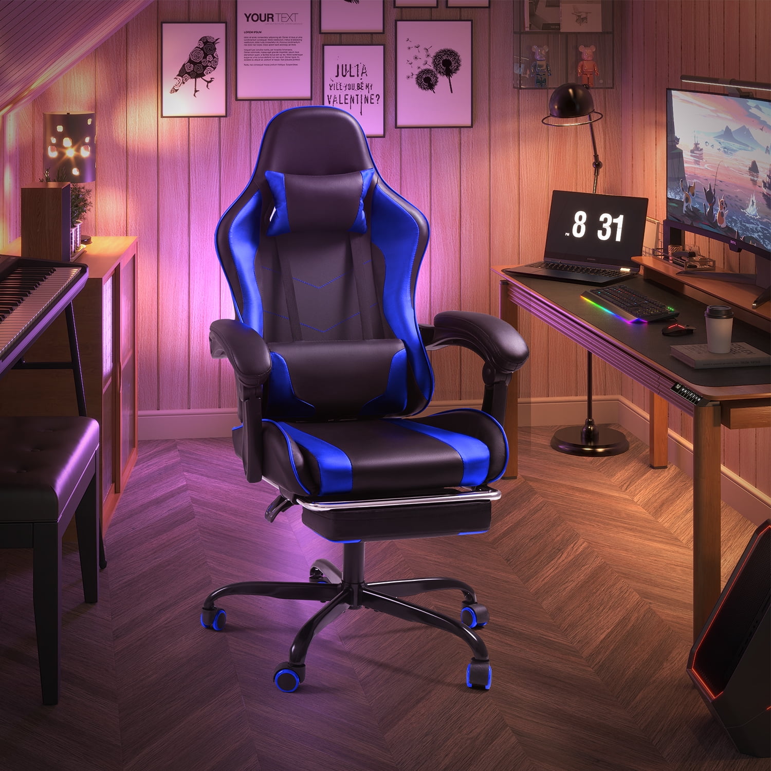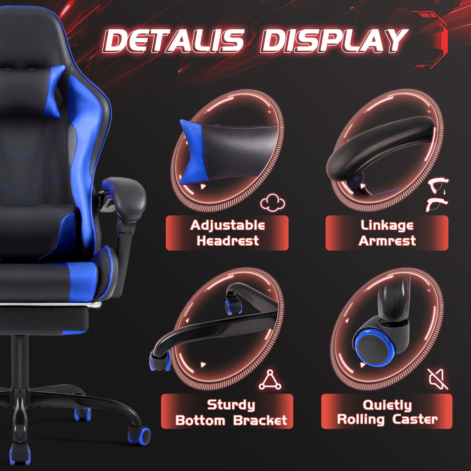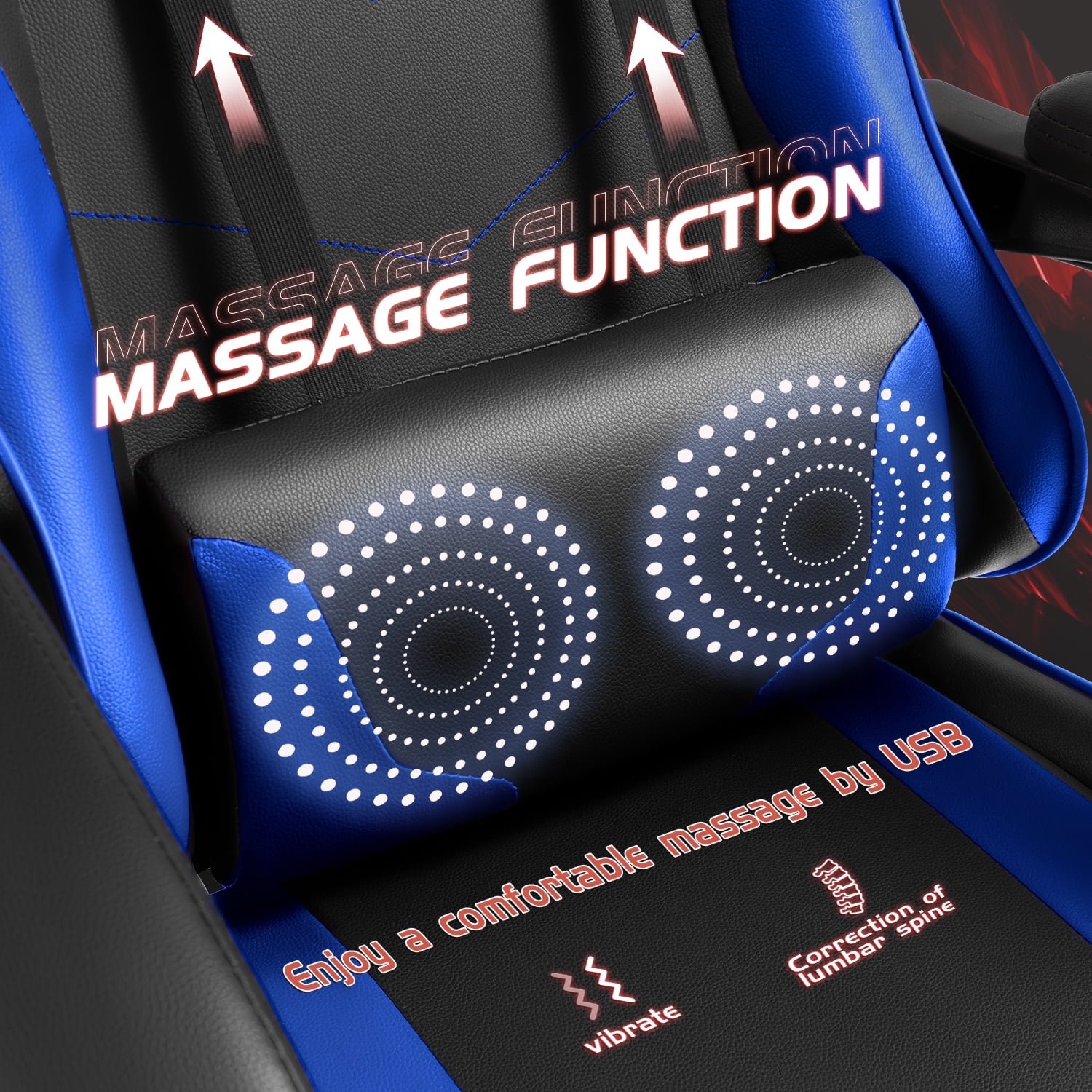 Lacoo PU Leather Gaming Chair Massage Ergonomic Gamer Chair Height Adjustable Computer Chair with Footrest & Lumbar Support, Blue