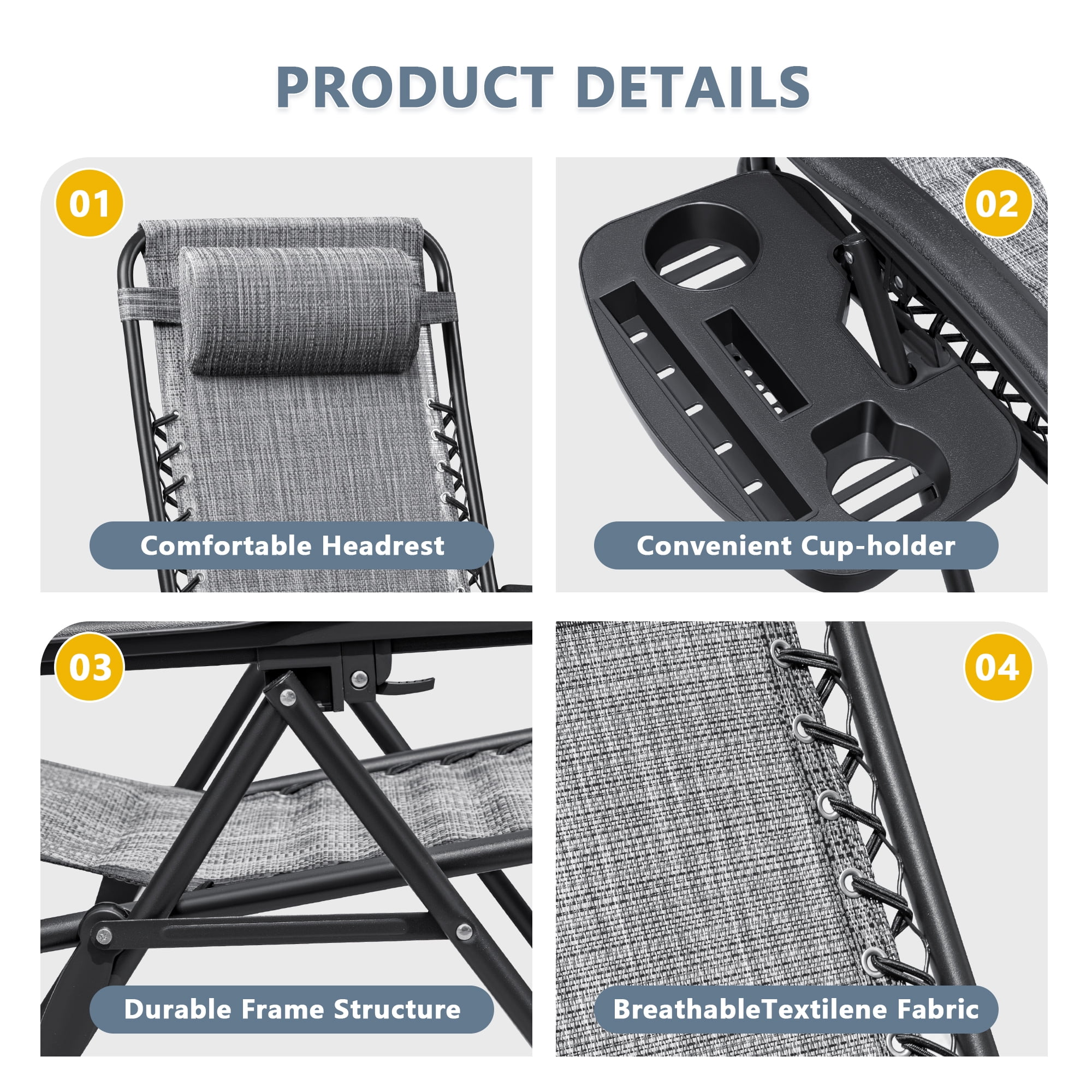 Lacoo Zero Gravity Chair Patio Outdoor Foldable Lawn Lounge Chair Reclining Chair with Adjustable Pillow Pack of 2, Double Gray