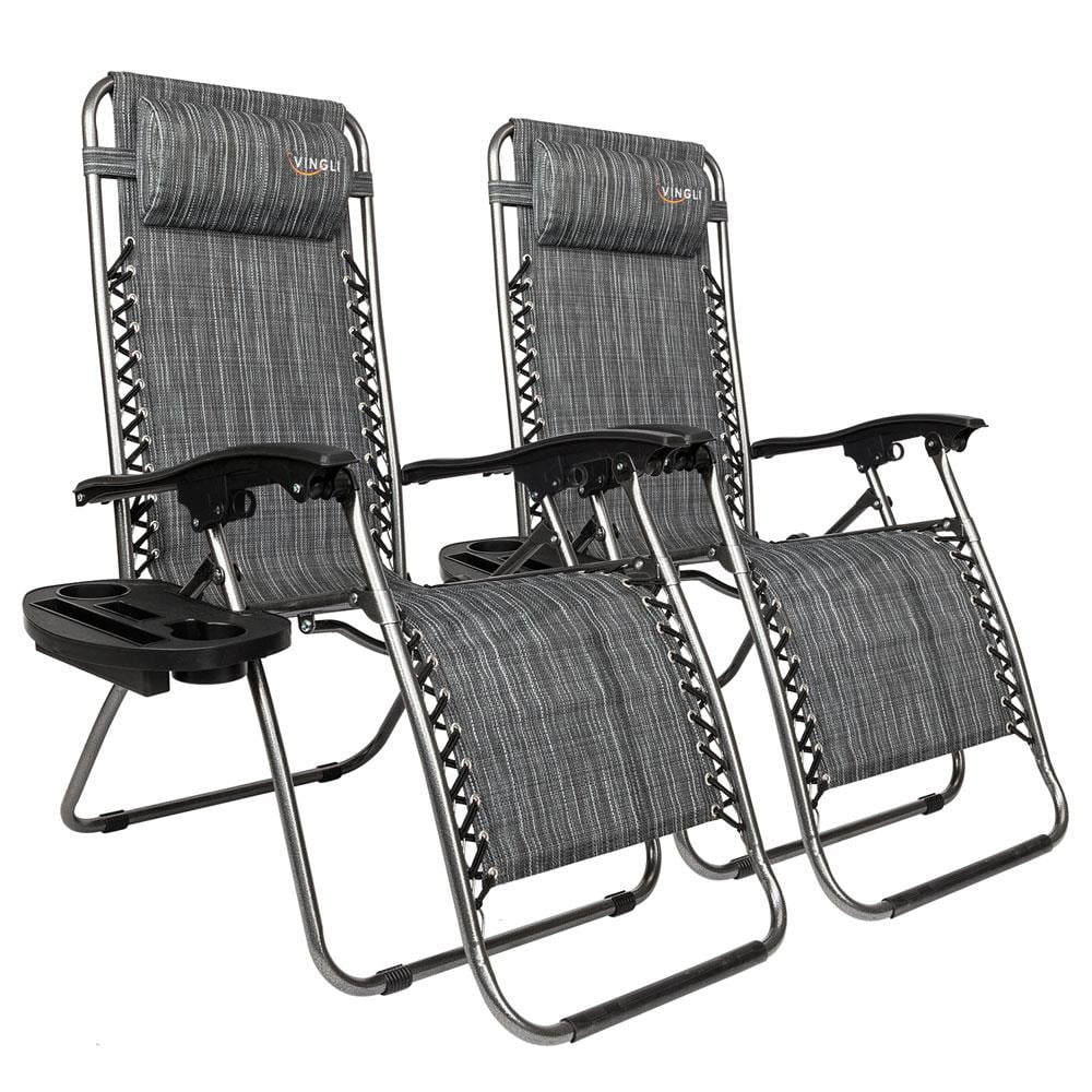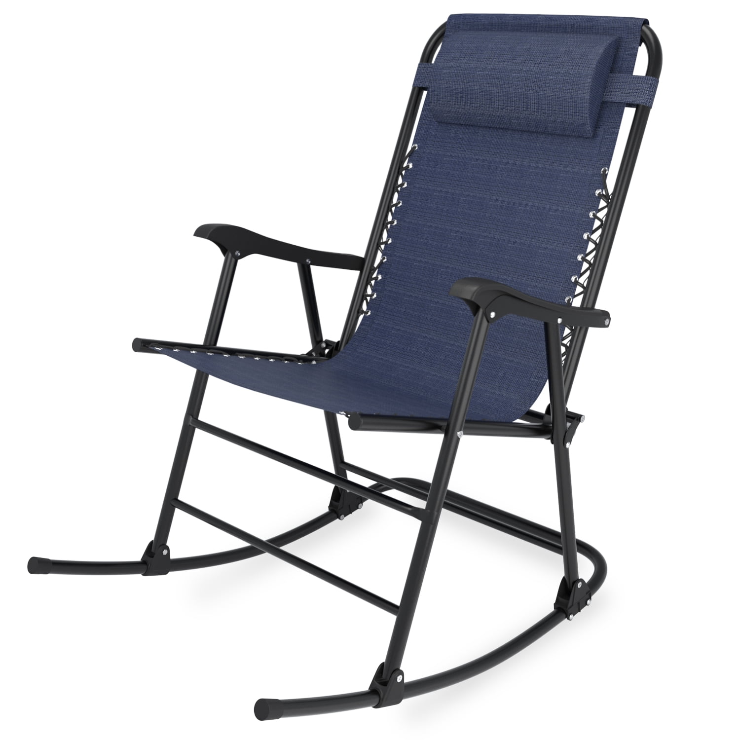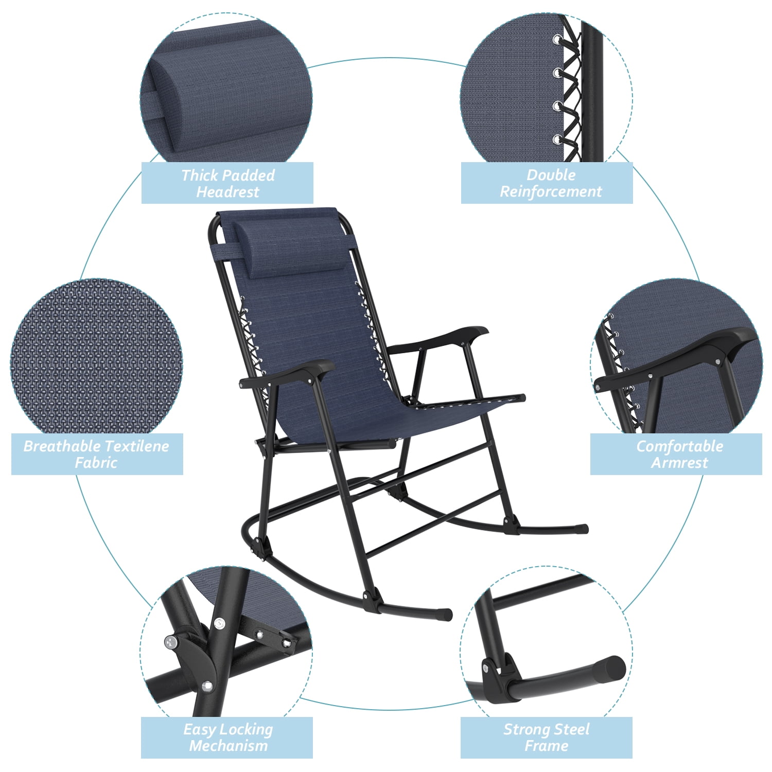 Lacoo Zero Rocking Gravity Chair with Headrest Pillow Folding Recliner Foldable Lounge Chair for Poolside, Lawn and Patio, Blue