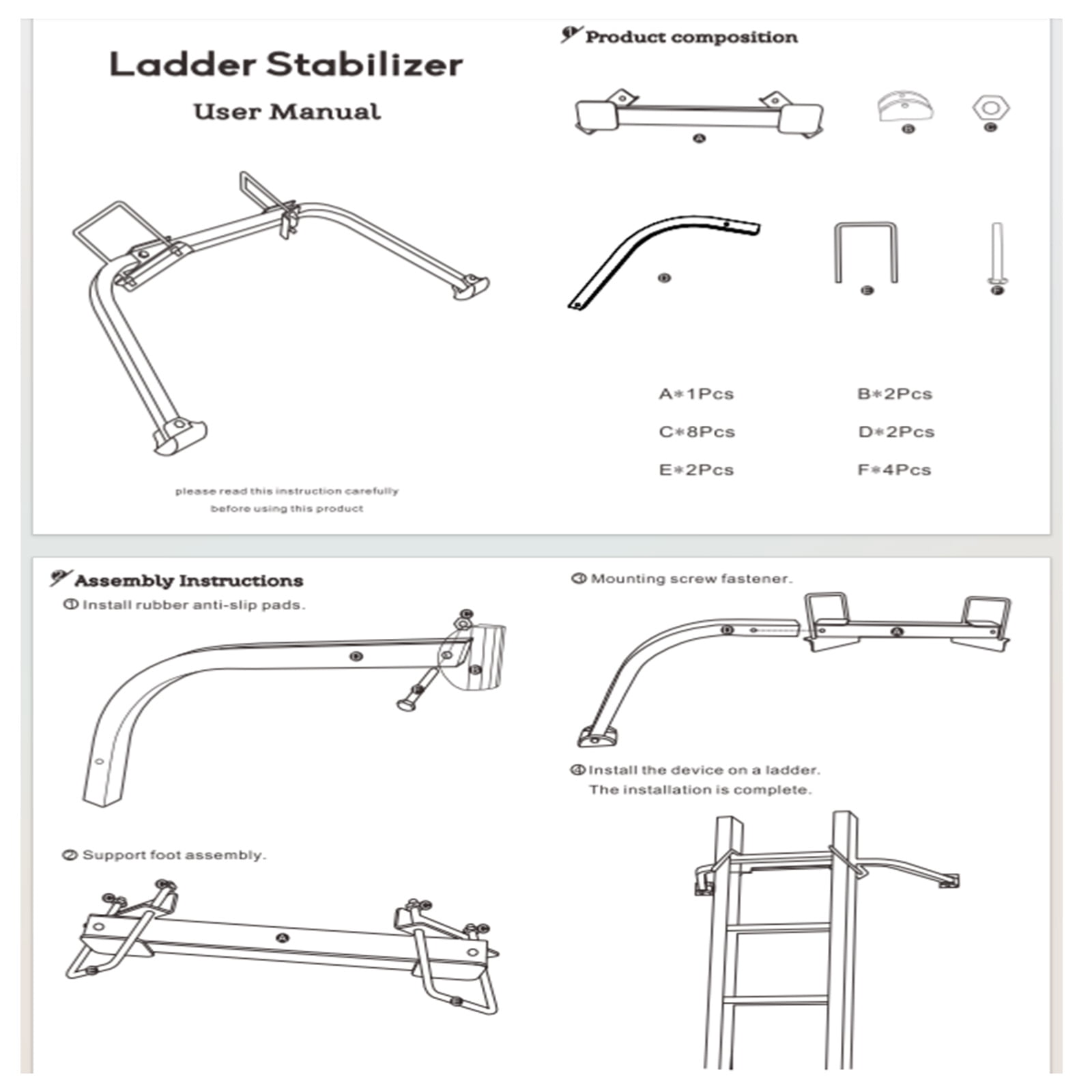 Ladder Stabilizer,Accessory for Roof Gutter Wing Span/Wall Extension Ladder Standoff Arms,Extension Ladder Accessory Premium structure made of high-quality forged steel for durability and a smooth, rust-resistant surface Designed with professional large rubber pads on both ends to prevent slippage and protect wall paint and roof tiles from damage Dimensions: 38″ L x 14″ W x 4″ H, suitable for most windows and designed to fit around rain gutters Features replaceable extra heavy-duty rubber tips on both ends to help prevent damage to shingles and metal roofs Versatile use for general contractors, roofers, painters, and window cleaners, making it ideal for various home maintenance projects Easy installation with included instructions, attaching securely with long bolts