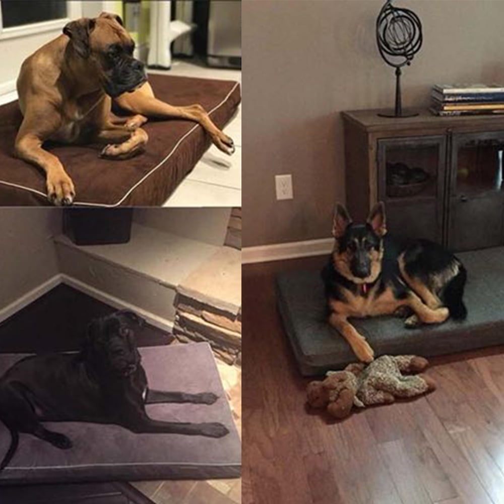 Colors: Slate Grey, Chocolate, Blue Denim Sizes and Dimensions: Large (46″x28″x4″) Weight capacity: 100 pounds Soothes pressure points and supports joints Machine washable fabrics with zippered design Medical-grade memory foam dog bed Waterproof liner: Water-resistant, tear-resistant cover.
