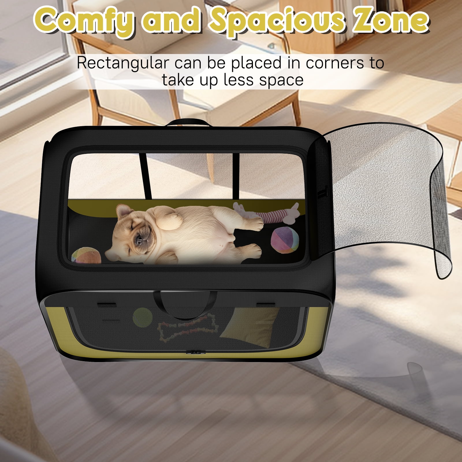 Experience the ultimate convenience with our Large Pop-Up Dog Crate! No tools needed, unfolds instantly, folds compact for storage. Crafted from durable 600D Oxford cloth and sturdy steel, it’s strong yet lightweight. Breathable mesh windows and waterproof PVC make it perfect for both indoor and outdoor use. Store treats, leashes, and more in the side pockets, and carry it easily with the handle. The spacious interior and reinforced zipper keep pets safe and secure. Perfect for travel, home use, or as a temporary shelter. Give your pet the freedom and comfort they deserve with our innovative dog crate