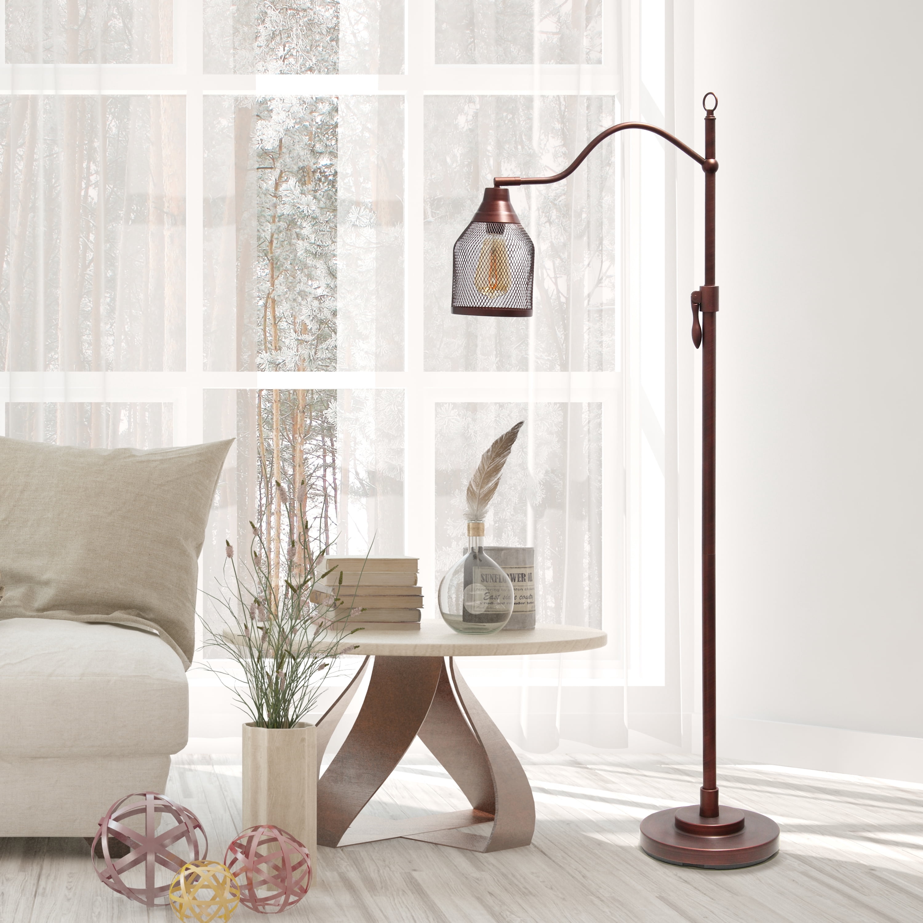With its street lamp styled frame, this floor lamp will light up any room in your home with vintage charm. Featuring a metal mesh shade, red bronze finish, and the capability to adjust the height and rotate the shade, this lamp is sure to suit all of your lighting needs. Perfect for your foyer, bedroom, library, office or living room, this industrial floor lamp will add the optimal amount of lighting to your space.