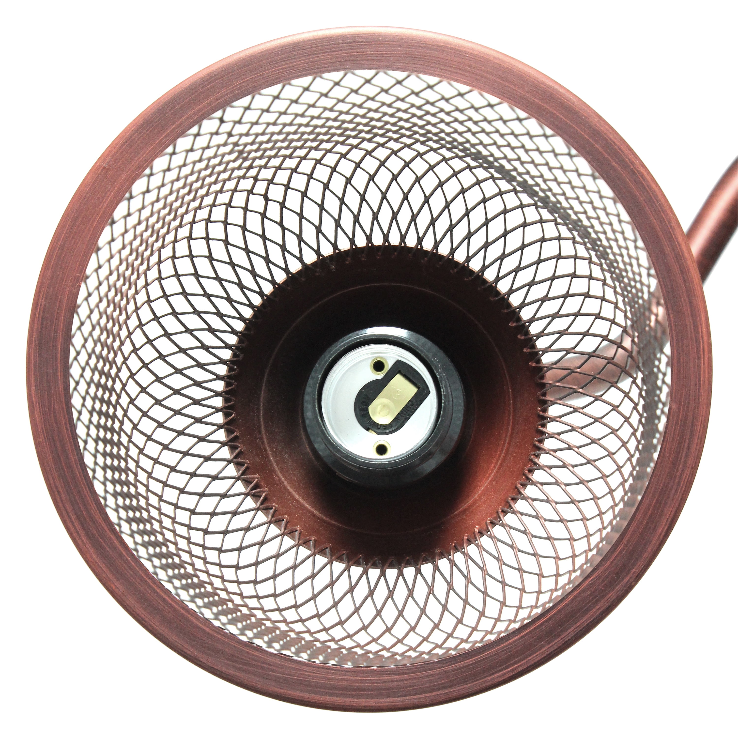 Cylindrical metal mesh shade Industrial style Easily accesible footswitch on the cord 1 x 60W equivalent medium type A base bulb (not included) required *For full vintage look, Type T45 Edison bulb is recommended* 6 foot black cord Rustic Red Bronze finish