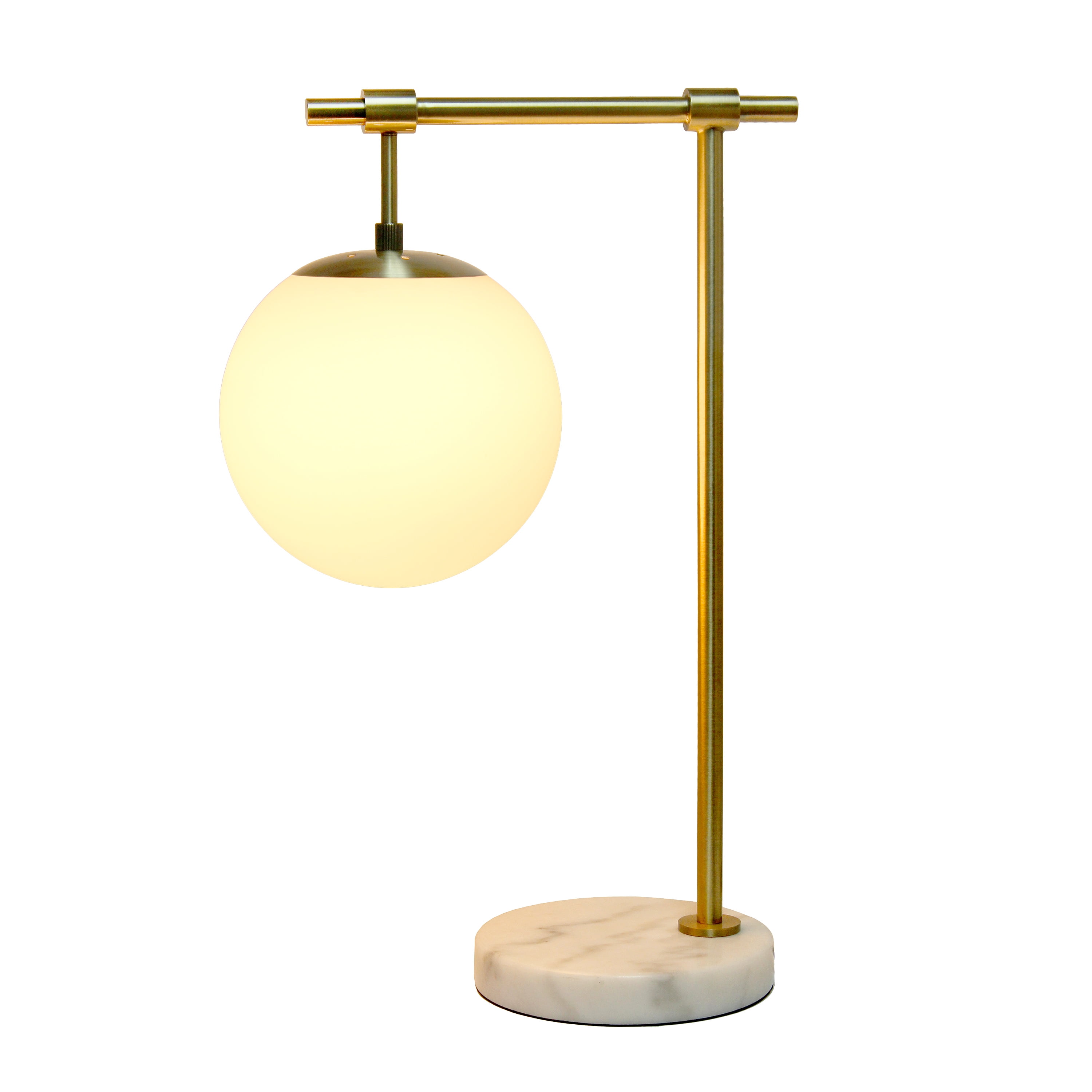 Lalia Home Studio Loft 21″ White Globe Shade Table Desk Lamp With Marble Base and Antique Brass Arm