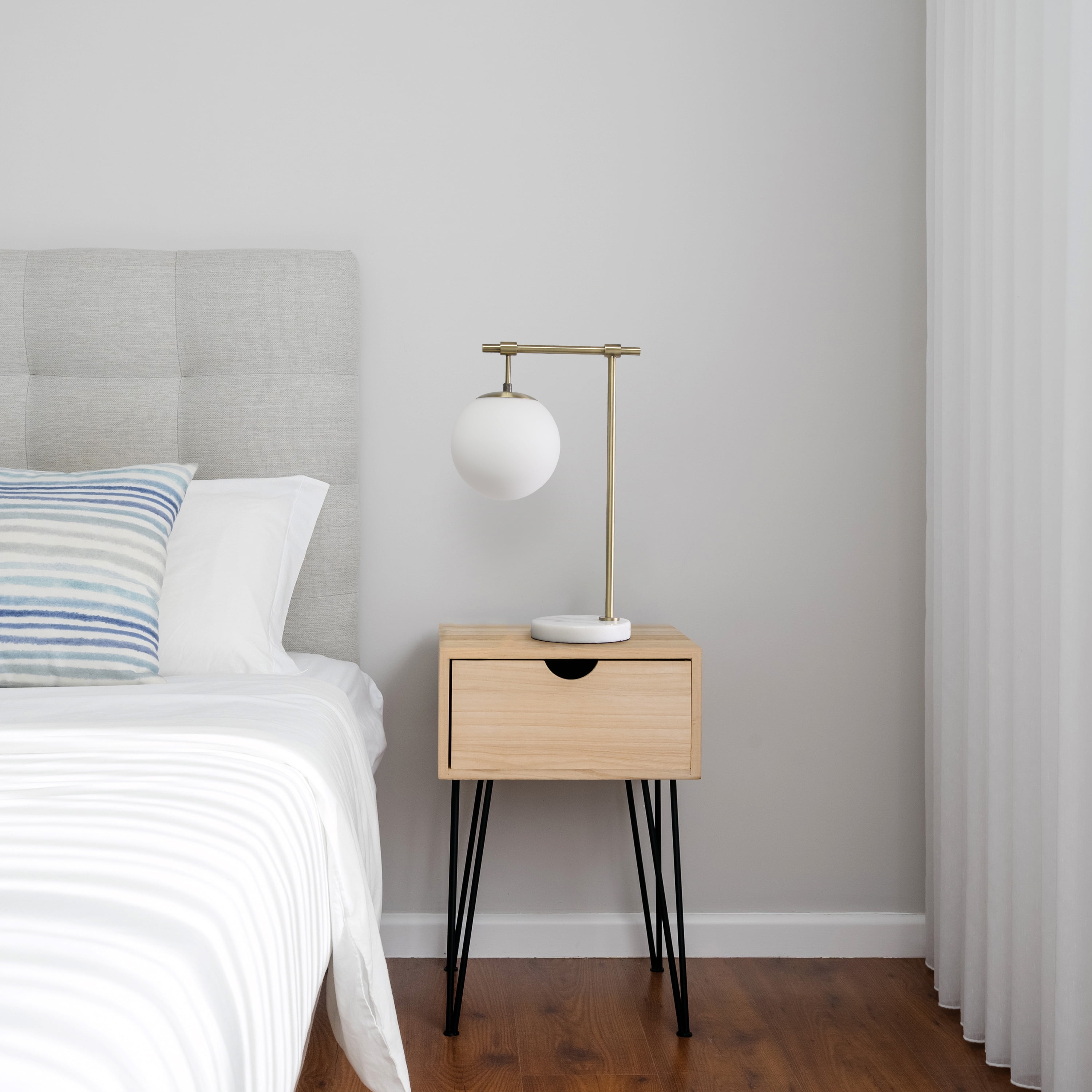 Simple and elegant, this lamp is sure to make a tasteful update to any room in your home. This lamp features a beautiful marble base complimented by a white globe shade. Rejuvenate your living room, bedroom, foyer or office with this trendy lamp!