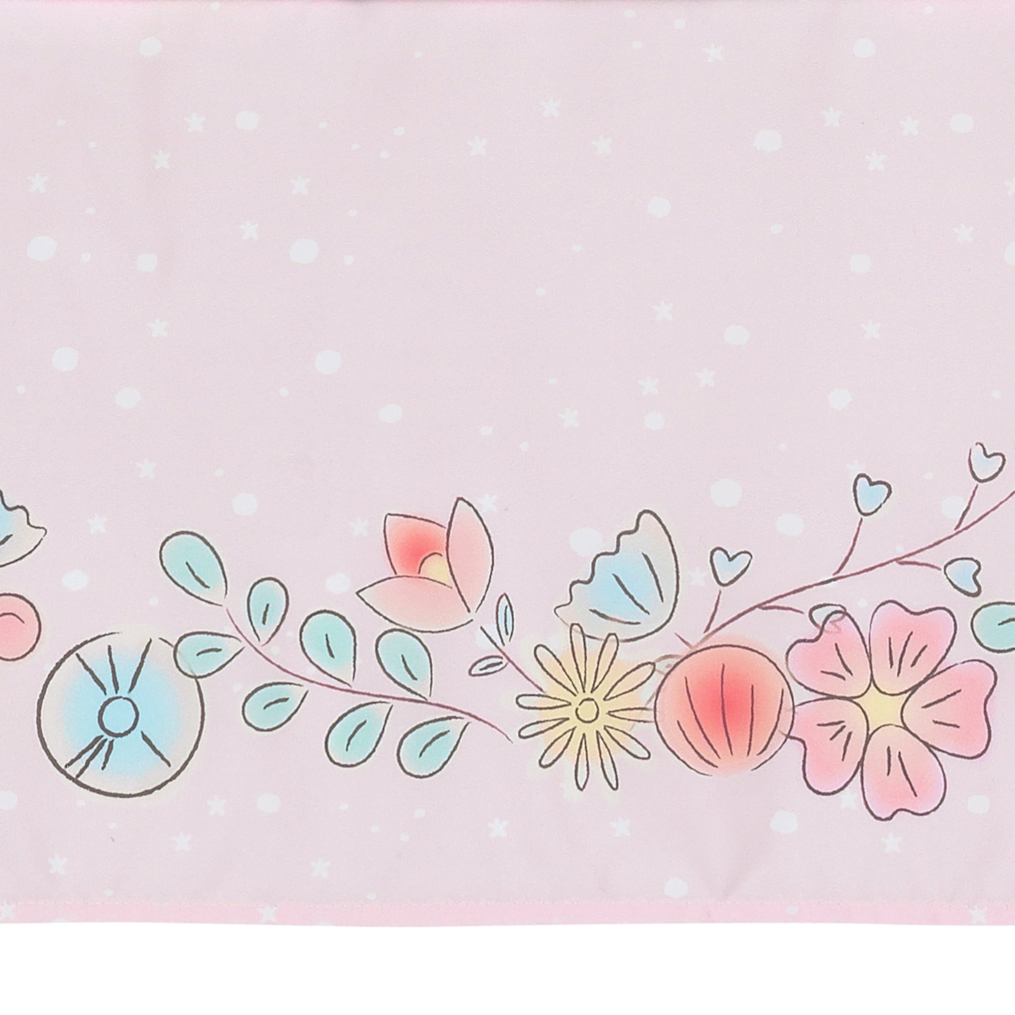 This charming officially licensed Disney Princess bedding set includes one quilt, one fitted crib sheet, and one crib skirt. The quilt features three Disney Princesses, Belle (Beauty and the Beast), Tiana (Princess and the Frog), and Cinderella. All three princesses are wearing their favorite ballgowns. Belle in yellow, Tiana in green and Cinderella in blue. A floral border in pastel colors circle around each princess. The fitted crib sheet is on a pink ground and features all three princesses. The crib sheet has elastic all the way around ensuring a safe and secure fit on a standard sized crib mattress measuring 52” x 28”. The pink crib skirt has tossed white stars and a charming garland of pastel flowers. This set is made of a soft microfiber fabric which is eco friendly and machine washable for easy care.