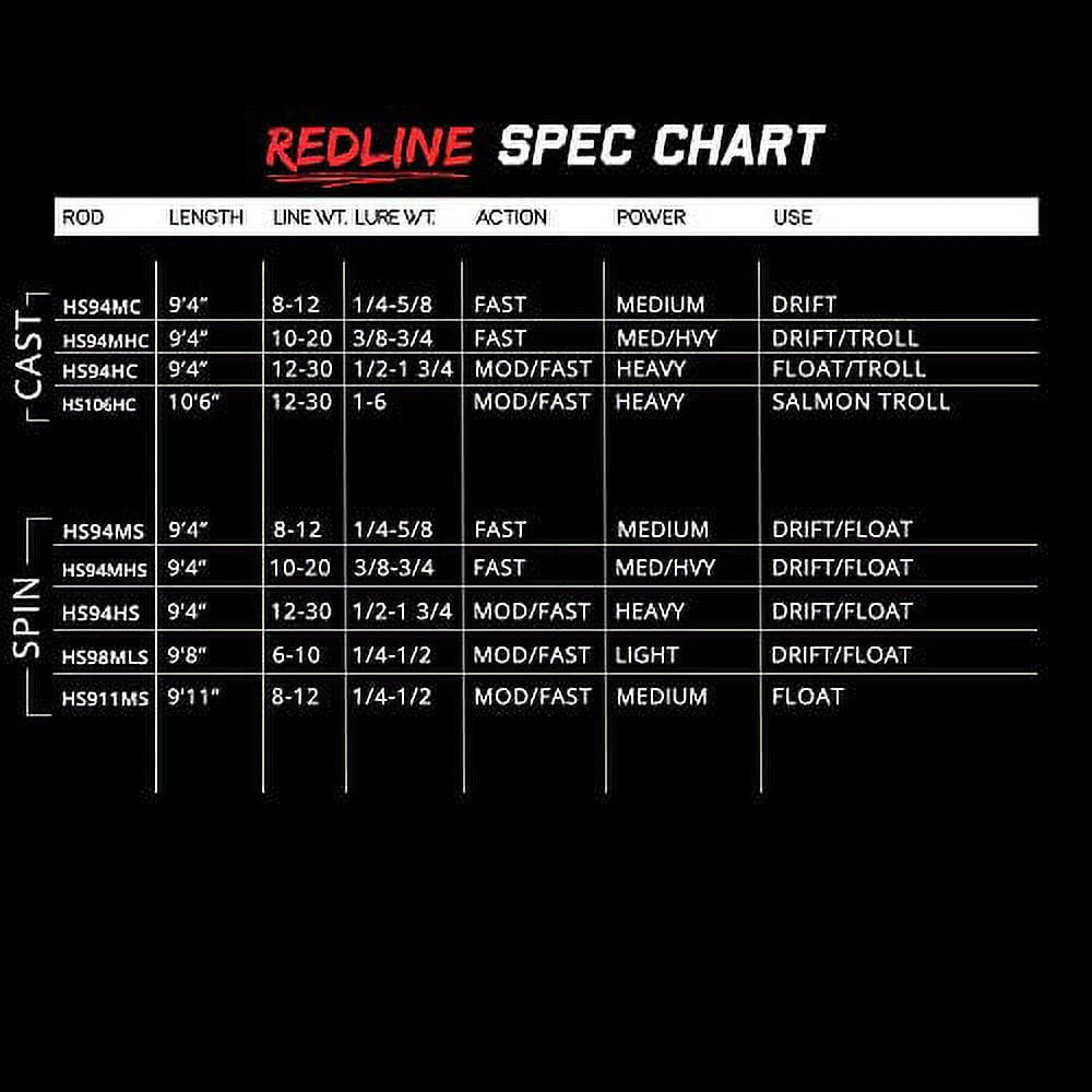 Lamiglas Redline HS Series: Made using a new production technique and graphite interlace system Constructed of high-end graphite materials and resins Versatile actions cover several different fishing techniques Composite graphite handle boasts extreme strength and durability
