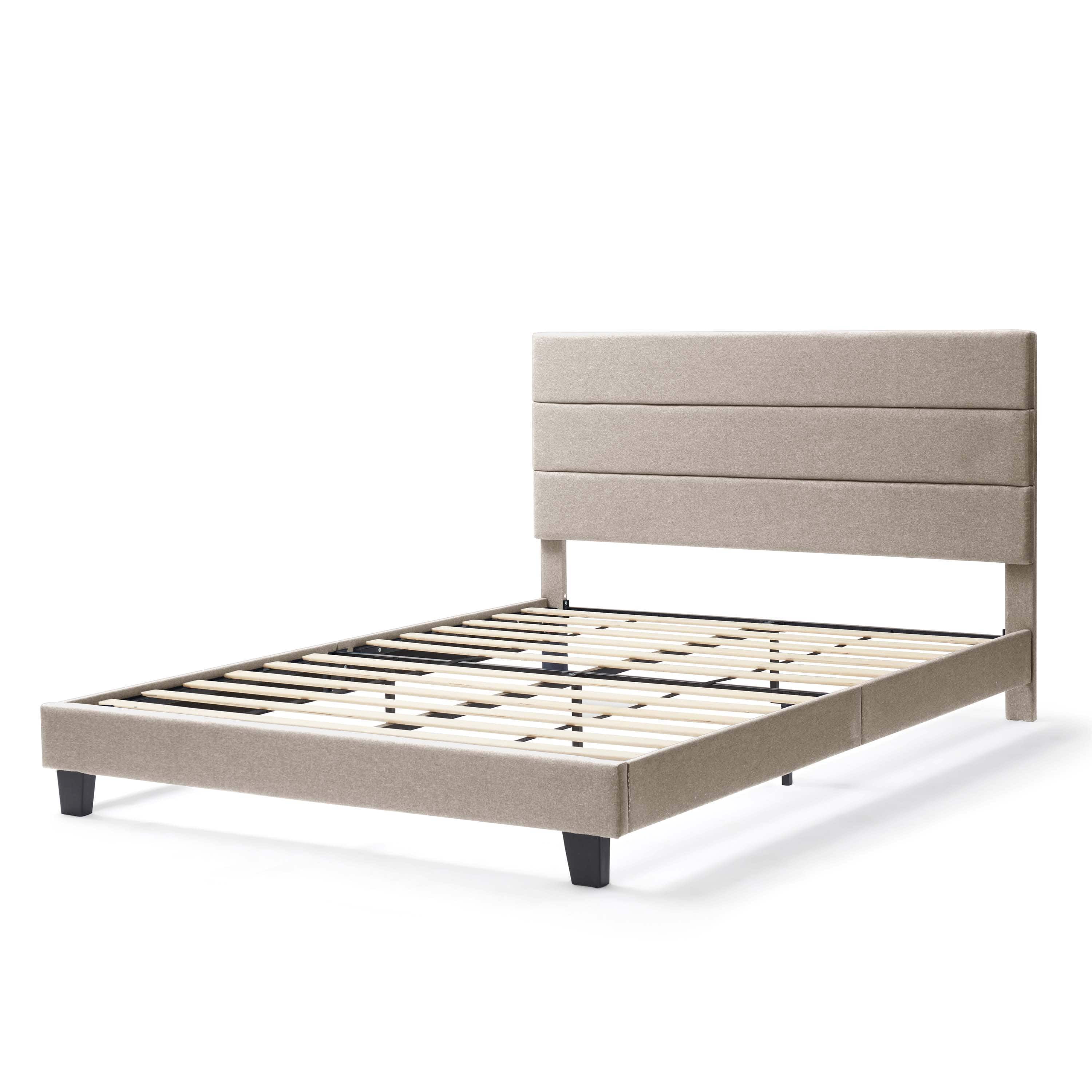 Lammaloe Full Size Platform Bed Frame with Horizontal Channel Upholstered Headboard, Beige, Full