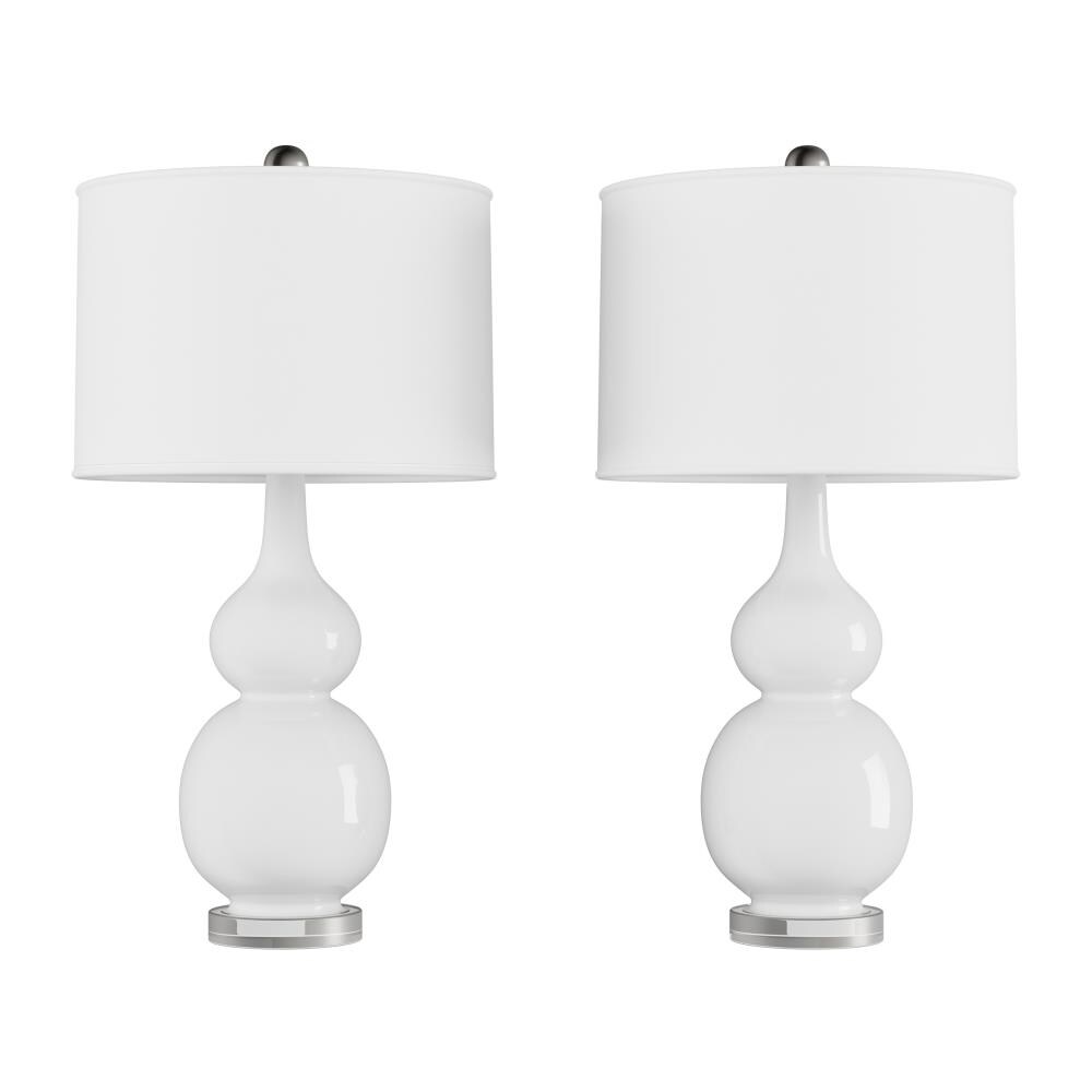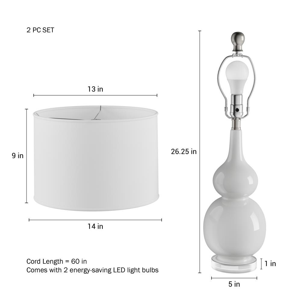 This set of Vintage Gourd Ceramic LED Lamps from Hastings Home illuminates your space while adding a touch of elegance to your home, Designed with a double gourd shaped ceramic body finished in a milky white and a clear acrylic base, these beautiful lamps are paired with ivory drum shaped fabric shades for a blend of modern and vintage style perfect for your living room, entryway, bedroom, or office, Each lamp comes with an energy-efficient 9W 805 lumens LED bulb that will brighten your room for 25,000 hours before needing to be replaced,