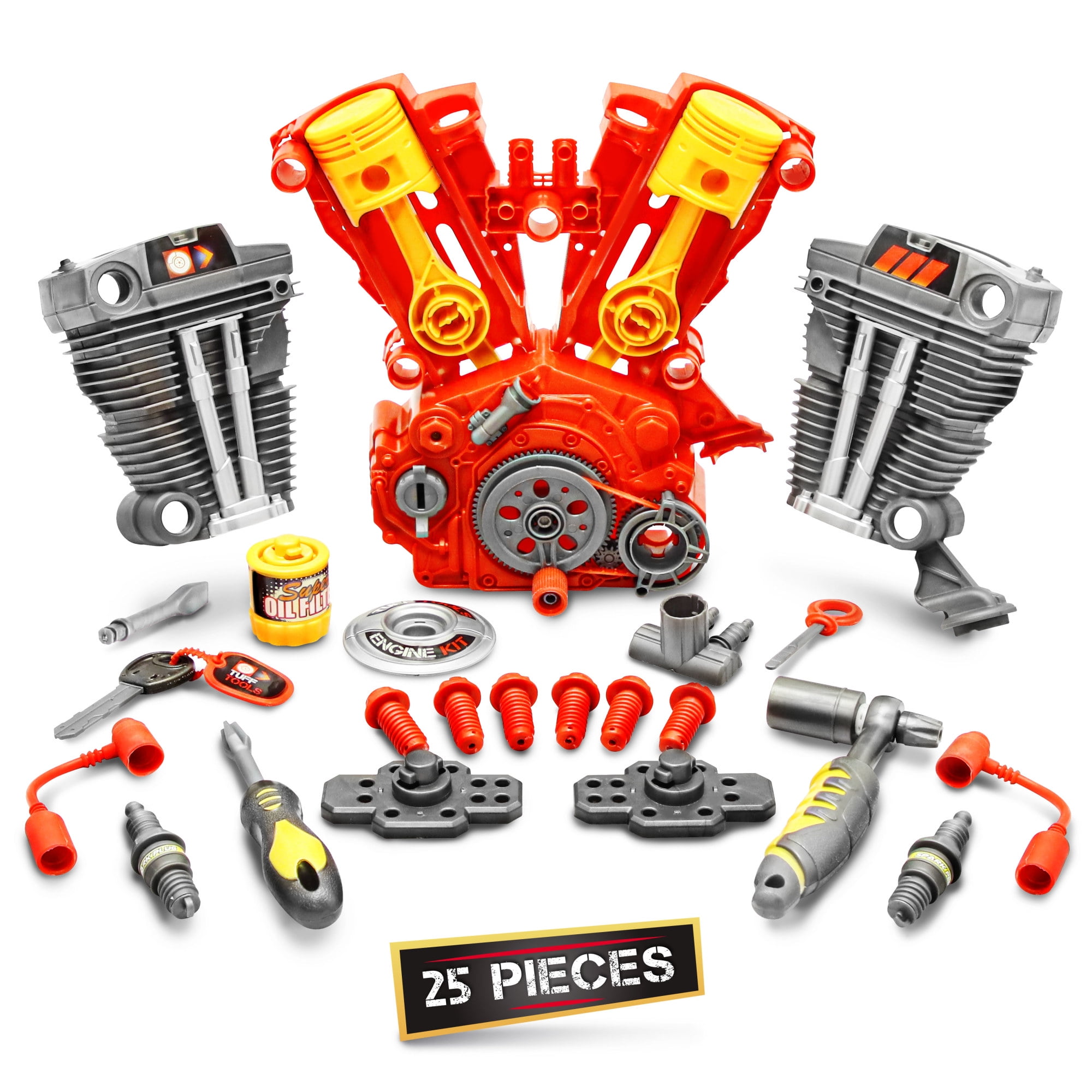 Lanard Tuff Tools: Engine Overhaul – 25 pc Playset, Lights & Sounds, Motorcycle Engine Building Set, Realistic Mechanic Toy, Kids Ages 3+