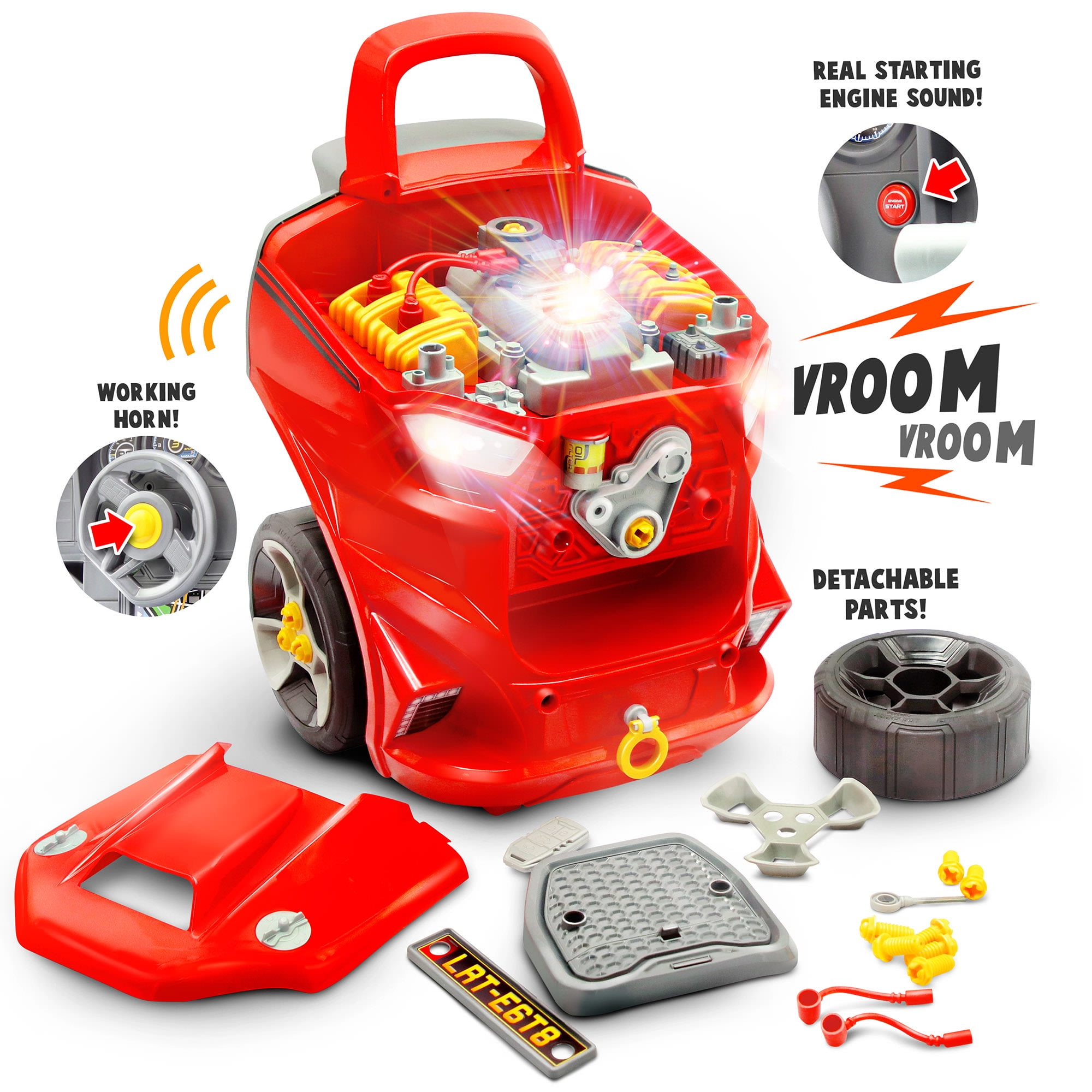 The Light and Sound Engine Overhaul will have your child feeling like a real mechanic. Take it apart and rebuild it! Realistic Lights and sounds. Lots of removable parts which include hood, front grill, wheels, tires and lots of engine parts. Rotating steering wheel, playable gear shifter and engine start button for driving action! Set includes tools and accessories (total 50 pieces included). Play right out of the box, requires 3 “AA” batteries (included). A color printed owner’s manual is included. Complete your tool kit with other Tuff Tools® toys and toy sets from Lanard®.