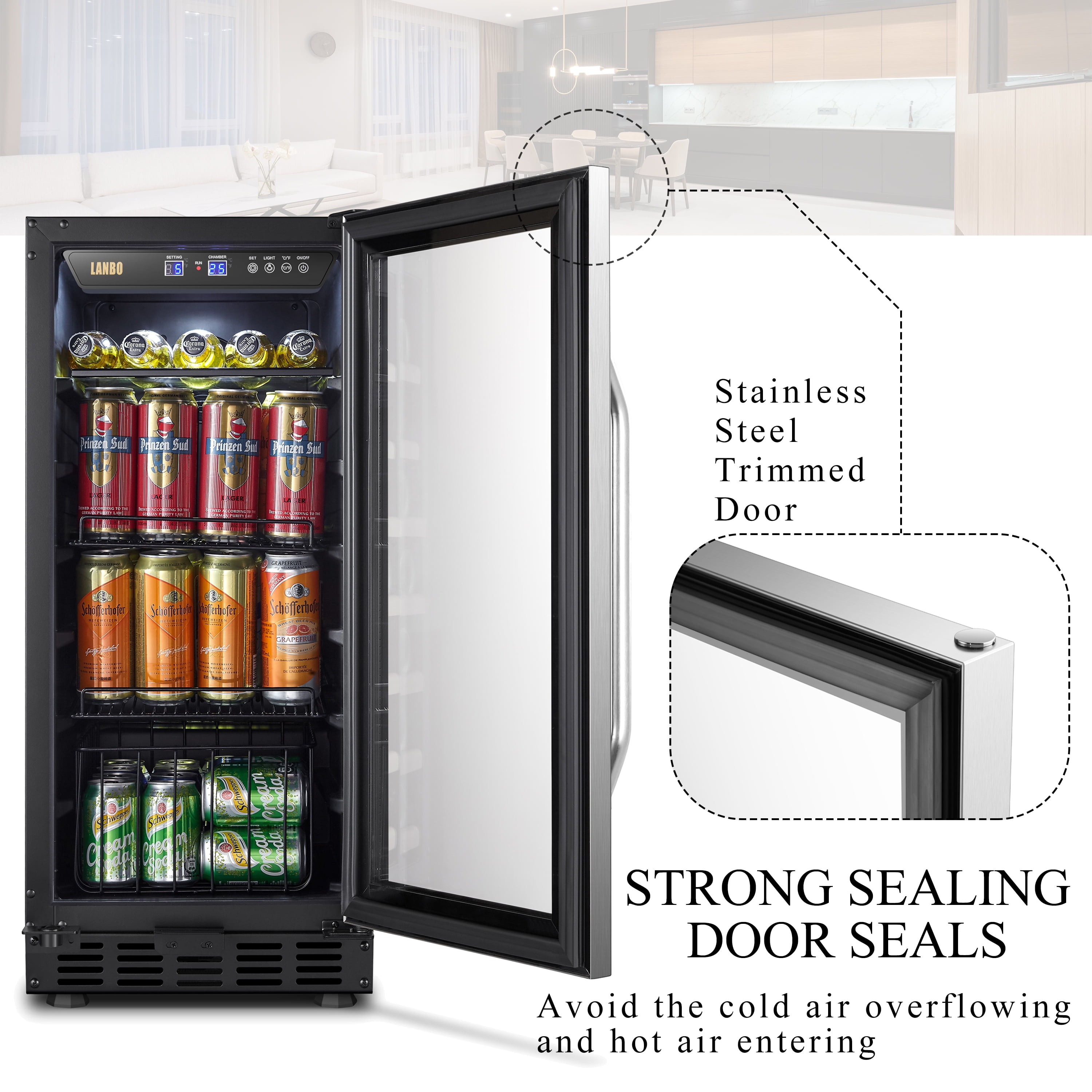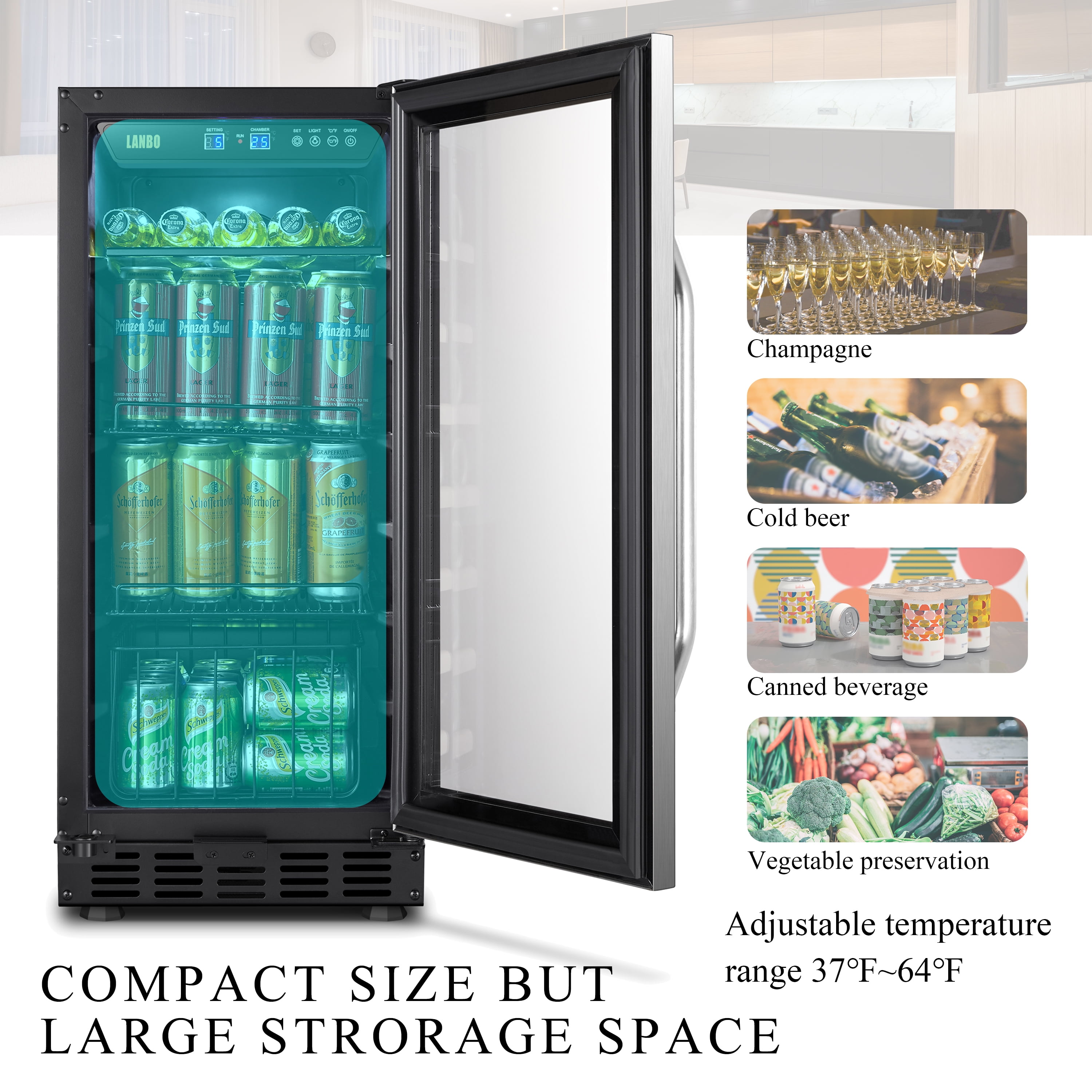 Lanbo 76 Cans Under Counter Compressor Beverage Cooler Refrigerator, 15 inch Width