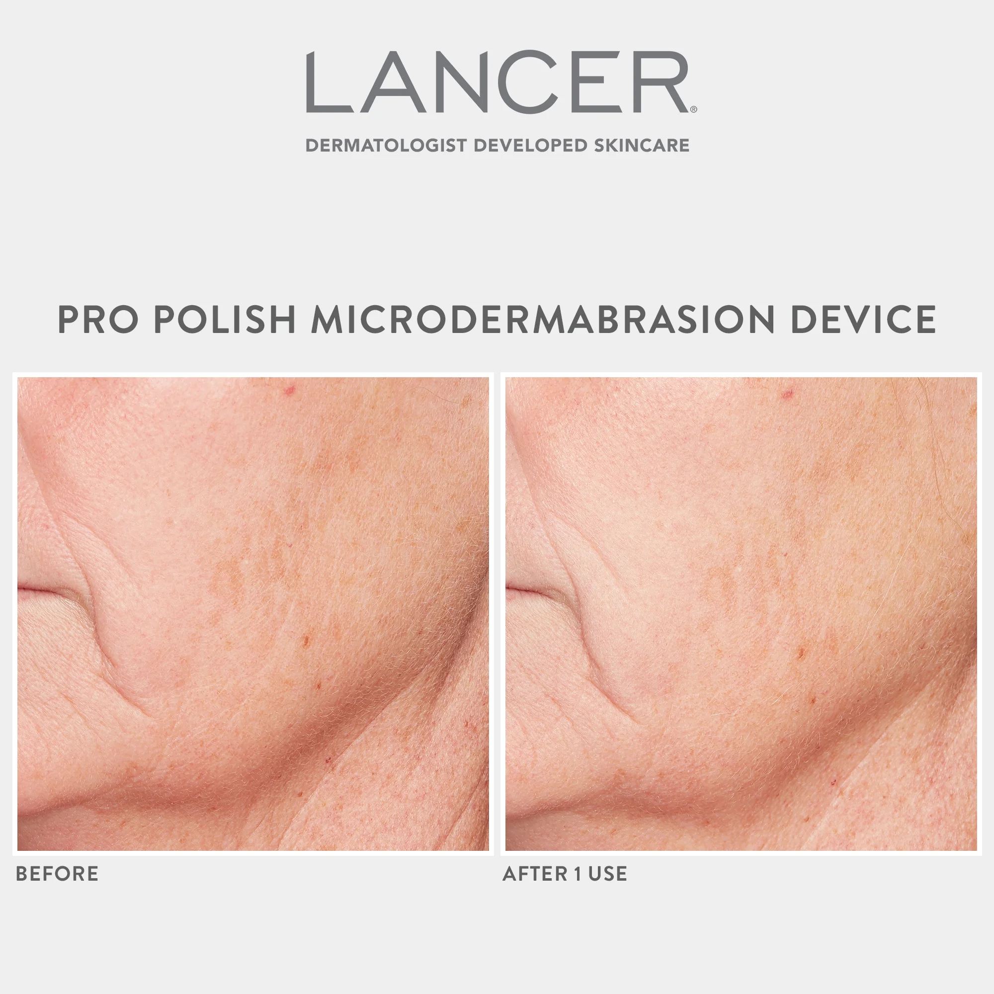 Lancer Pro Polish Diamond Face Tip Microdermabrasion Device Features + Benefits The very first device launched by Lancer Skincare allows you to experience optimal exfoliation for face and body Visible results are seen immediately after use The 3 speeds allow for varying degrees of intensity with little to no downtime The diamond tip heads are designed to effectively exfoliate dead skin cells while suctioning them immediately This item is part of BeautySpace NK, your destination for in-demand brands and future obsessions