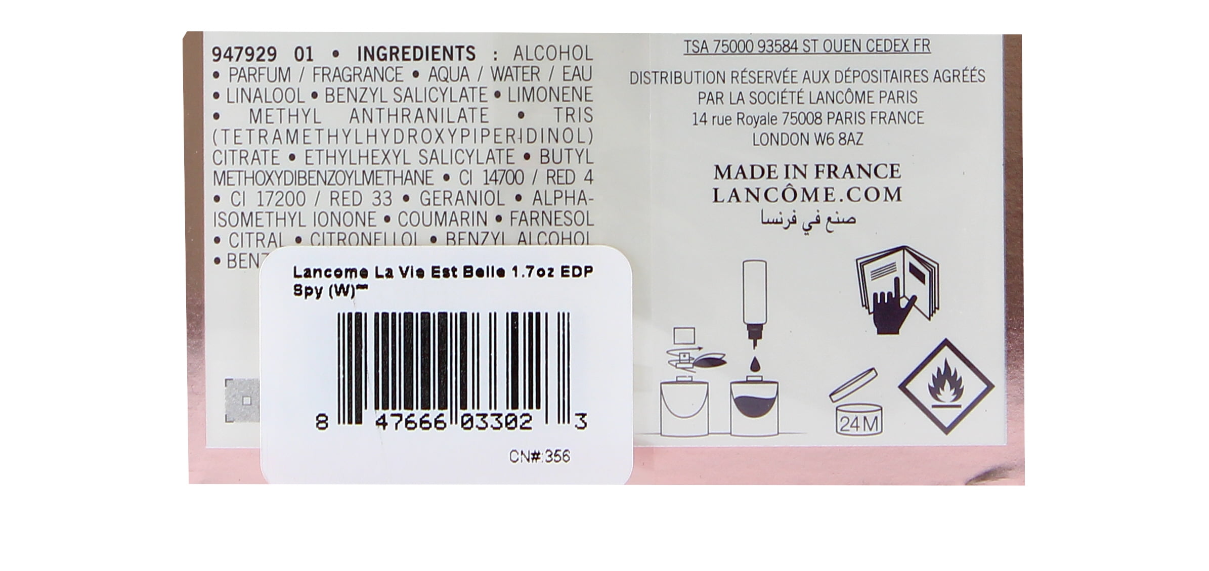 “Lancôme La Vie Est Belle 1.7 oz” Perfume for Women embodies the essence of joy, beauty, and freedom in a bottle. This iconic fragrance celebrates life’s precious moments with its enchanting blend of sweet and floral notes. Opening with a burst of succulent pear and blackcurrant, it unfolds into a heart of jasmine, iris, and orange blossom, creating a delicate and feminine bouquet. The base notes of patchouli, praline, and vanilla add warmth and depth, leaving a lasting impression that captivates the senses. Vibrant earthy patchouli, sustainably sourced in Bali and Wrapped in its signature crystal smile bottle, “La Vie Est Belle” Perfume for Women is more than just a fragrance; it’s a declaration of happiness and self-expression. Whether worn for everyday indulgence or special occasions, this scent is a reminder to embrace the beauty of life and cherish every moment. Let it become your signature scent, radiating positivity and confidence wherever you go. Ingredients: Alcohol, Fragrance, Water, Linalool, Benzyl Salicylate, Limonene, Methyl Anthranilate, Tris (Tetramethylhydroxypiperidinol) Citrate, Ethylhexyl Methoxycinnamate, Butyl Methoxydibenzoylmethane, Bht, CI 14700 (Red 4), CI 17200 (Red 33), Geraniol, Alpha-Isomethyl Ionone, Coumarin, Farnesol, Citral, Citronellol, Benzyl Alcohol, Benzyl Benzoate.