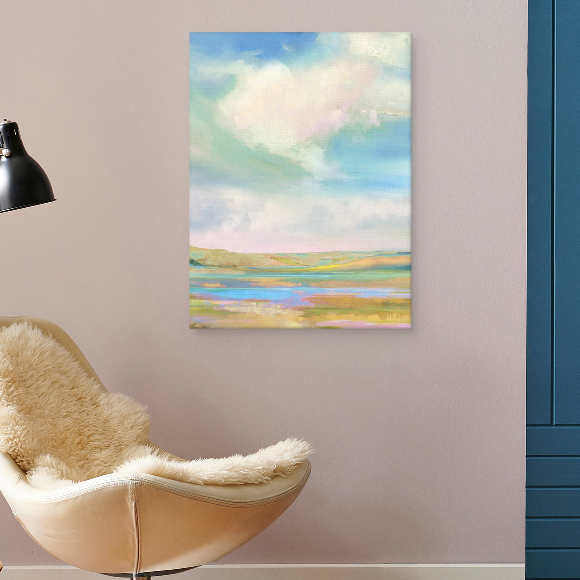 A pastel sky overlooks a brightly colored landscape, in this semi-abstract print. If you’re looking to enliven your living space with a stunning bounty of light, display this piece in your bedroom, living room, or bathroom to immediately transport your atmosphere to a heavenly place. Your family and friends will thank you for it. The rich color saturation and careful blending that characterize this piece demonstrates the exceptional printing technology used on state-of-the-art canvas. Additionally, since the print wraps around the expanse of the canvas, there is no need for framing. This makes installation incredibly simple. Just use an easy installation method, such as a hammer and nails, go get your new painting on your wall as soon as it gets to your door.