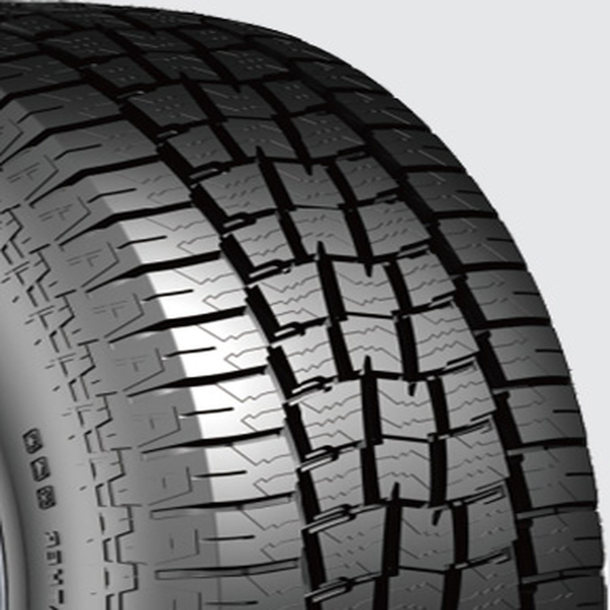 All-terrain, all-season tire made for use on pickups Four wide irregular grooves resist hydroplaning by draining water away from contact patch Bigger staggered tread elements and durable compound increase grip on soft, loose, and uneven surfaces Strong shoulder block for noise reduction, confident cornering and lateral traction Symmetric tread pattern and all-season compound boost traction in dry, wet, and light winter conditions Irregular sipes and tread blocks ensure traction on or off road Strong shoulder blocks enhance cornering and maneuvering abilities Available in a wide range of sizes for various fitments Reinforced construction increases load-carrying capacity and absorbs off-roading pressures Rim/Wheel is not included with purchase Size: LT265/60R20 Load Range: E Product May Vary From Picture Wheel/Rim Not Included