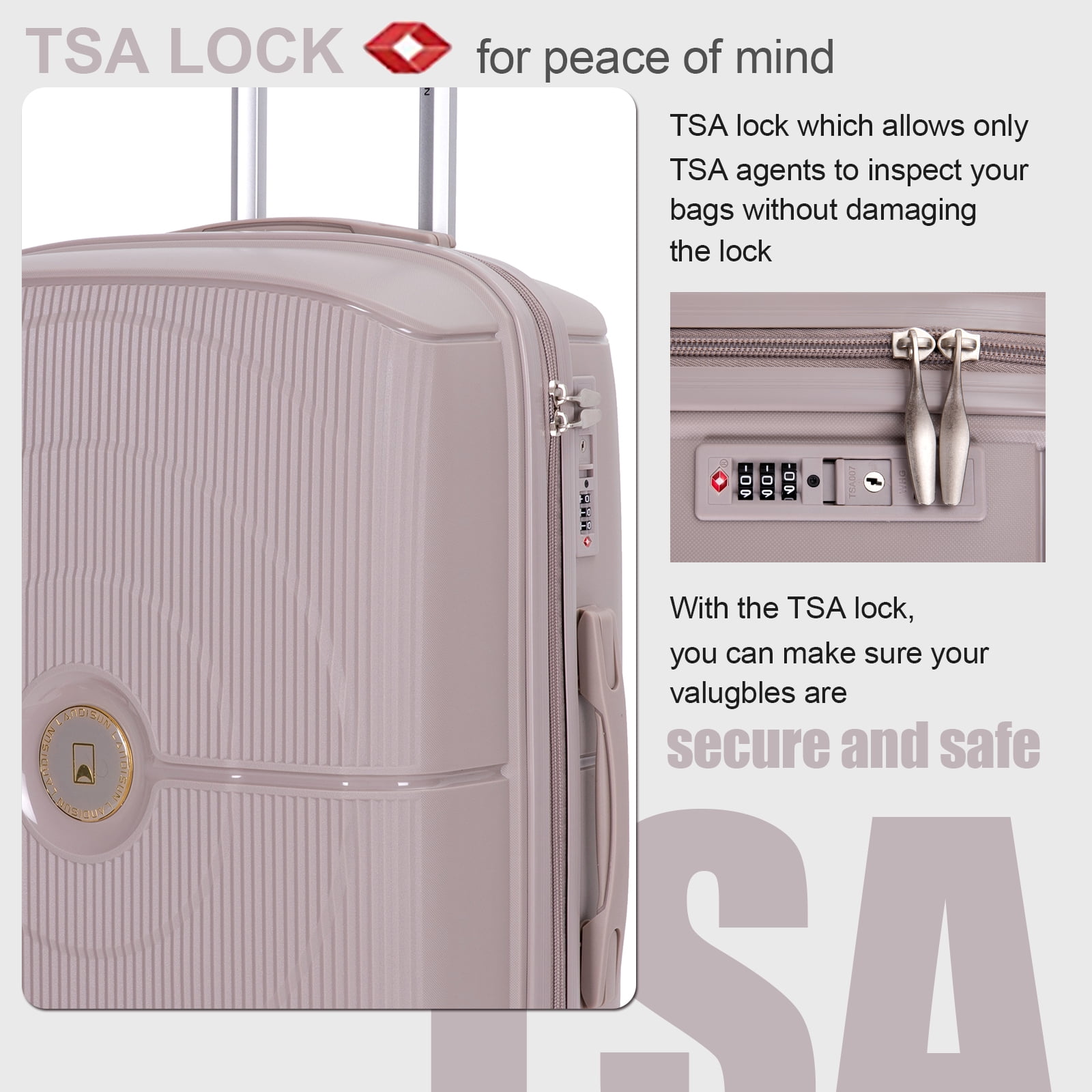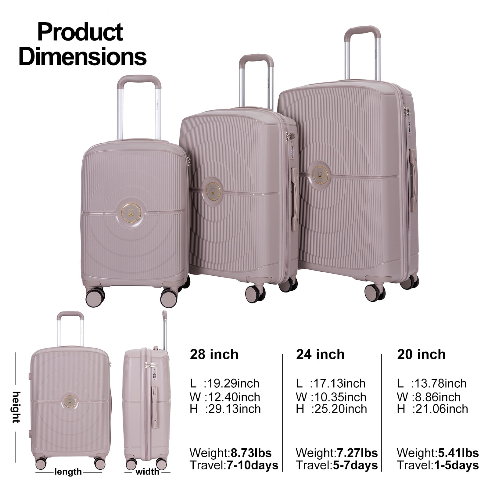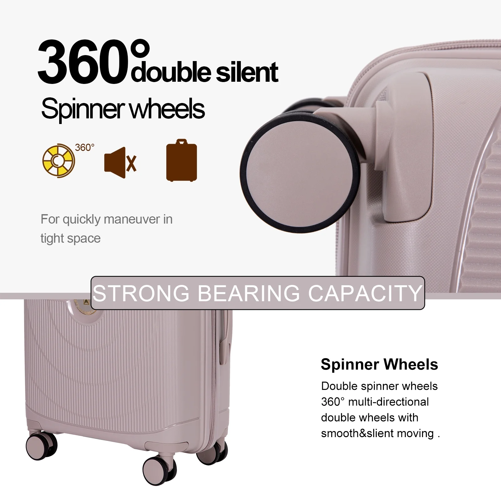 Landisun Luggage Sets 3 Piece, Hard Shell Suitcase Set with Double Spinner Wheels TSA Lock Carry on and Checked Travel Luggage, Greige