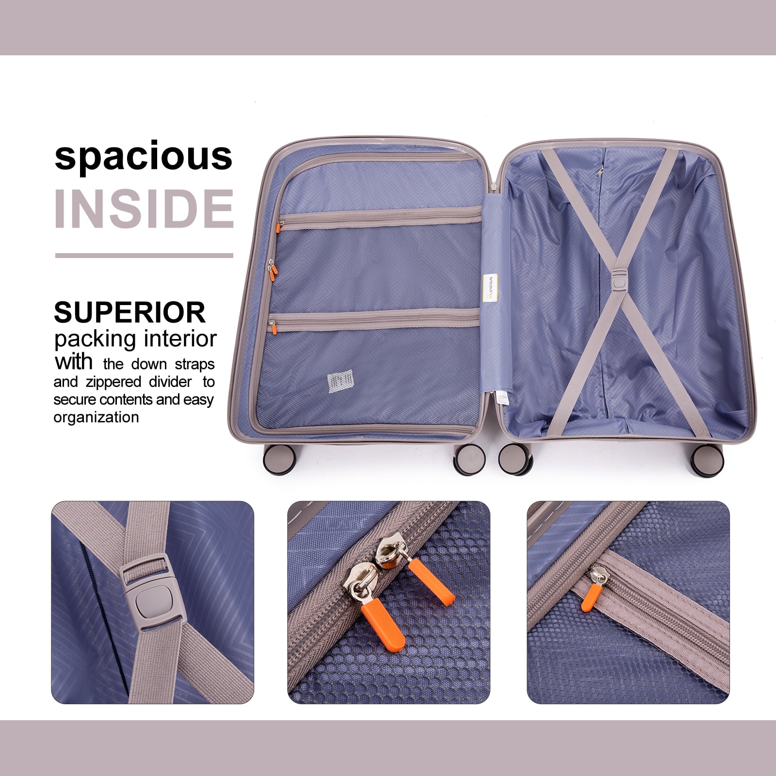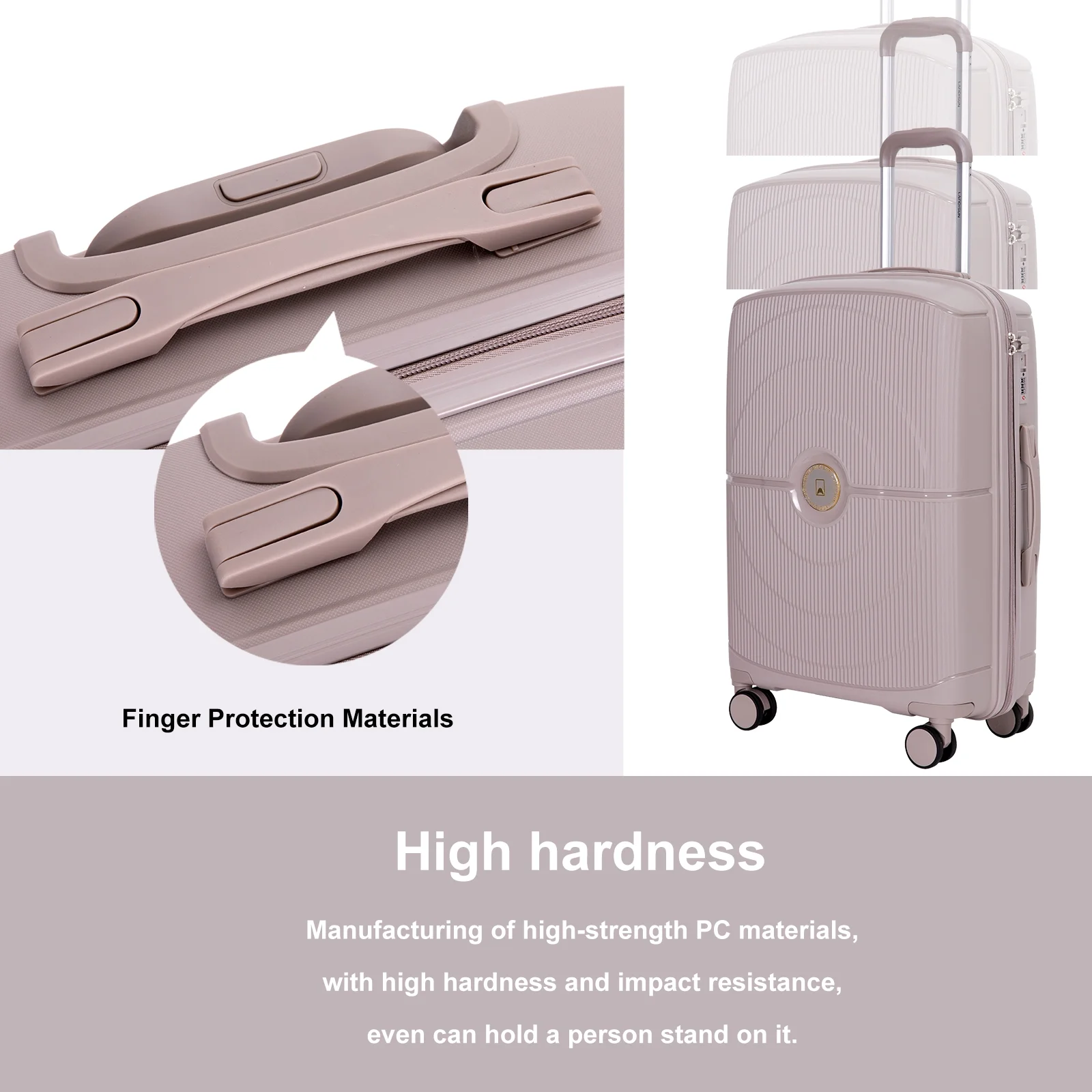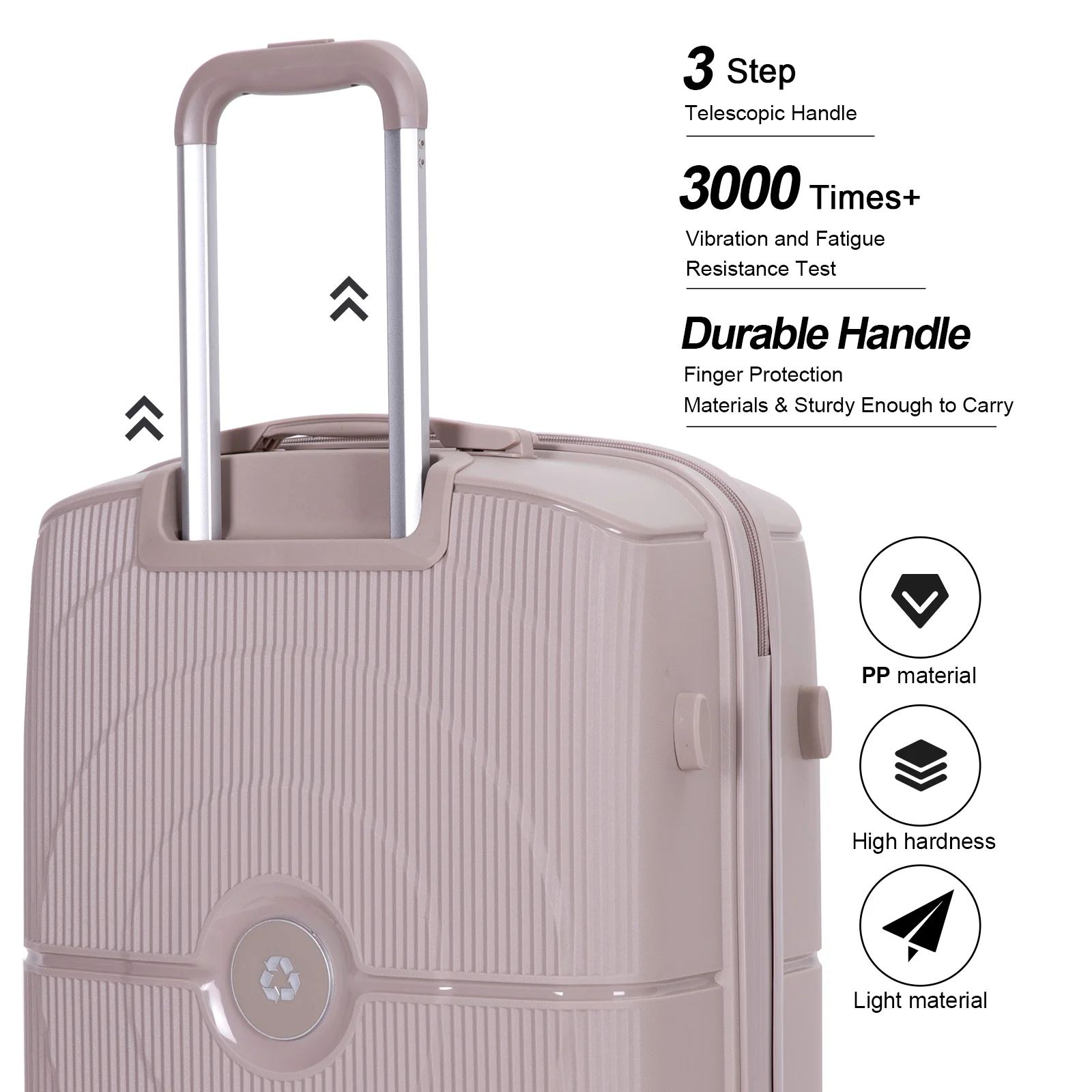 Landisun Luggage Sets 3 Piece, Hard Shell Suitcase Set with Double Spinner Wheels TSA Lock Carry on and Checked Travel Luggage, Greige