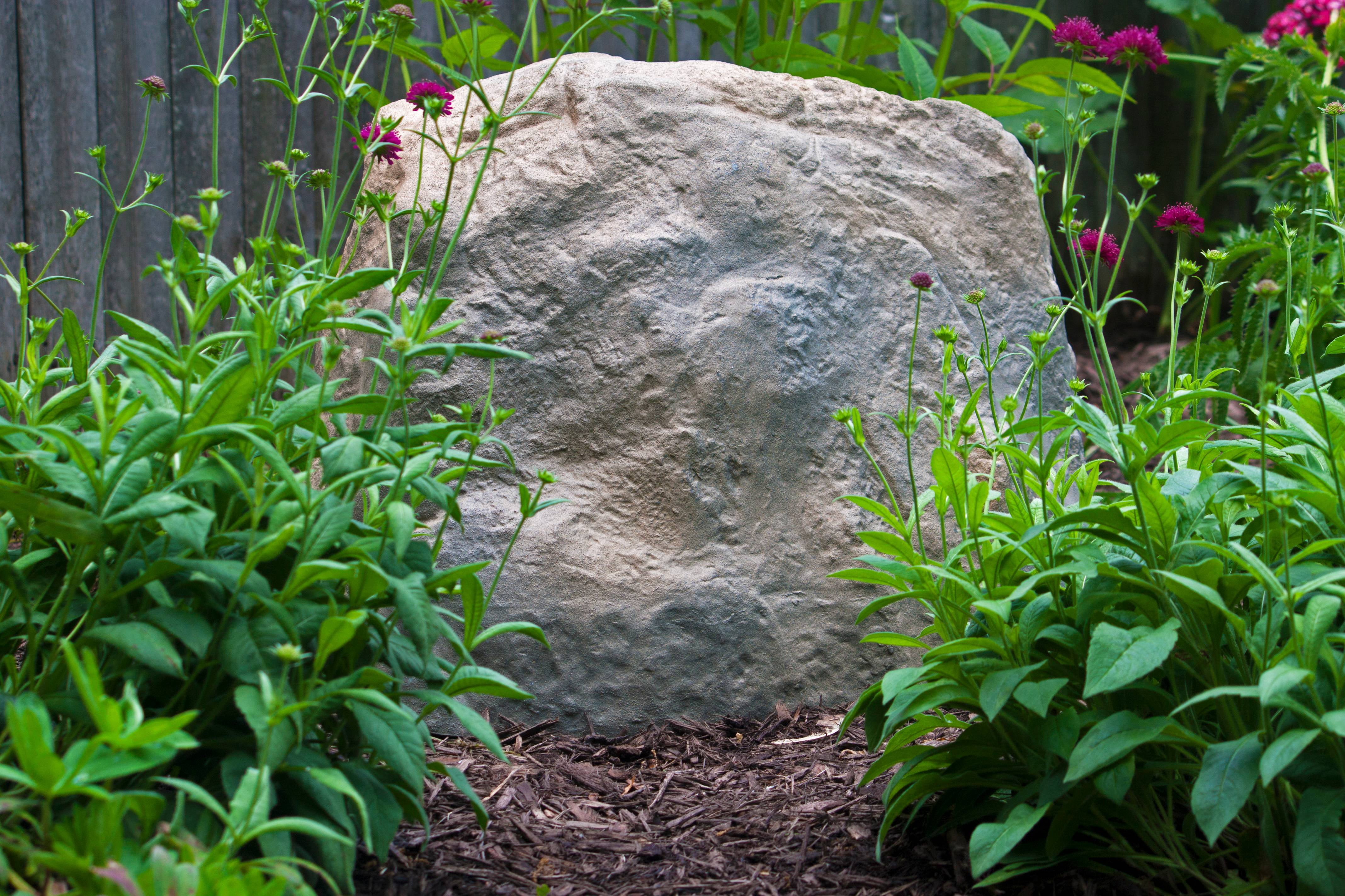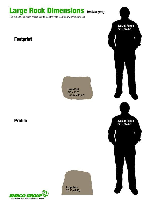 GREAT ALL PURPOSE FAKE ROCK – The rock’s overall dimensions are of 14.75″ x 19.5″ x 14.5″(height x length x width). Please keep in mind that the rocks have an irregular shape and are tapered. To determine the best size for your application, please review the rock dimensions photo showing variations in both height and overall footprint. NATURAL TEXTURE AND APPEARANCE – This architectural rock has a natural appearance that blends great with gardens, lawns, and landscapes! Due to variances in screen calibrations and manufacturing process, coloration may vary. WITHSTANDS EXTREME WEATHER CONDITIONS – This artificial rock is able to withstand extreme weather conditions and comes with two stakes to anchor into the ground. COVERS UP LANDSCAPE UTILITIES – The rock can be placed over wells, pipes, sprinkler valves, and other fixtures to block them from sight, thus enhancing the landscape’s natural beauty. OTHER ARCHITECTURAL ROCKS AVAILABLE – EMSCO has a complete line of landscape rocks available. The rocks come in many different sizes, along with an assortment of detailed textured rocks.