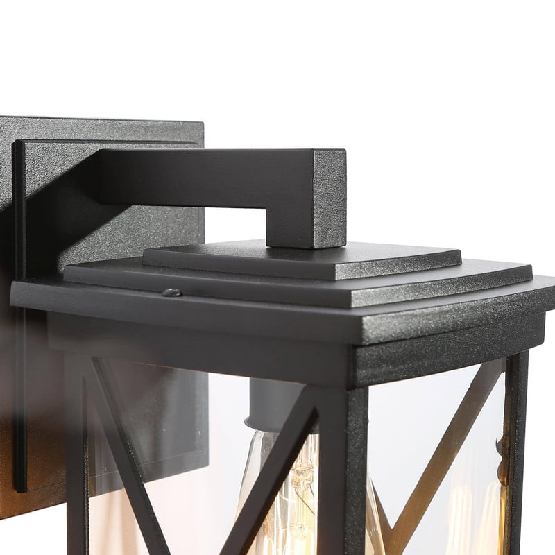 LNC 2-Pack Sandy Black Clear Glass Square Cage Outdoor Wall Lights