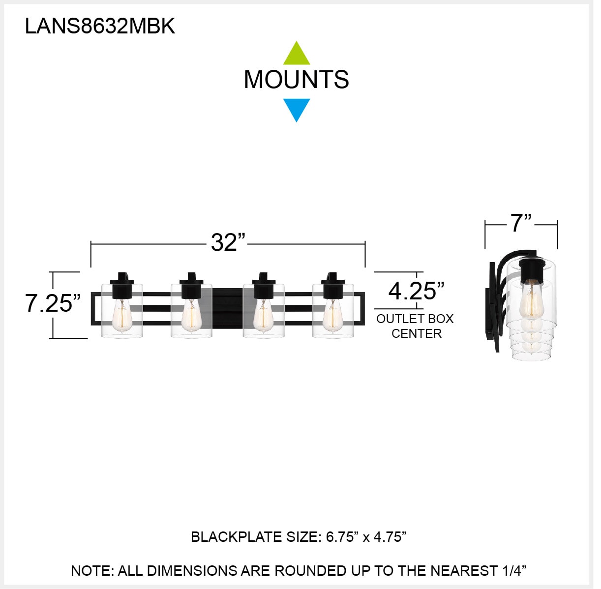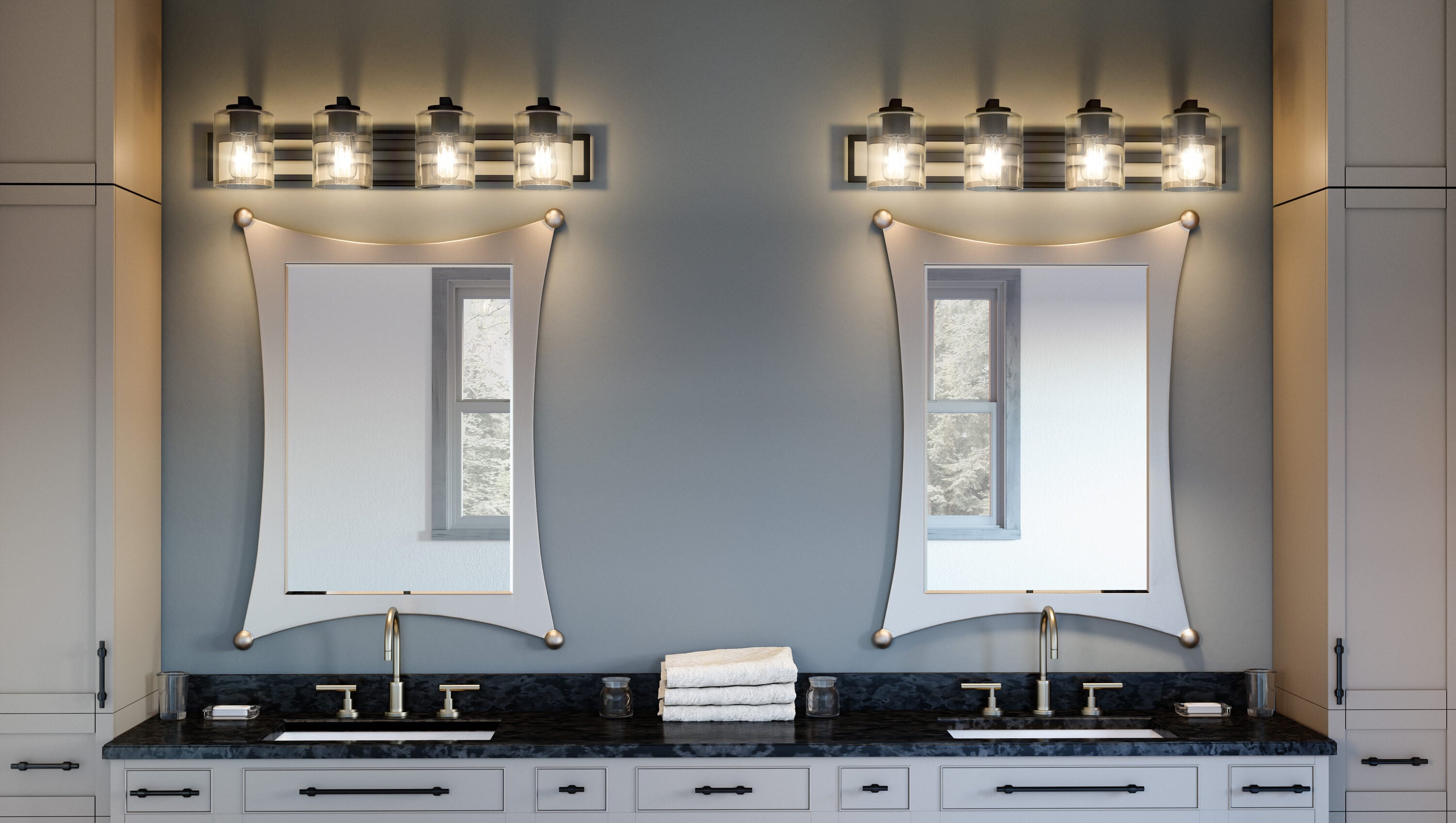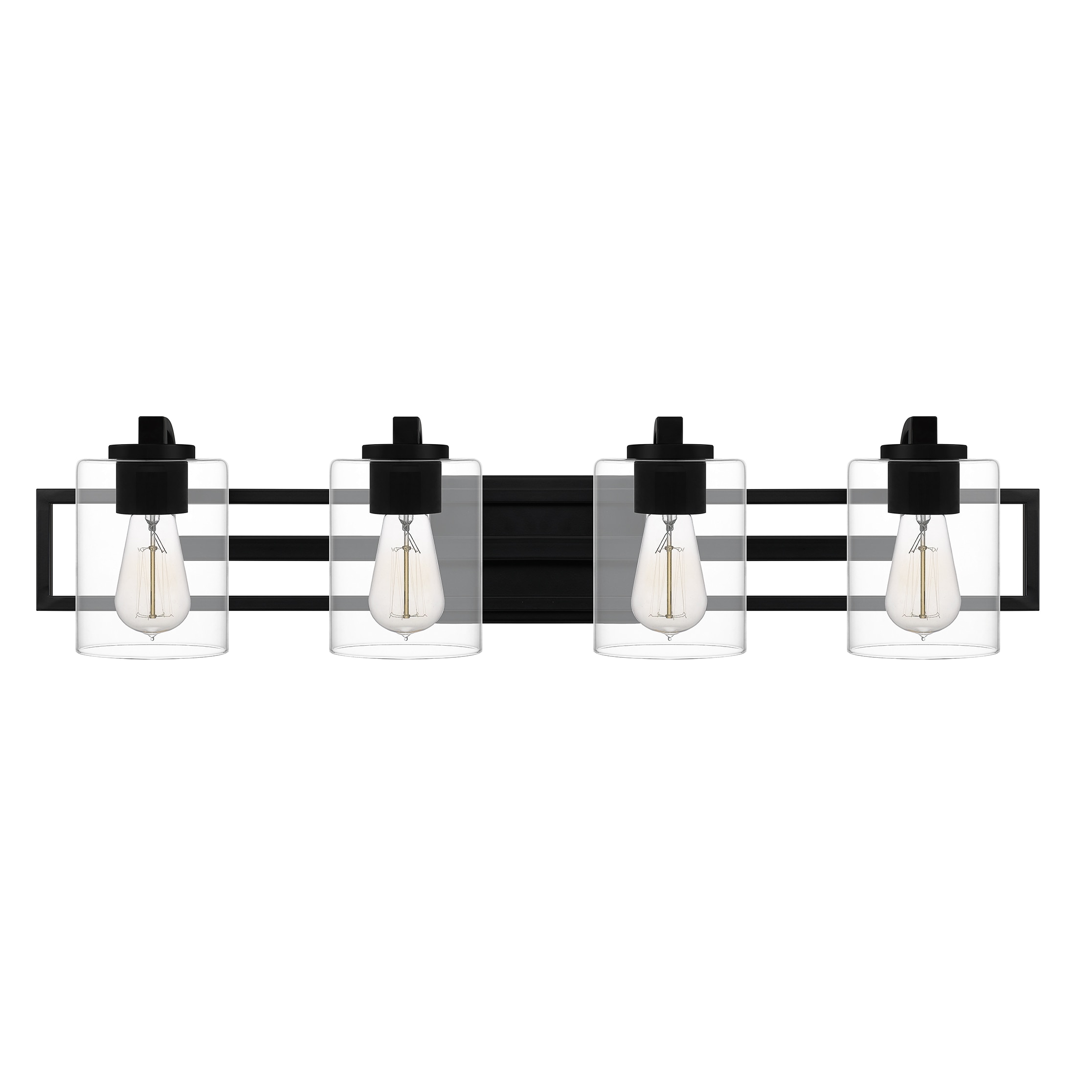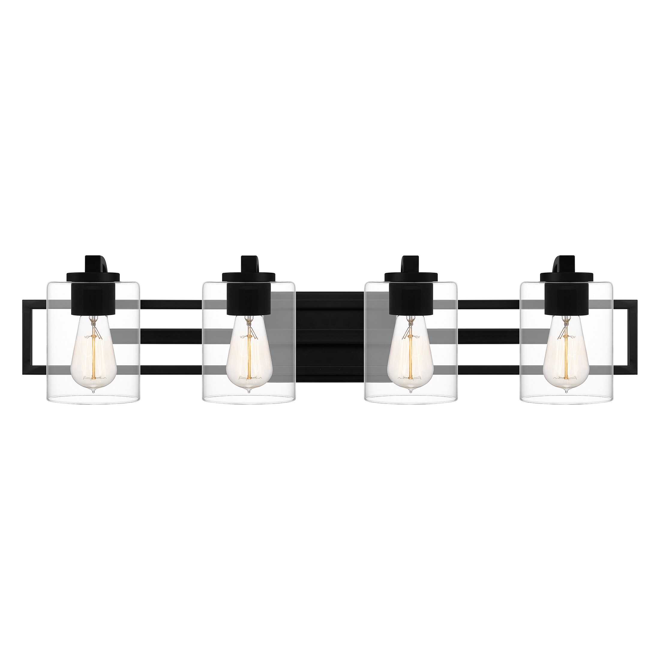 Pick your preference: The Landsdowne bath light can be configured up or down. With its striking shape and bold, matte black finish, the light complements sleek and modern bath spaces. Choose either three or four bulbs, depending on your lighting needs.