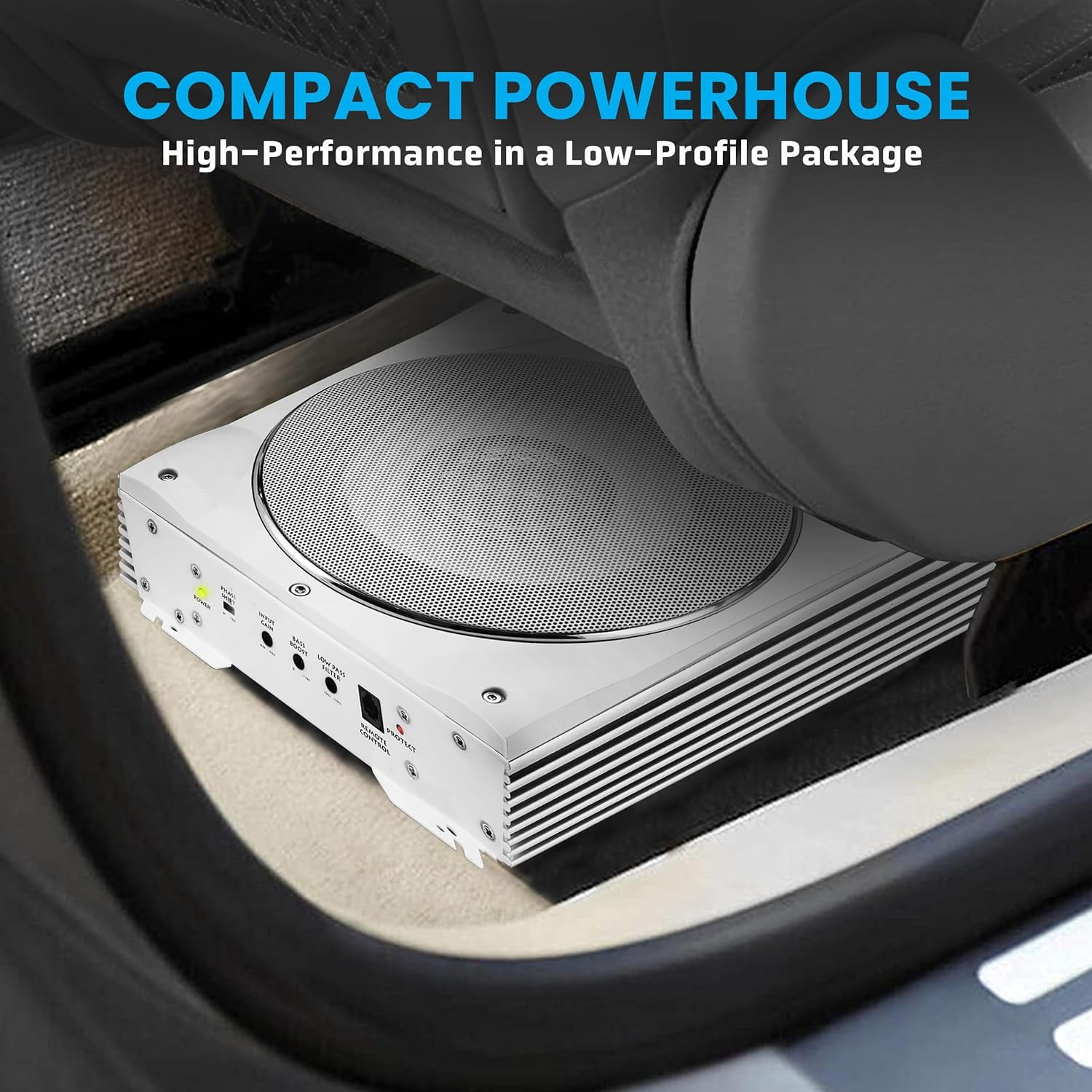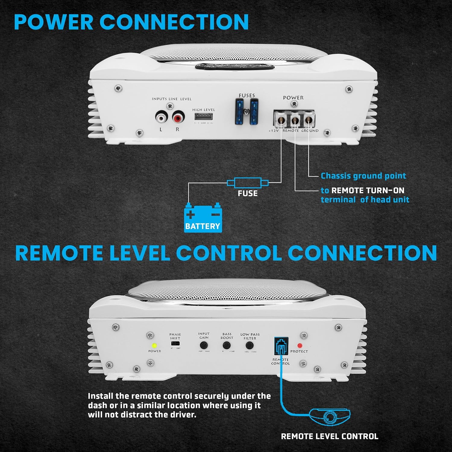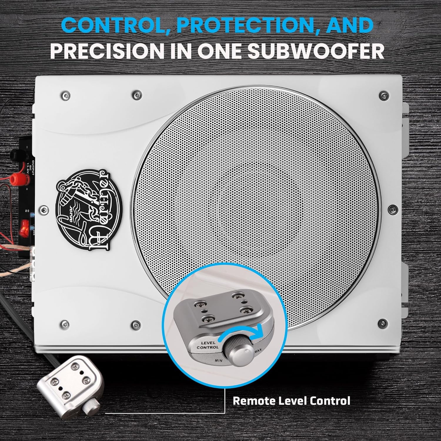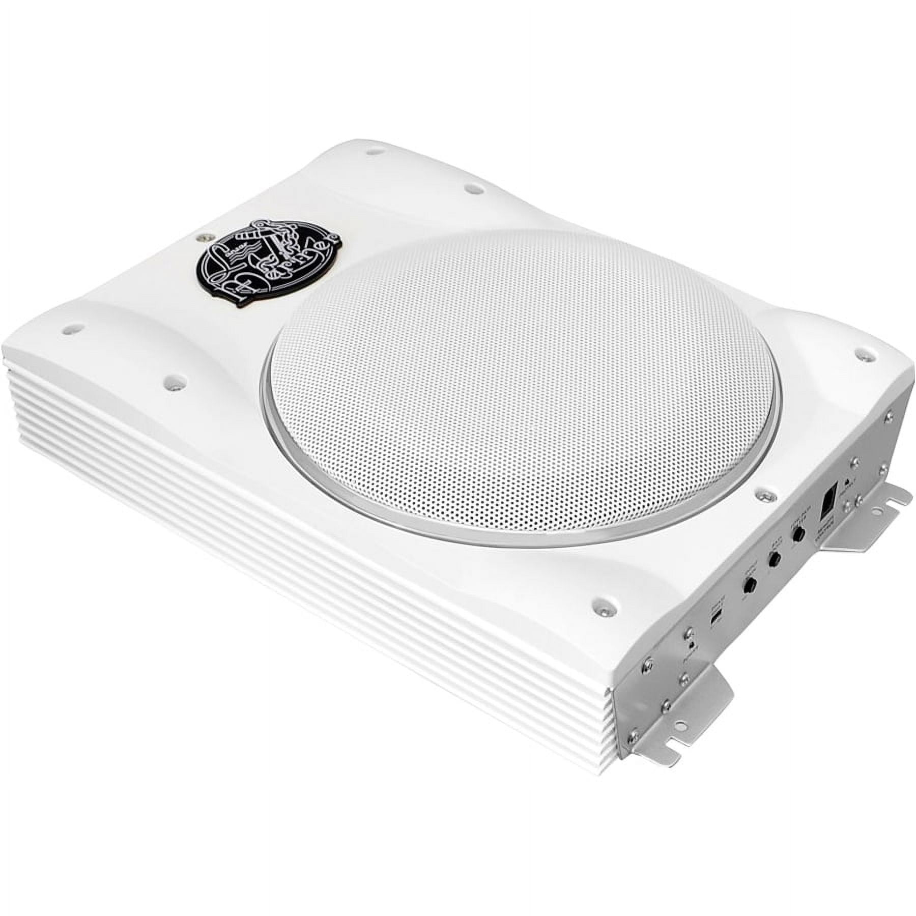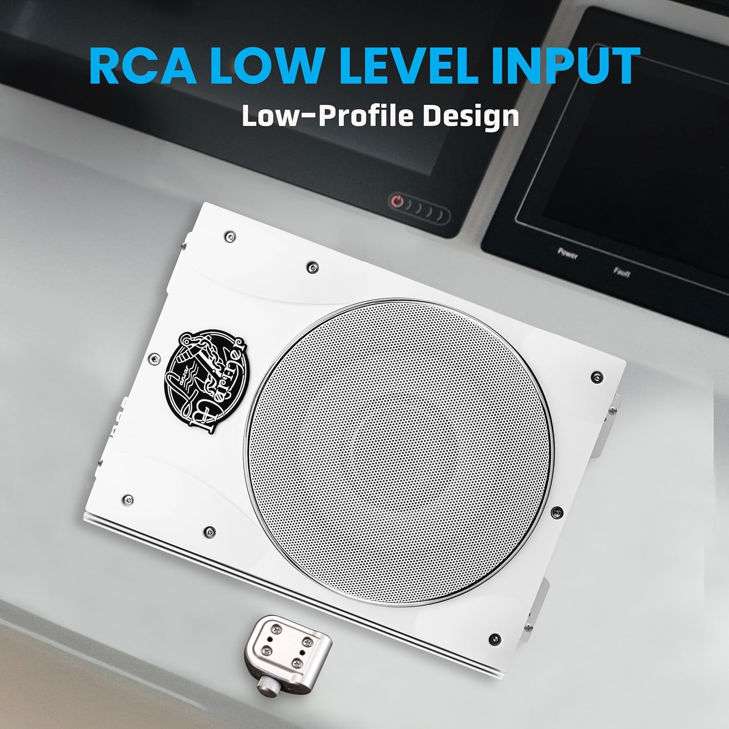 Lanzar Waterproof 1000W Slim Marine Subwoofer, 3 in, White Low profile design perfect for applications where space is limited, allowing for easy mounting under the seat in your boat Marine coating and waterresistance keep rust out and ensure uninterrupted music playback Soft turnon/off feature prevents damage to your speakers during power on and off Rigid and resilient body features pearl white and chrome accents for a clean, streamlined, and hightech professional appearance Nickelplated RCA speaker connection and screw terminals ensure a highquality connection between the amplifier and speakers Color: White