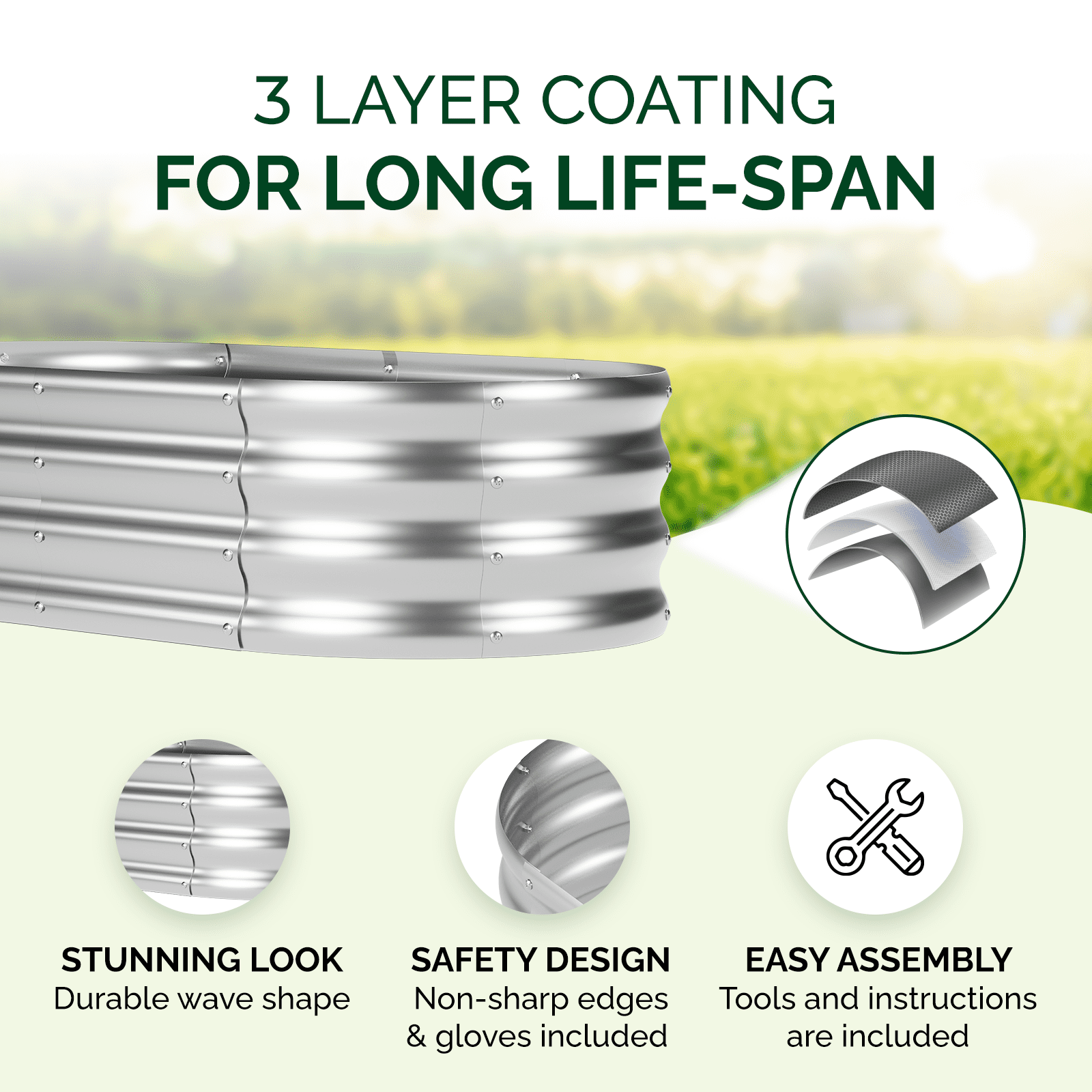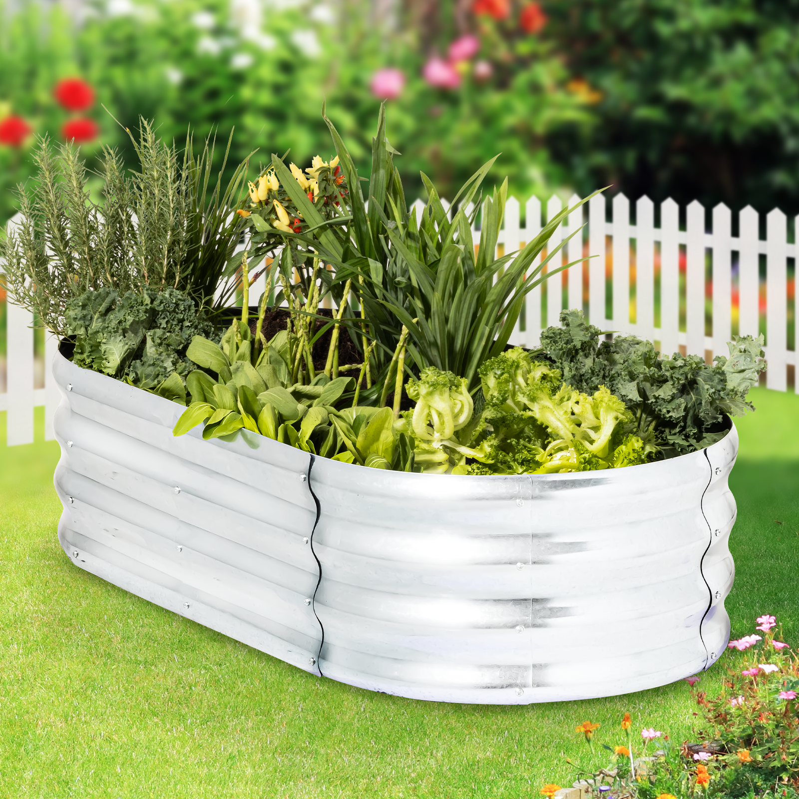 Large Oval Metal Raised Garden Bed Kit – Durable Silver – 3 Zinc Coating – 24″D x 48″W x 12″H
