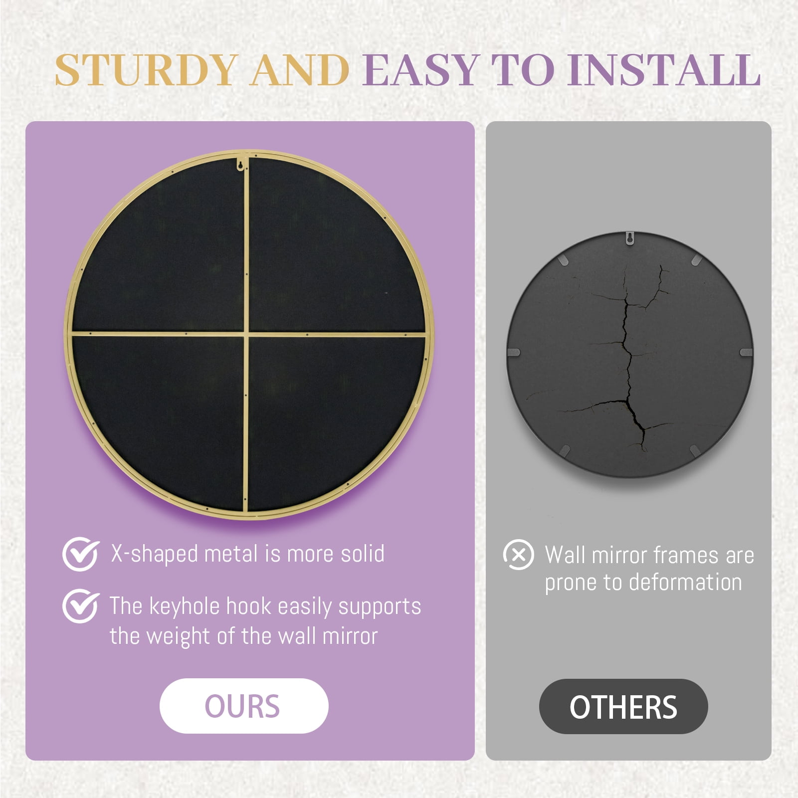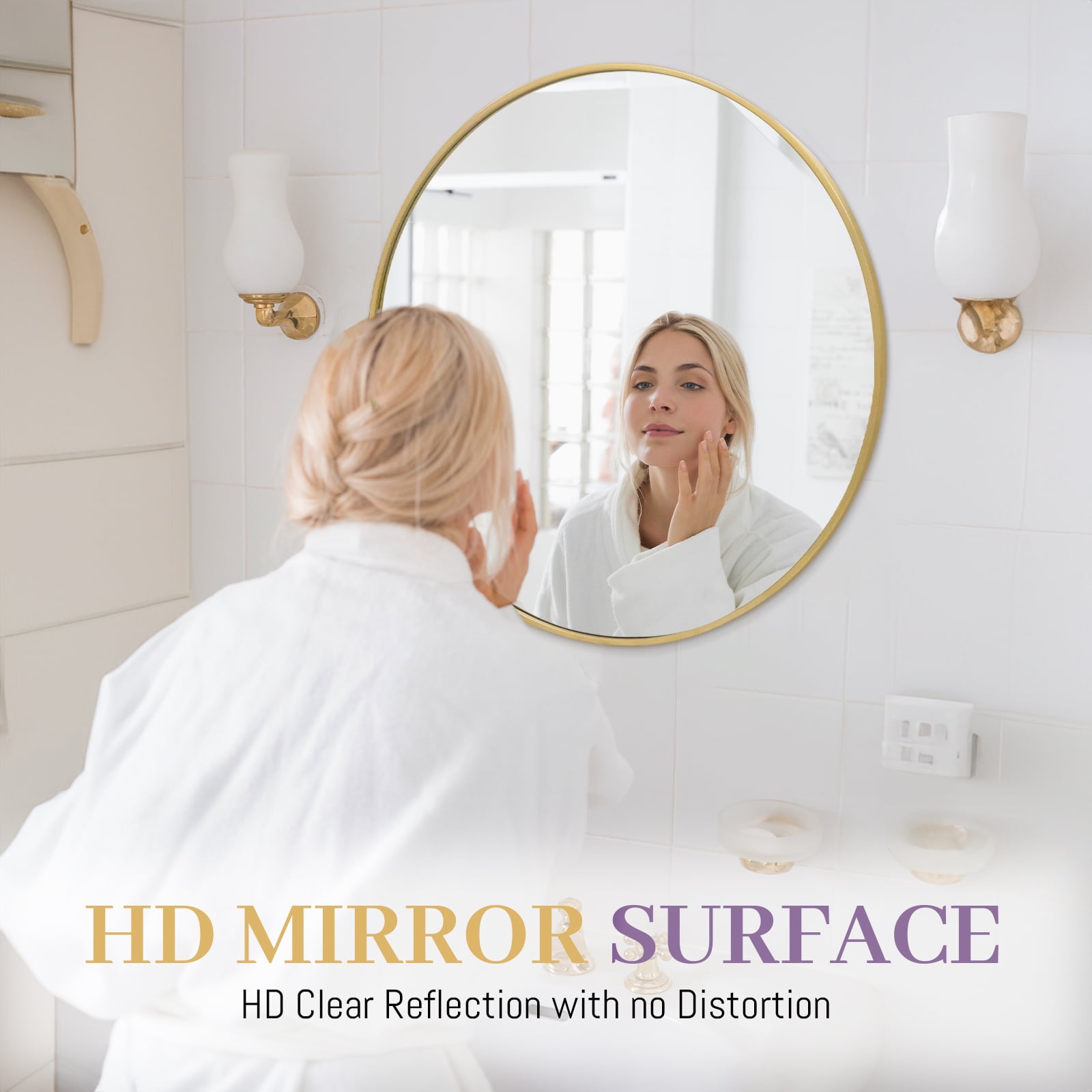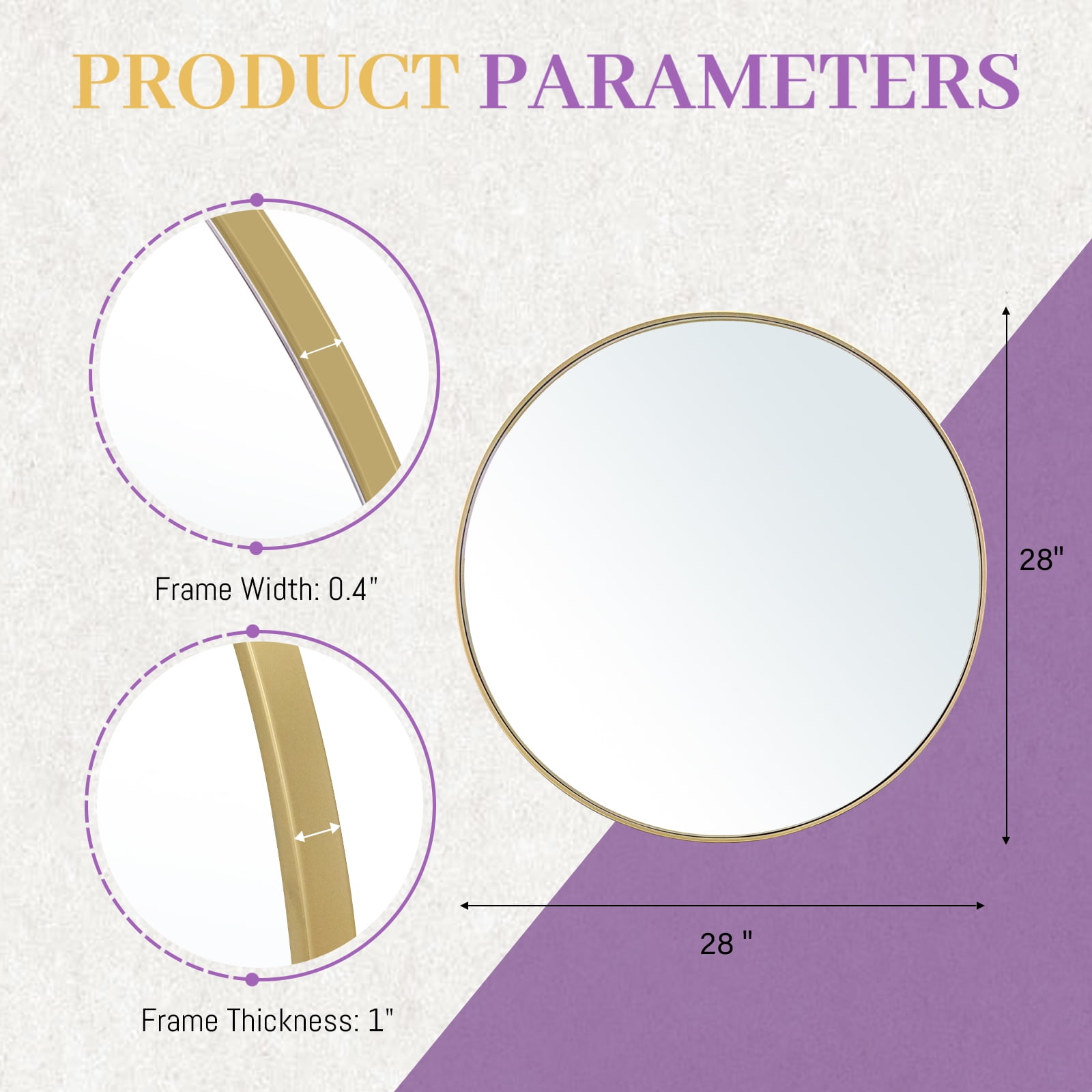 Large Round Mirror Shatterproof: Our 28 inch round mirror has an explosion-proof film on the mirror back. It will protect people from being hurt when the mirror breaks. Large Round Mirror High-Definition: Our round mirror is made by precise and professional silver coated technology which can present a clear and real image. Large Round Mirror Metal Frame: The metal frame is made of gold brushed aluminum alloy. It’s not only beautiful and sturdy, but also waterproof and rustproof. The large round mirrors are perfect for living room, bathroom, bedroom, dining room, entryway, rustic, vanity, etc. Round Mirror Sturdy: The back also made a special design, the back can fit the wall completely. The gold MDF board on the back, meanwhile, can make the whole frame more solid and durable. Easy To Install: The large round wall mirror can be installed easily. The hook is pre-installed and screws included. Worry-Free Purchase: Any defective with received mirrors will get a full refund or a free replacement. Any questions will be responded within 24 hours.