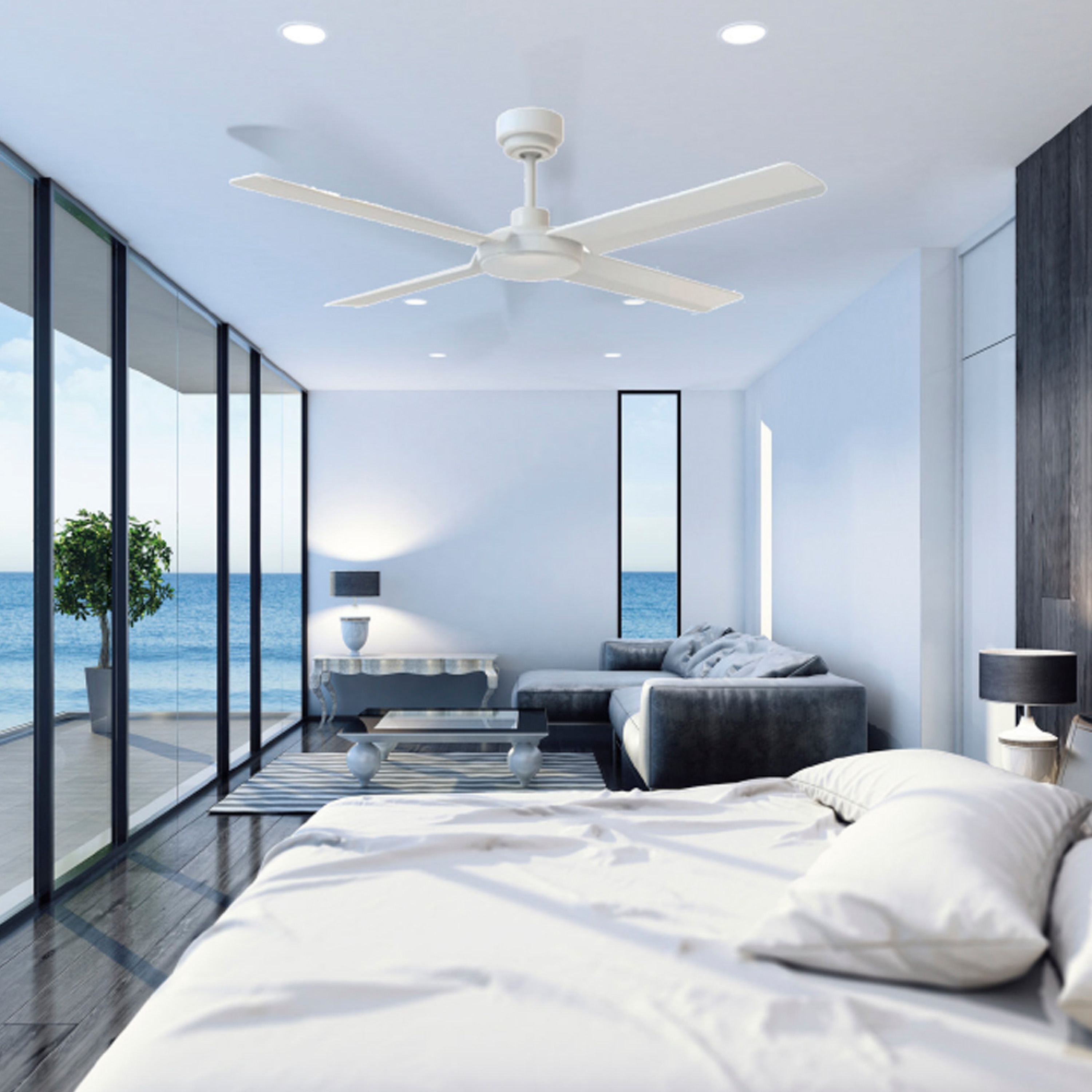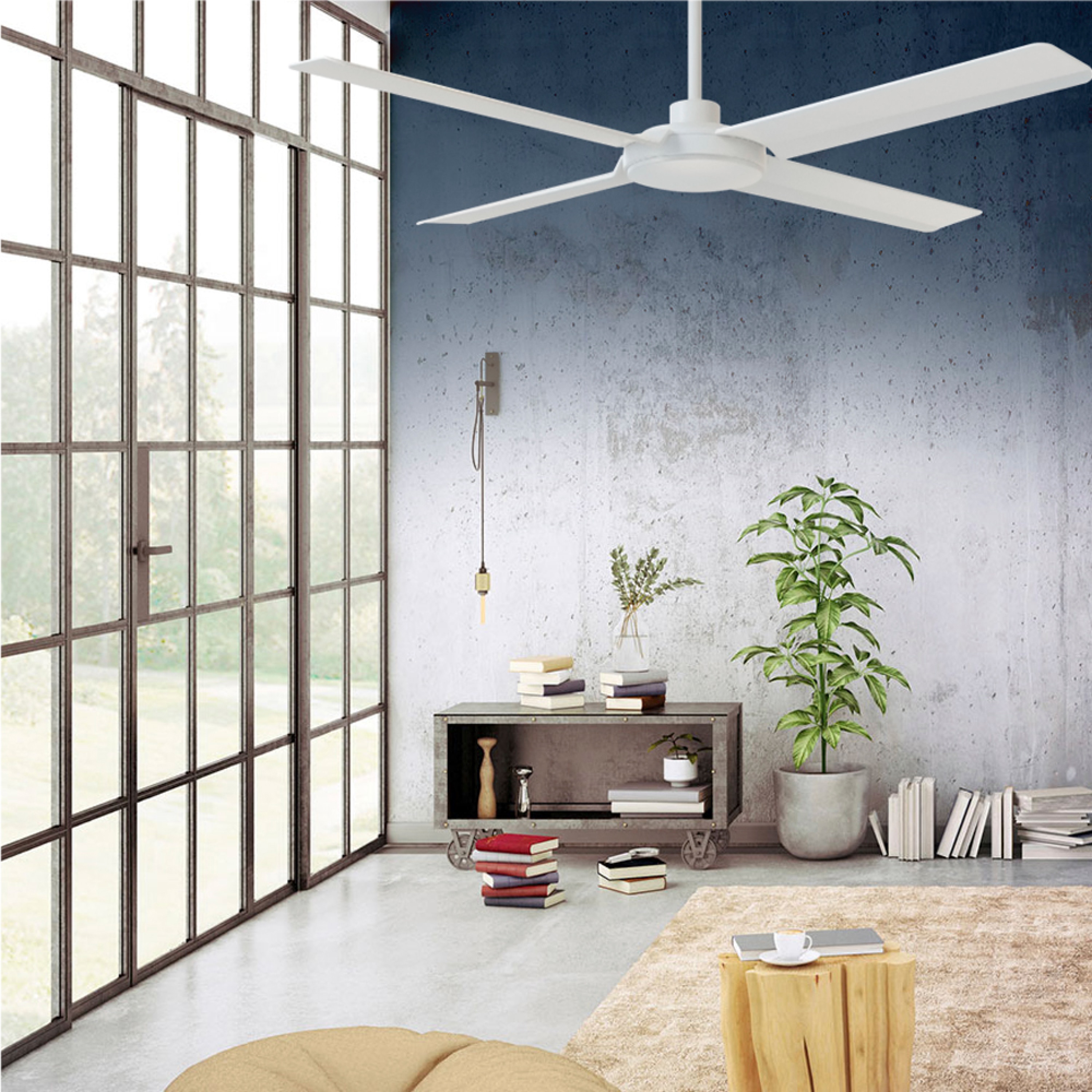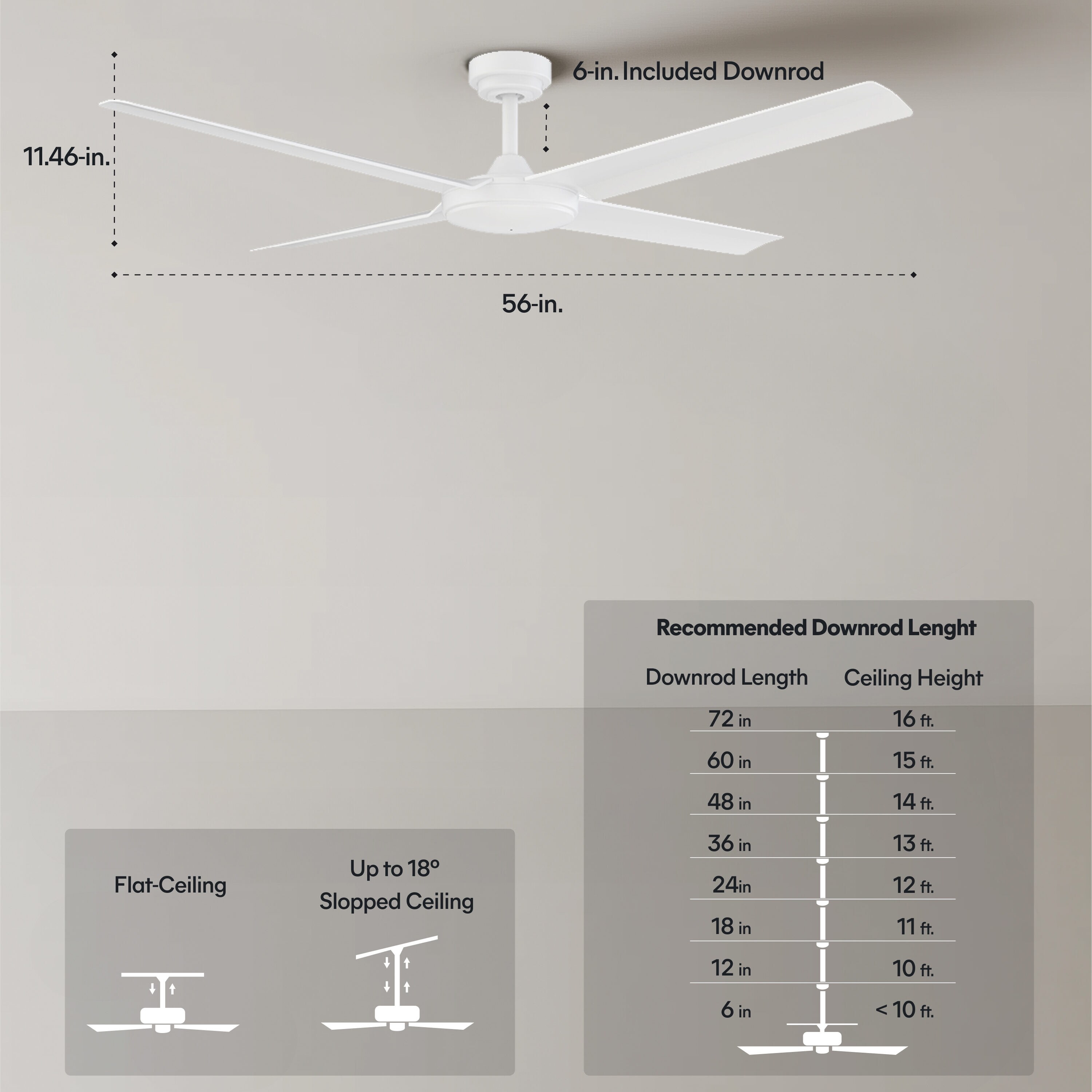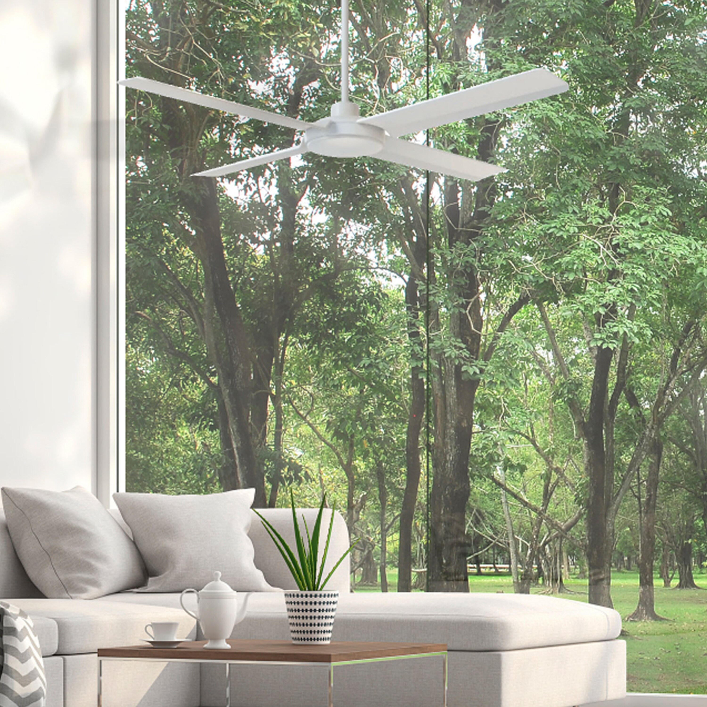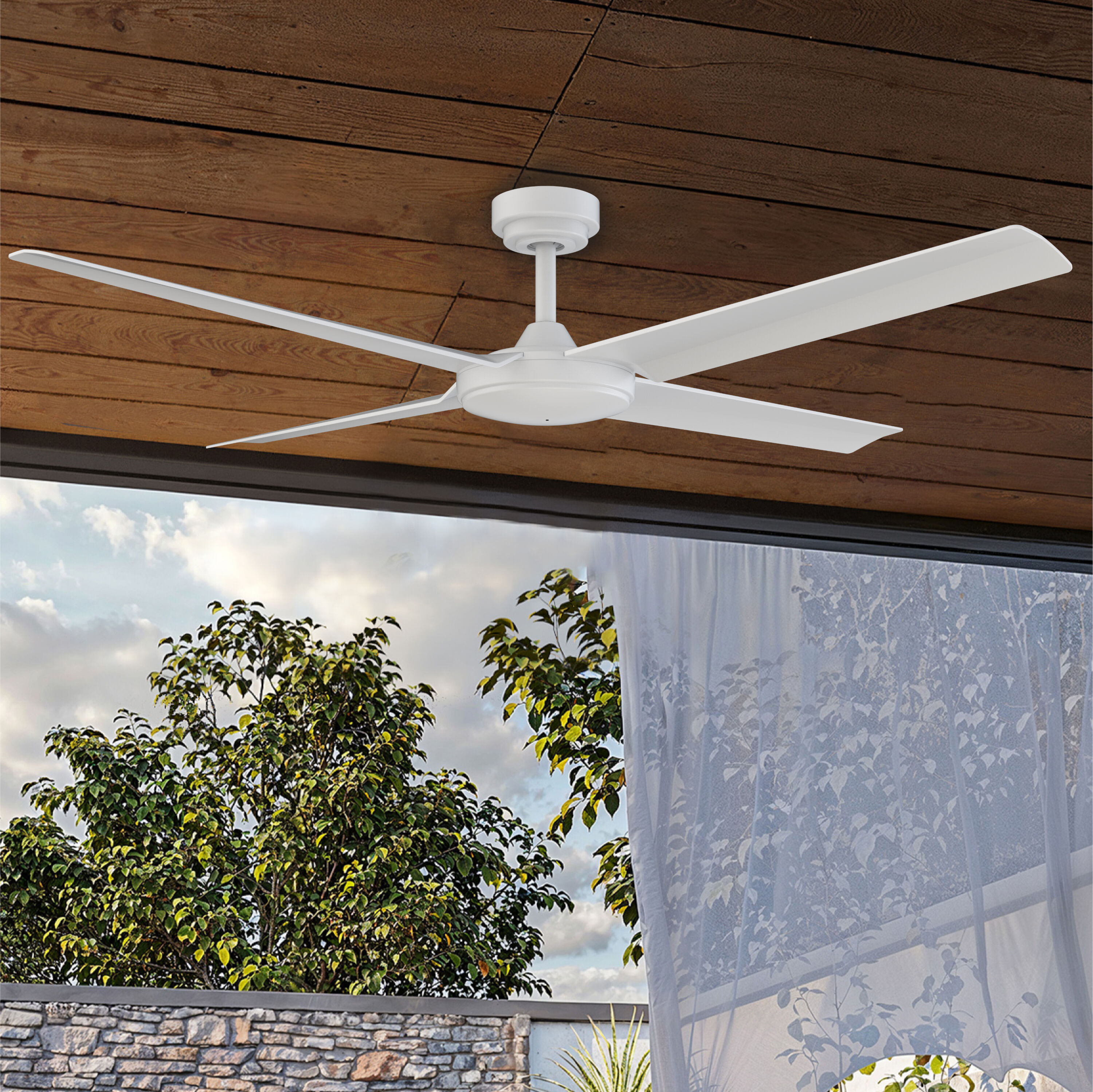 Laritza 56-in Outdoor Matte White with Matte White Blades Ceiling Fan Without Light – Remote Included ( 4 -Blade )
